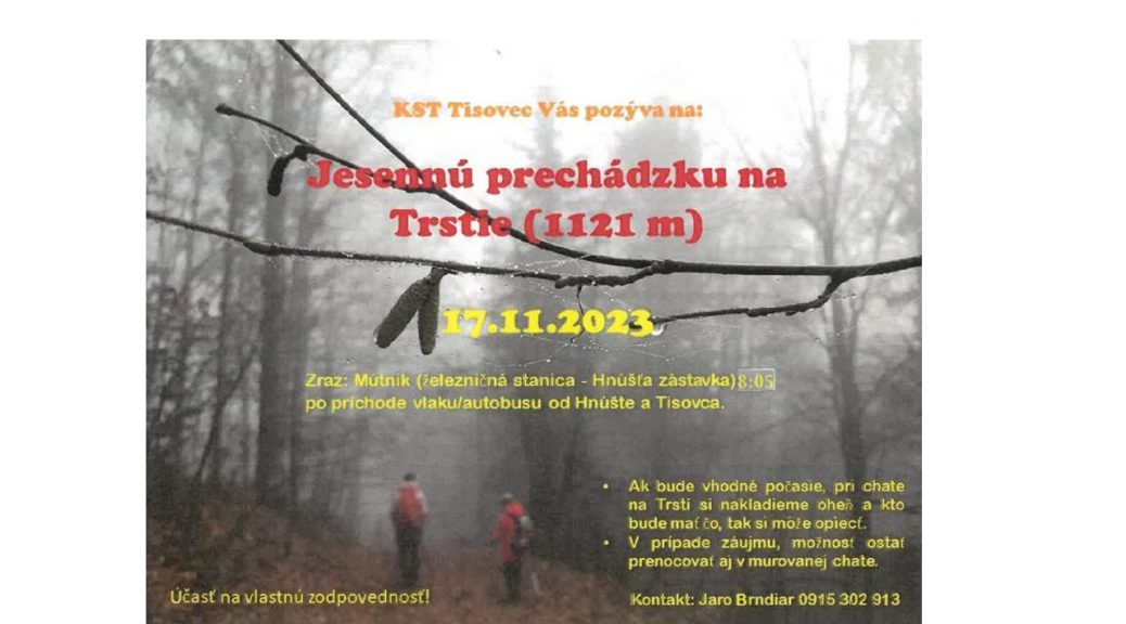 Najbližšia akcia – účasť na akcii organizovanej KOS Rimavská dolina so sídlom v Tisovci. Odchod o 8:00 vlakom do Tisovca dňa 21. 10. 2023