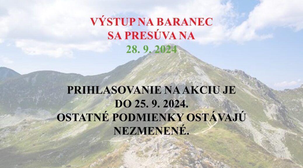 Z dôvodu nepriaznivej predpovede počasia turistickú akciu na VEĽKÚ VÁPENICU prekladáme na 15. 9. 2022. Ostatné podmienky ostávajú nezmenené.