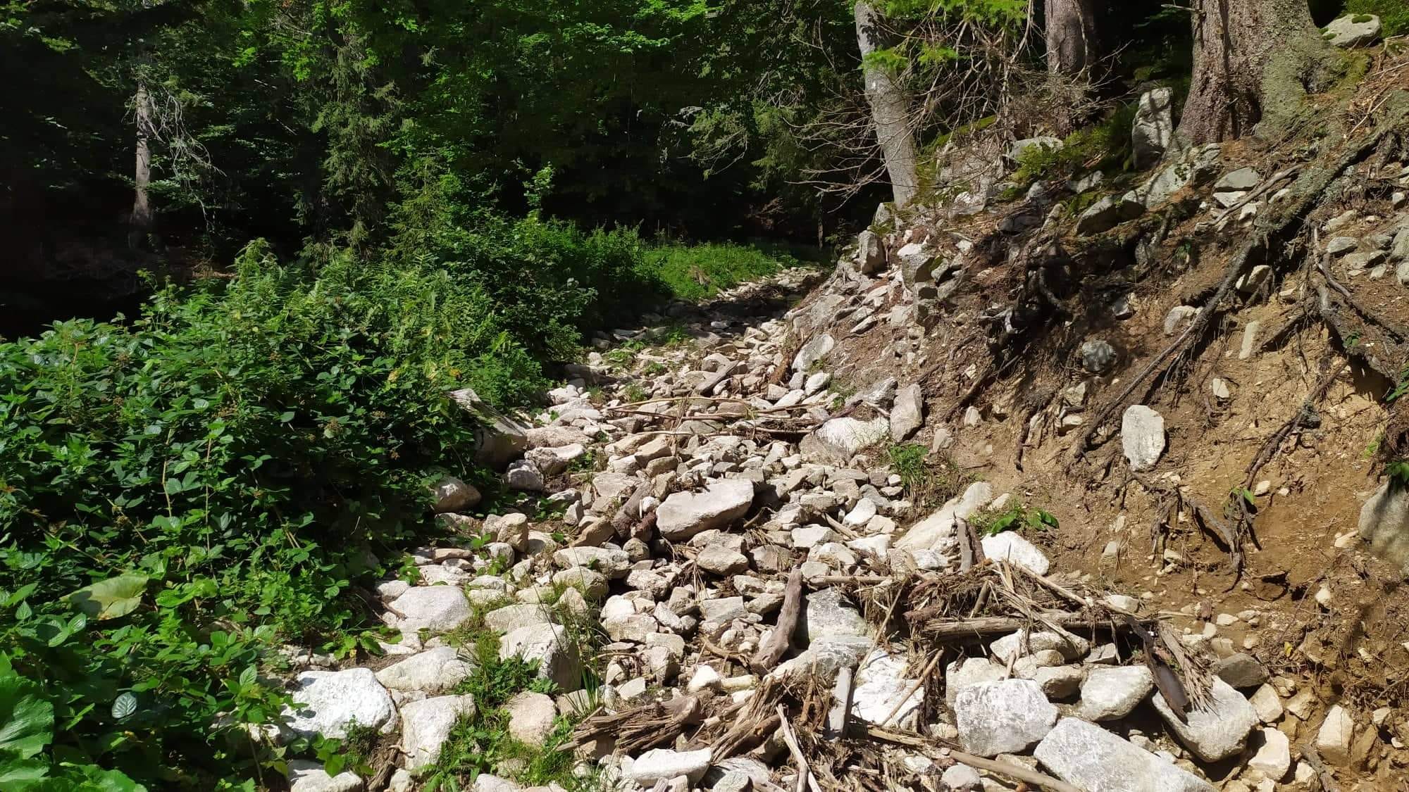 Nasledujúca odbočka tiež vedie k vodopádom s názvom Jamišné . Toto leto bolo veľmi suché, vodopády sa nepýšia veľkým množstvom vody.