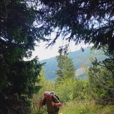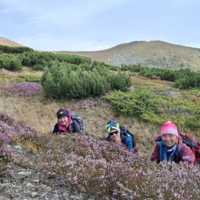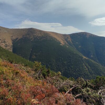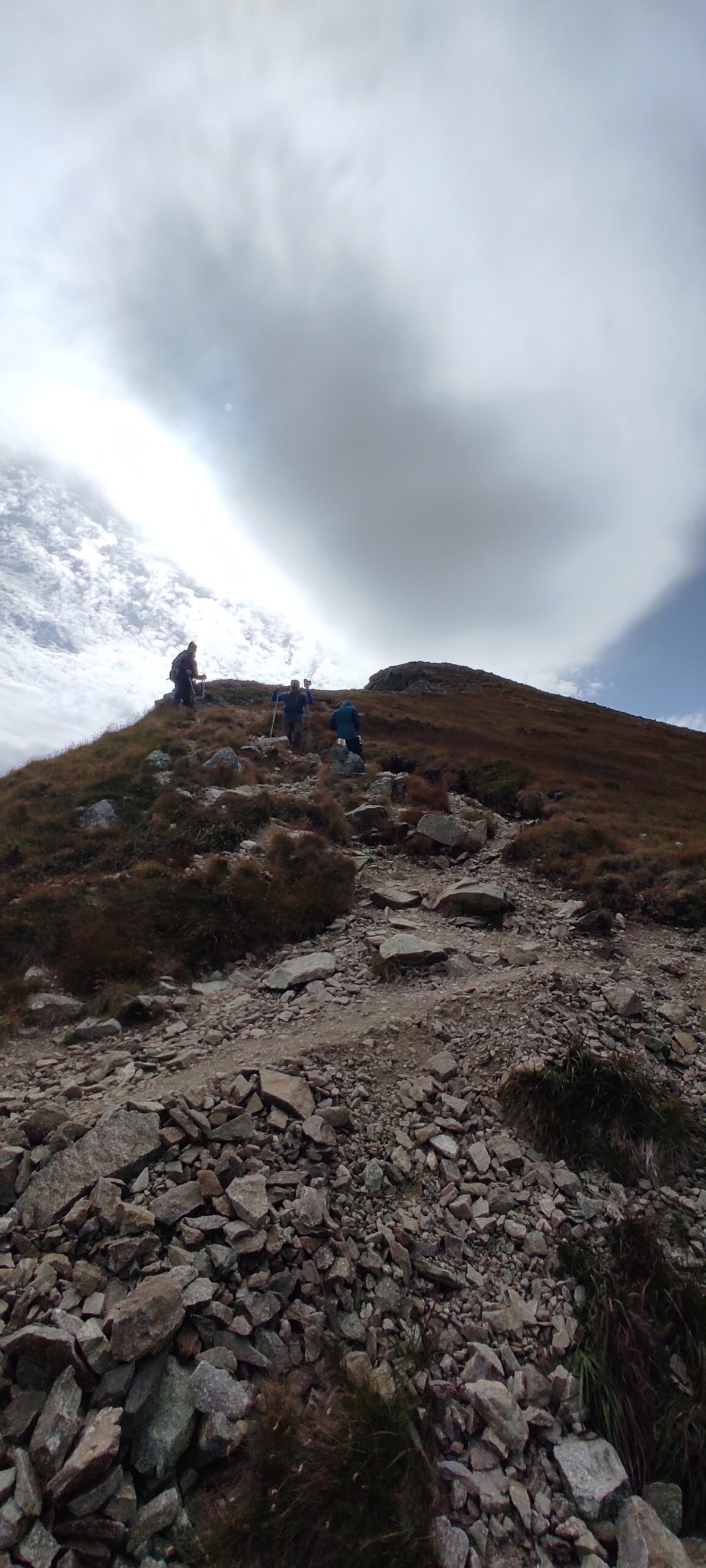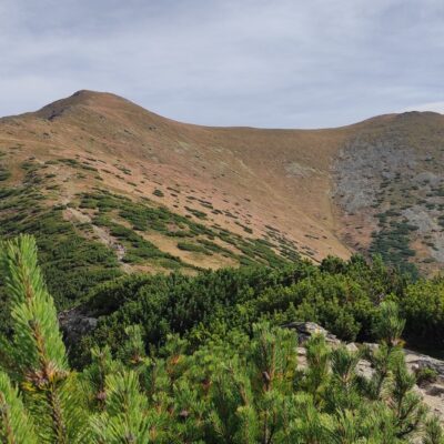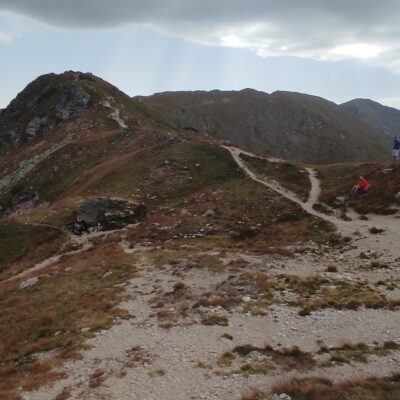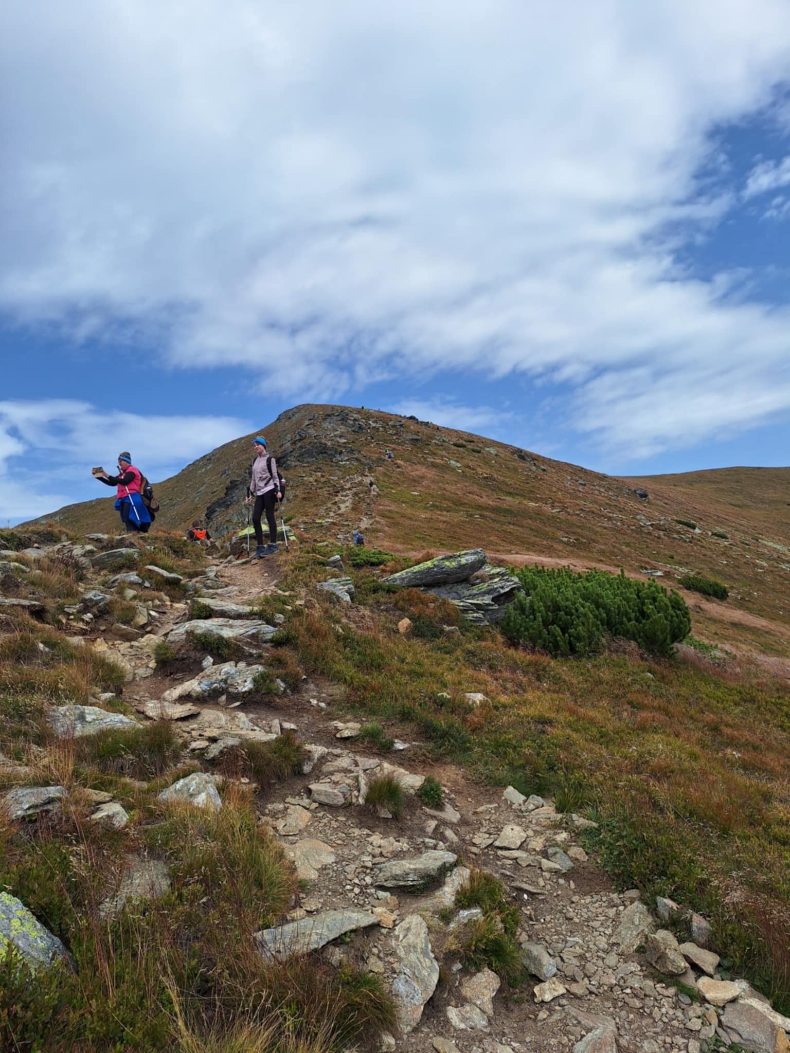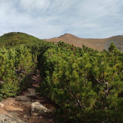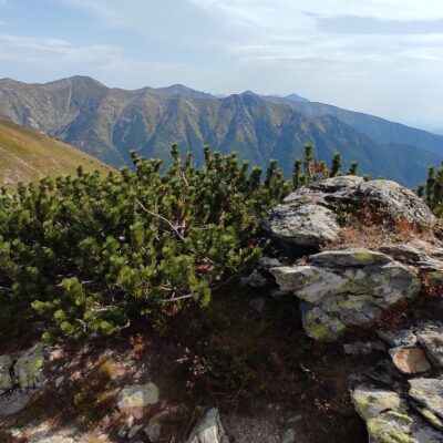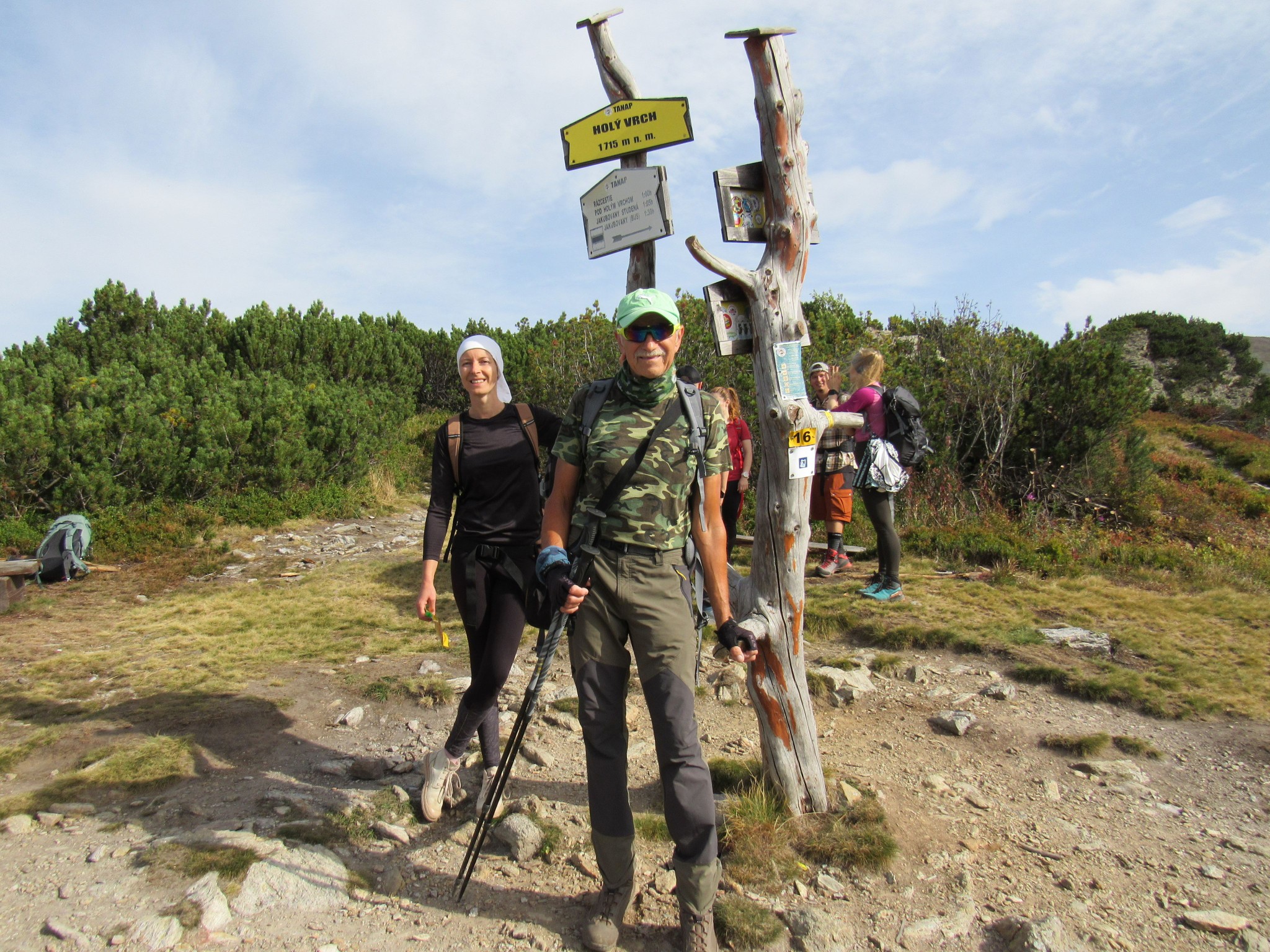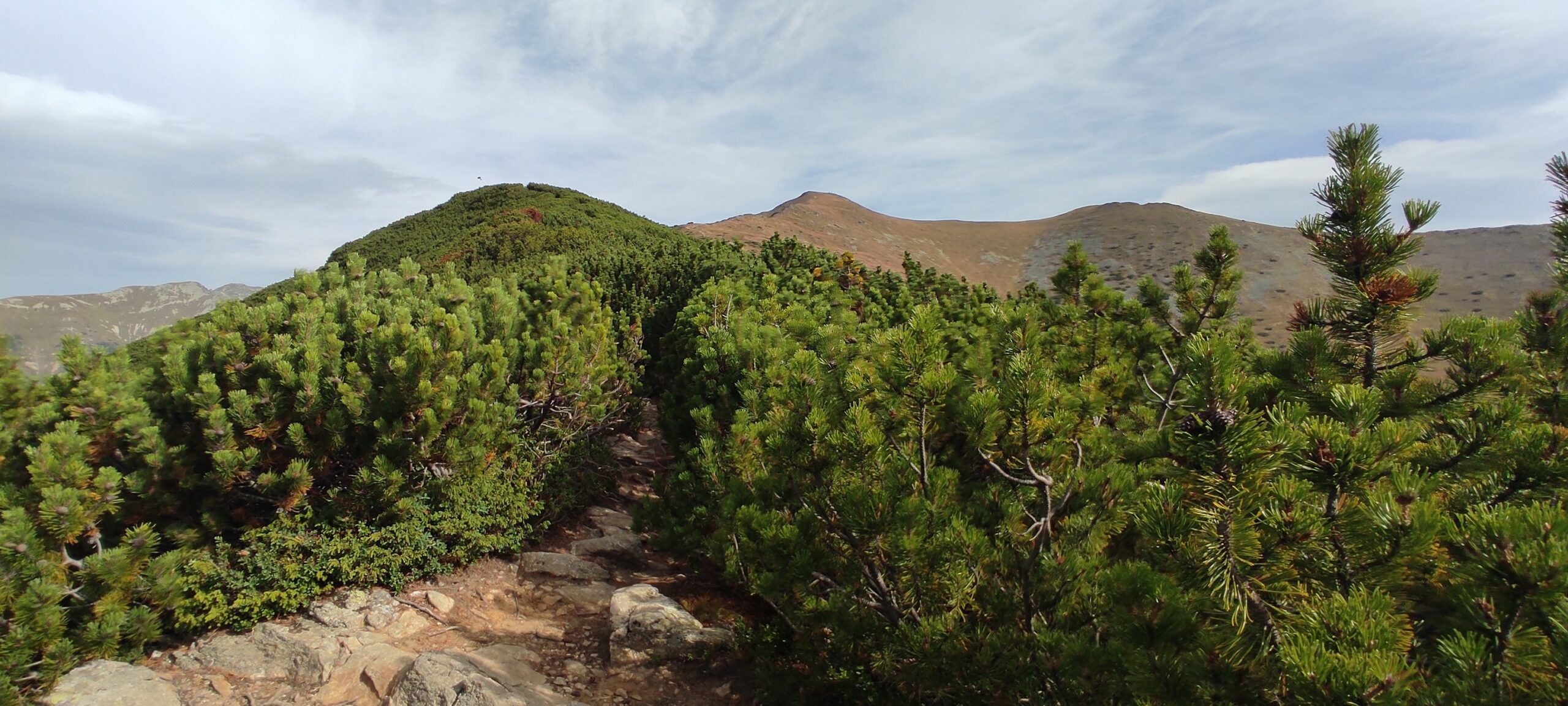 Prvá zastávka bola na Holom vrchu, tam sa pýtalo malé občerstvenie a prvé fotky a išlo sa ďalej. Začínala kosodrevina, lemujúca kamenistý chodník z oboch strán, ktorá nás sprevádzala najbližšiu hodinu a pol, tých rýchlejších pravdaže aj menej.