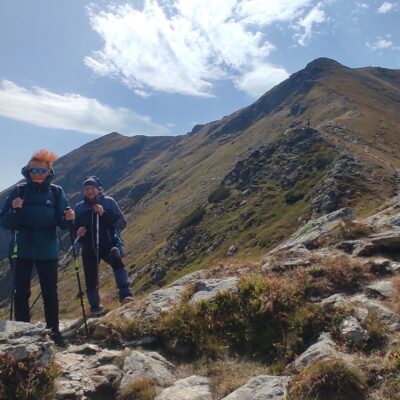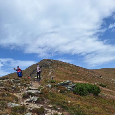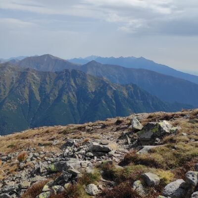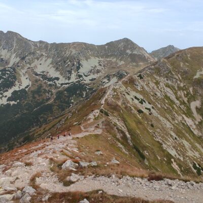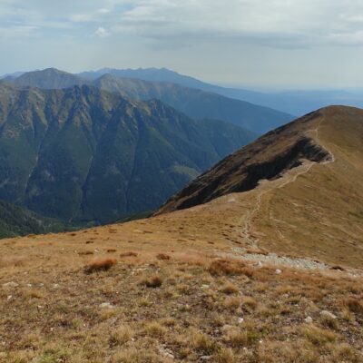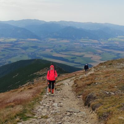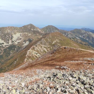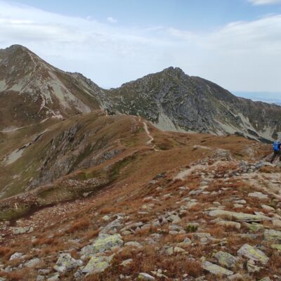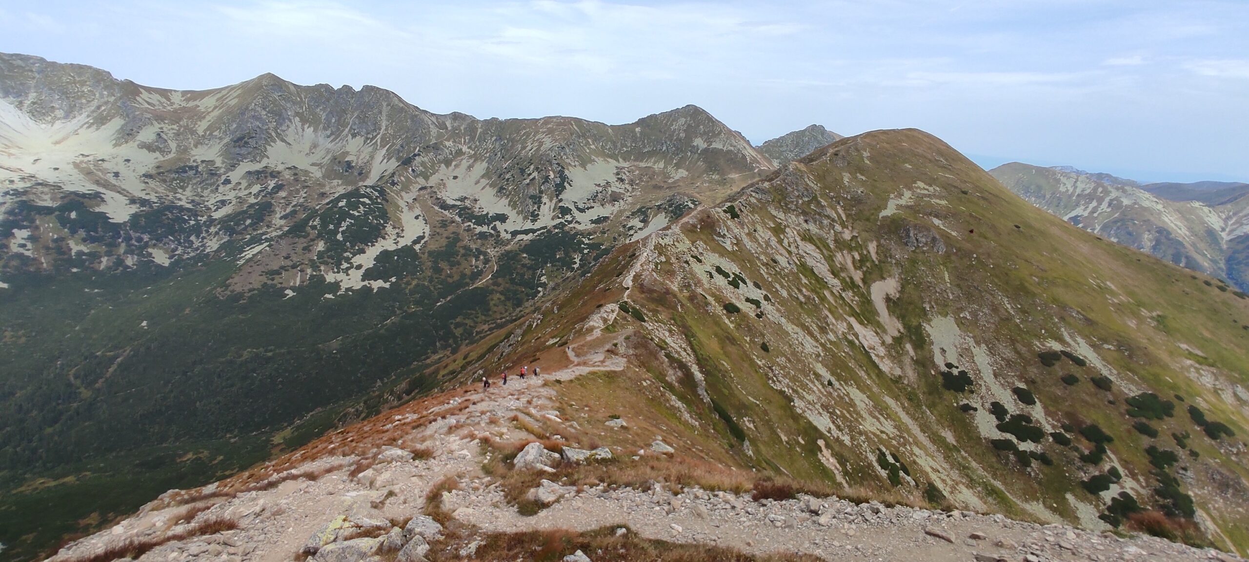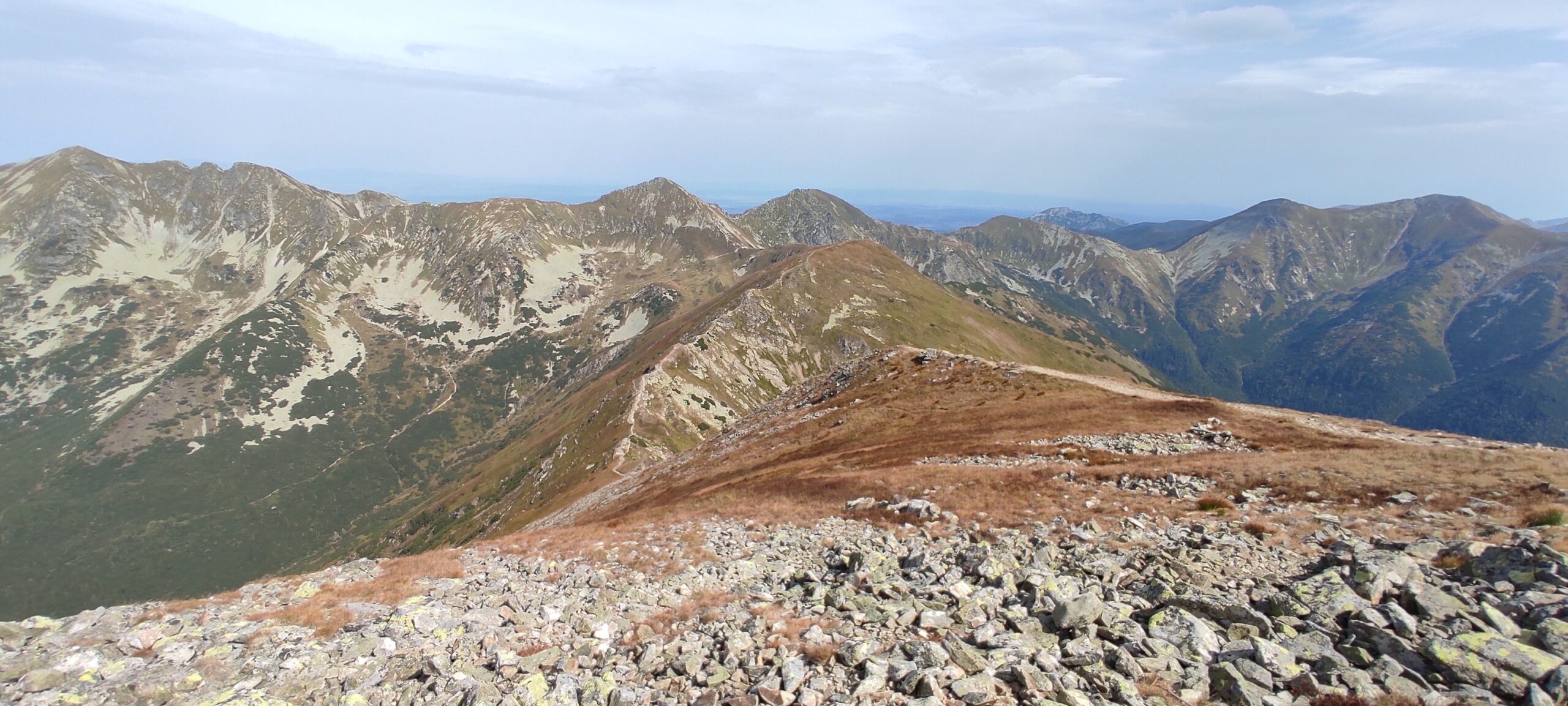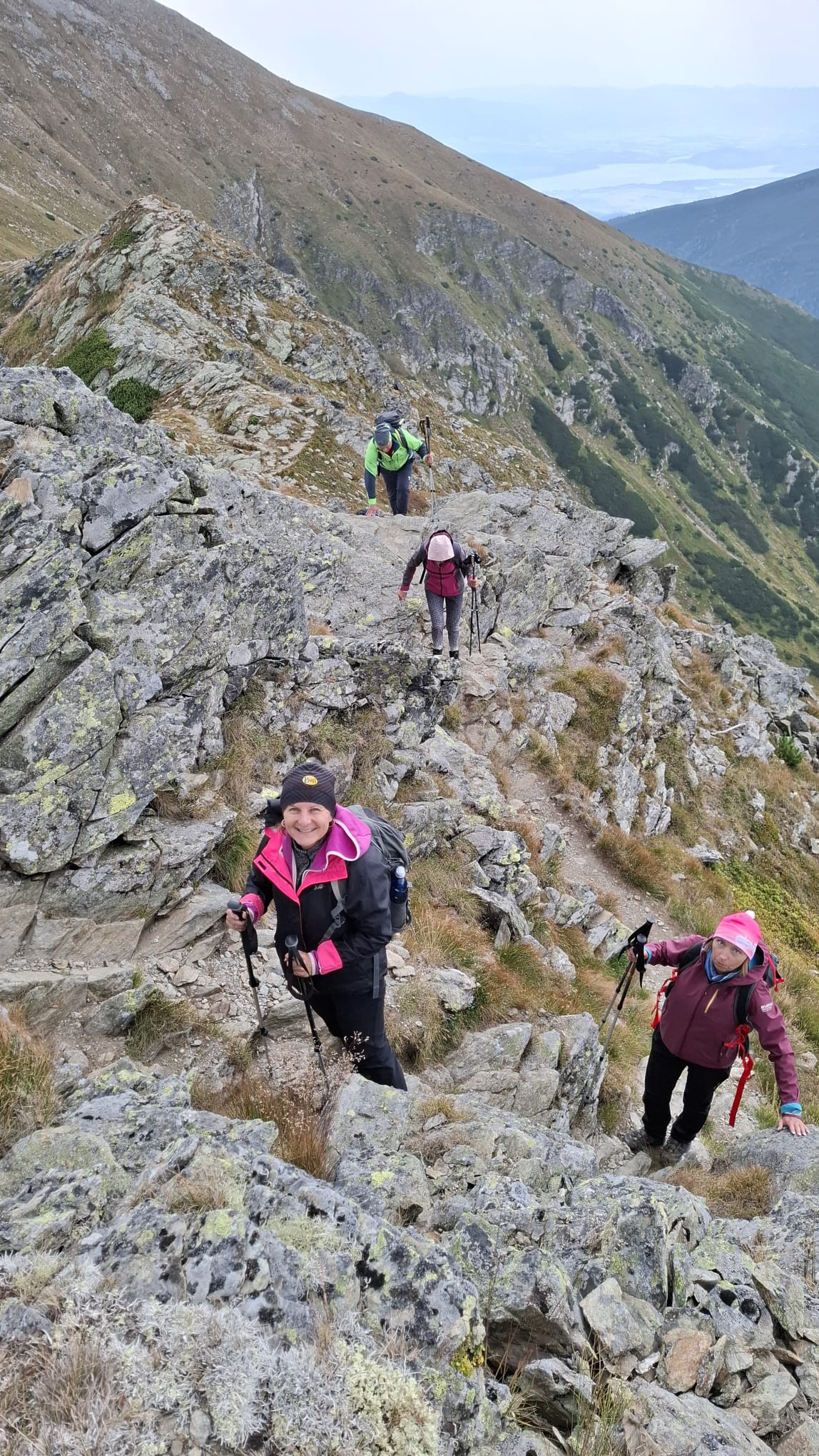 mal neúrekom vďaka mohutnému vetru, až vetrisku, ktorým akoby sa chcel zbaviť turistov, čo ho vyrušujú v jeho večnom pokoji. Chvíľu sme posedeli, pokochali sa pohľadmi na susediace Vysoké Tatry, na hrebeň Otrhancov, na vrch Plačlivé, či na Ostrý Roháč, a to som spomenula len tie najbližšie. Deň sa prevalil do druhej polovice a nás čakalo ďalšie prekvapenie. Po dosiahnutí vrcholu sme si vydýchli, mysliac si, že už pôjdeme len nadol . Ale to bol omyl prvovýstupcov na Baranec. Najprv nás prekvapil zostup po nebezpečných skalách a suti a potom zase niekoľko výstupov a zostupov po kamennom hrebeni, skoro ako na hojdačke. A vietor z Baranca sa ťahal s nami, neutíchajúc, až si to odniesla jedna šiltovka, ktorá skončila v hlbinách najbližšej doliny.