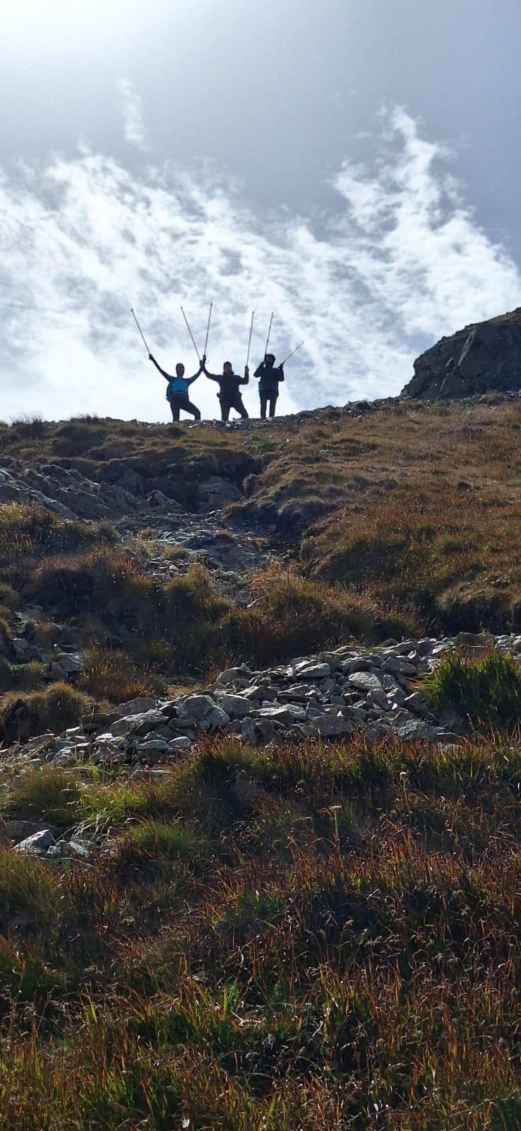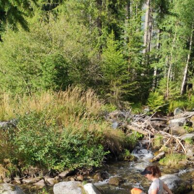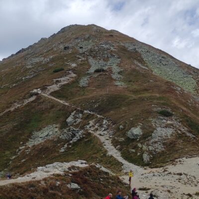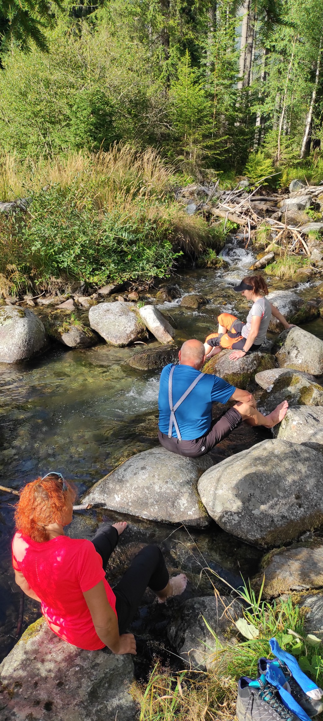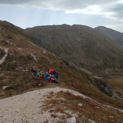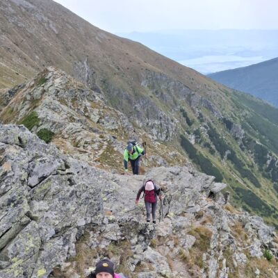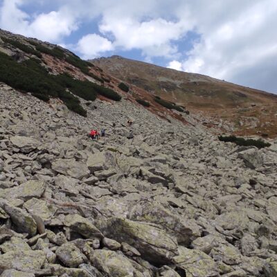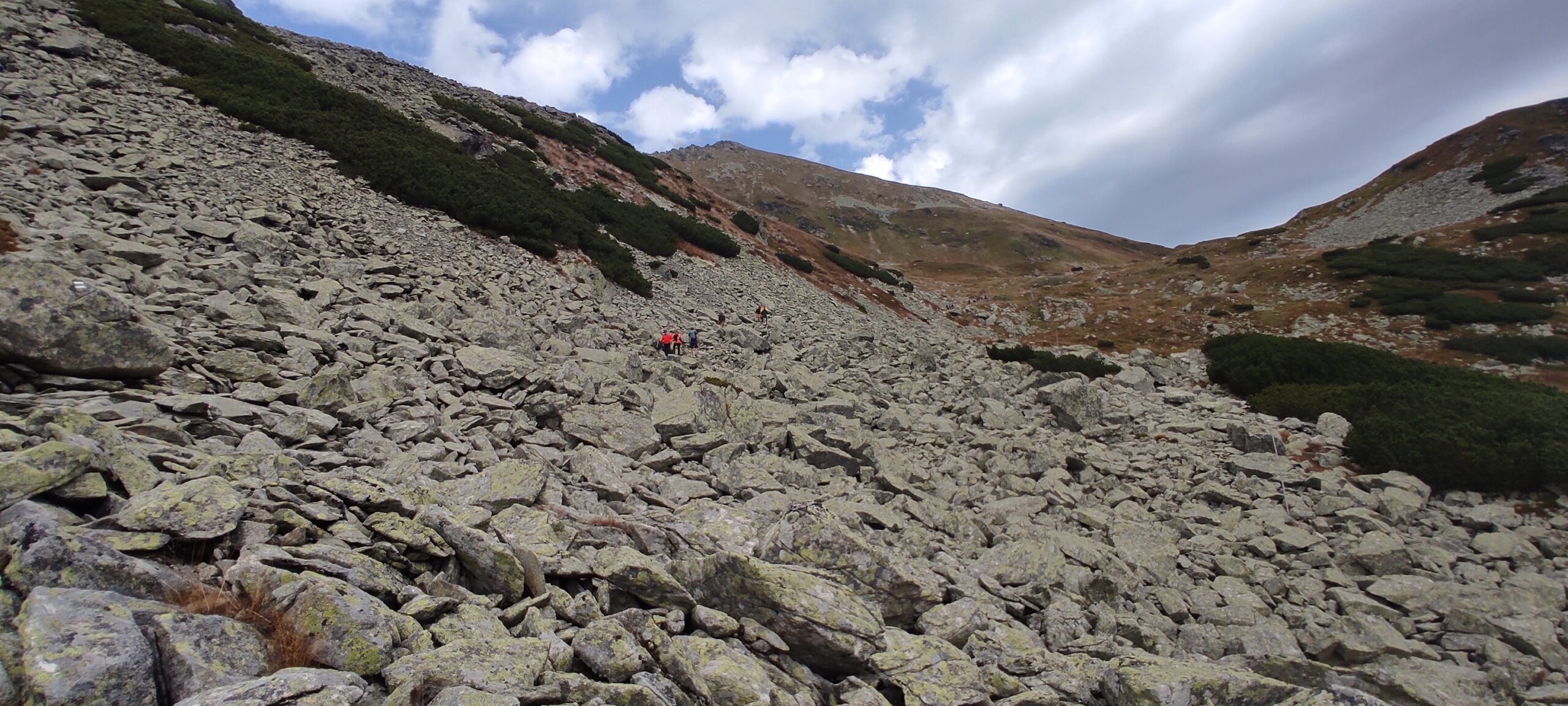 Ale Žiarske sedlo už bolo na dosah. Tam bola krátka prestávka, hlavne na ukľudnenie najviac zaťažených častí tela, čiže nôh. Niekoľko našich turistov prekypujúcich energiou a silami , teda presne traja, vybehlo na Plačlivô, ale kvôli víchrici sa čo najskôr aj vrátili. Zostupovali sme ďalej po typicky tatranskom chodníku až do zastávky Pod Homôľkou, odkiaľ našu túru pretínal niekoľkokrát najprv menší, neskôr aj väčší bystrý tatranský potok.