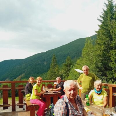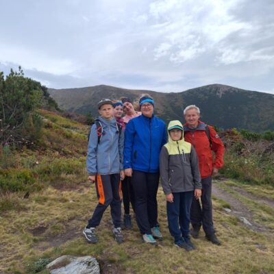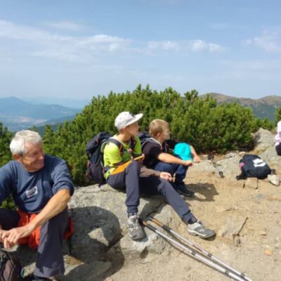 občerstvenia. Pohrdnúc kolobežkami, ktoré by skrátili našu záverečnú vyše hodinovú etapu, v kľudnom tempe sme si vychutnávali posledné chvíle tejto úžasnej túry. Šli sme prevažne po asfaltke, sem tam bola skratka cez les, ale vôbec nám to po tých prískokoch a preskokoch na turistickom chodníku zo Žiarskeho sedla až po chatu nevadilo. Na parkovisku v Žiarskej doline, ústí, nás už čakala skupinka turistov, ktorí sa rozhodli pre kratšiu túru a skupina našich najmladších turistov, ktorým patrí náš obdiv a chvála, že tak bravúrne zvládli výstup na Baranec a späť po tej istej trase. S nimi sa turistická základňa v Hnúšti budúcnosti báť nemusí.