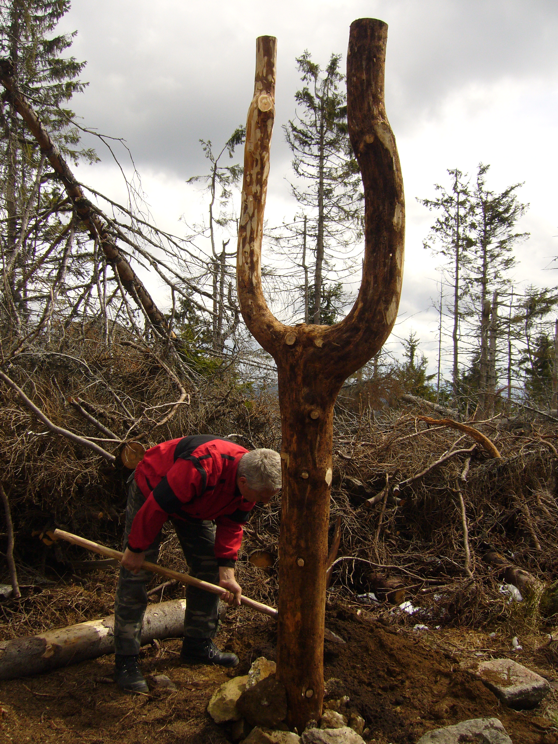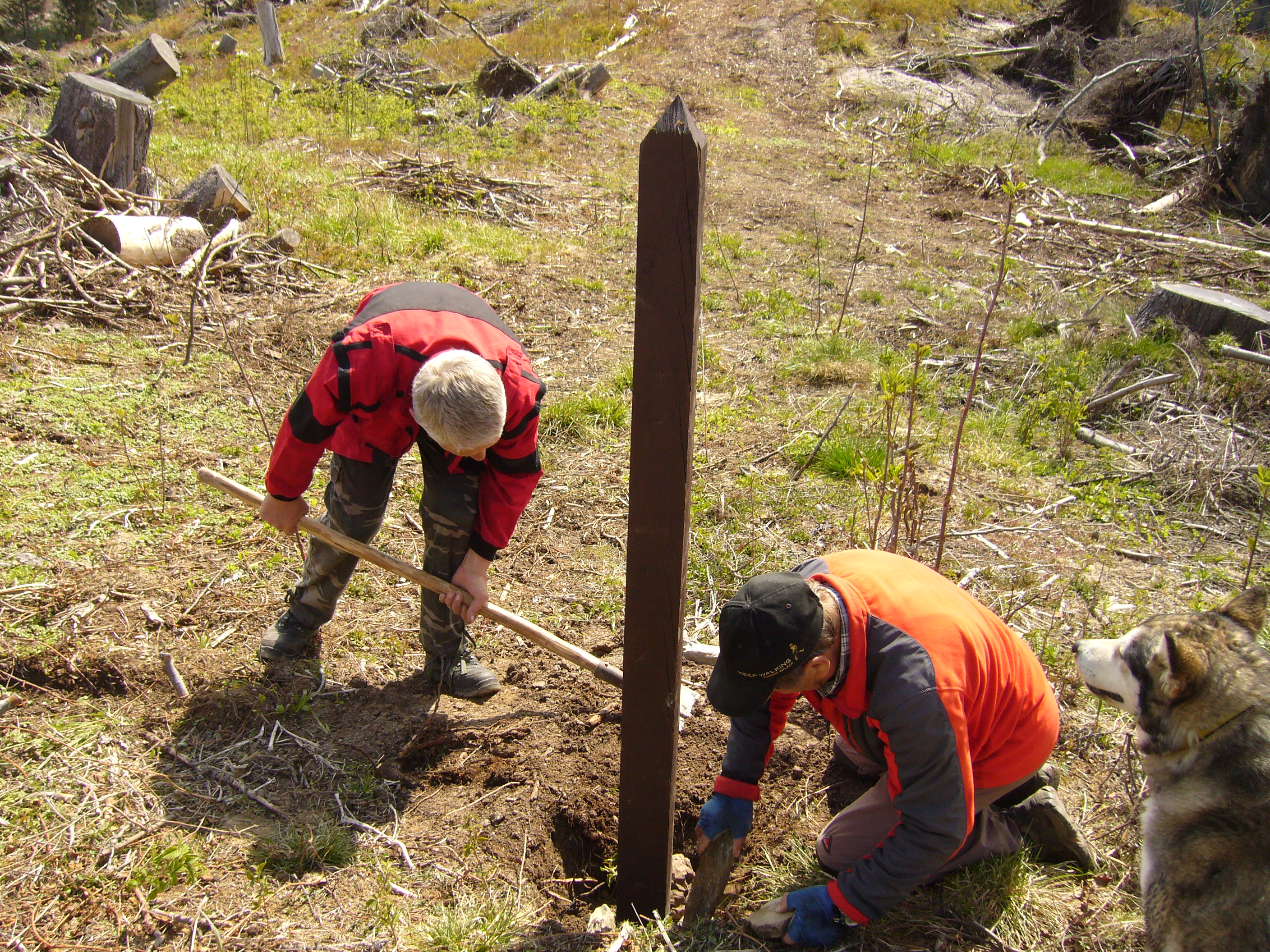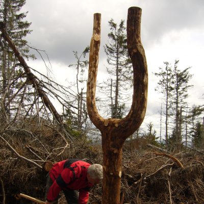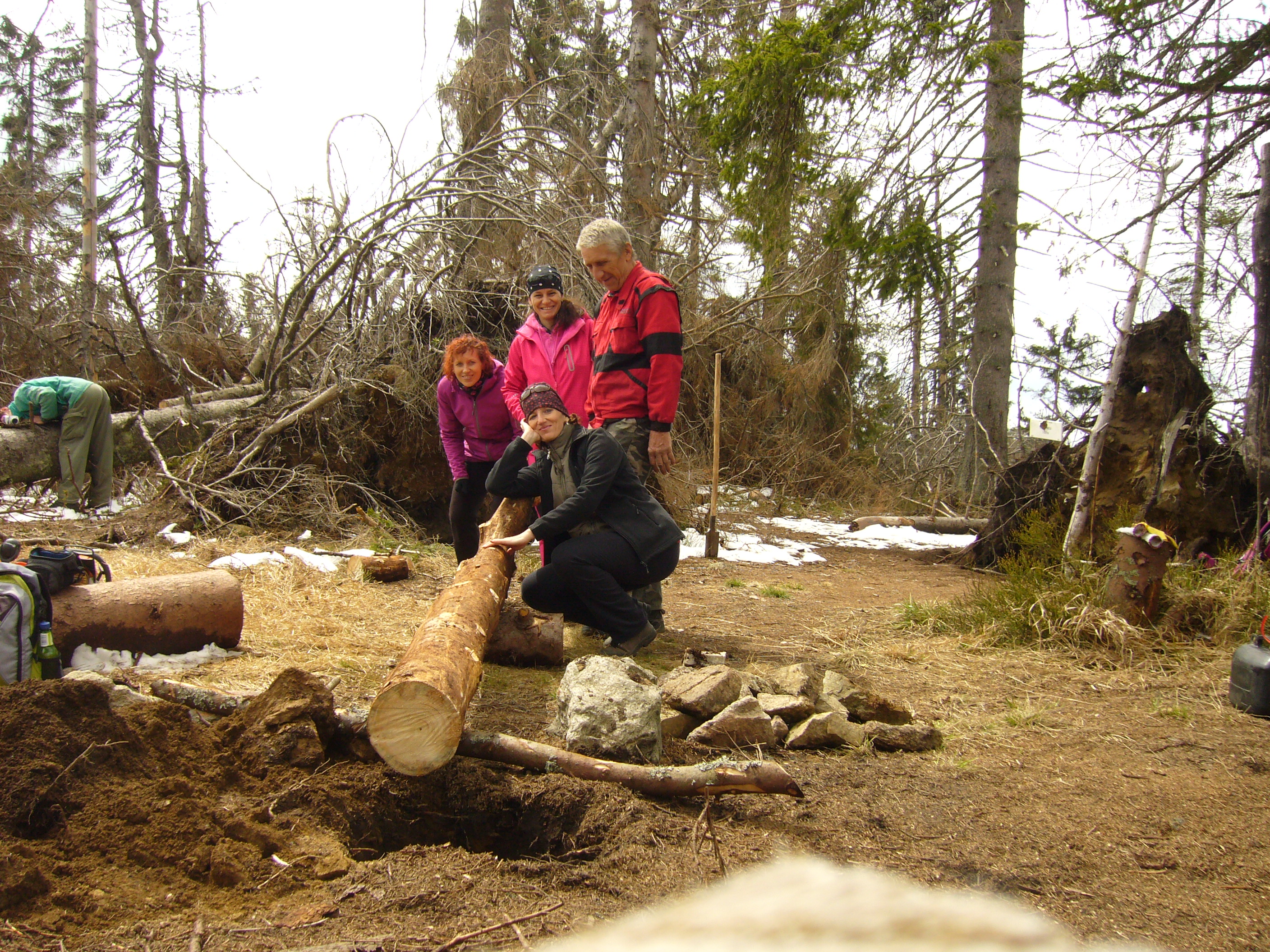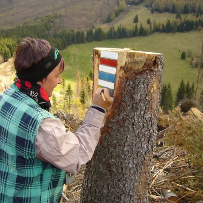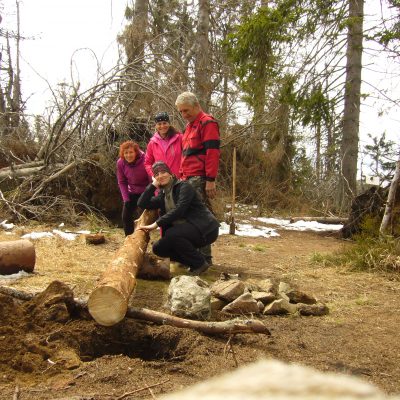 Preto bolo nevyhnutné po kalamite turistický chodník vyčistiť a najdôležitejšie- osadiť nové značenie.