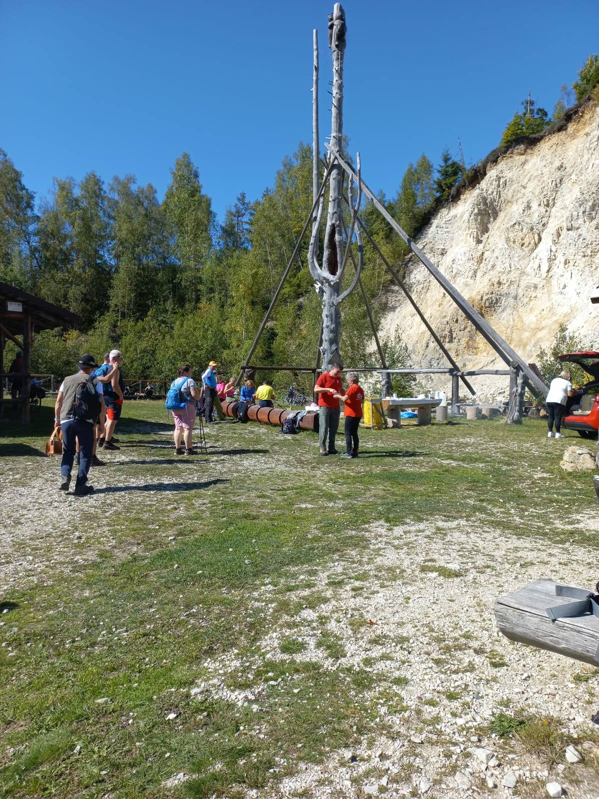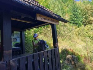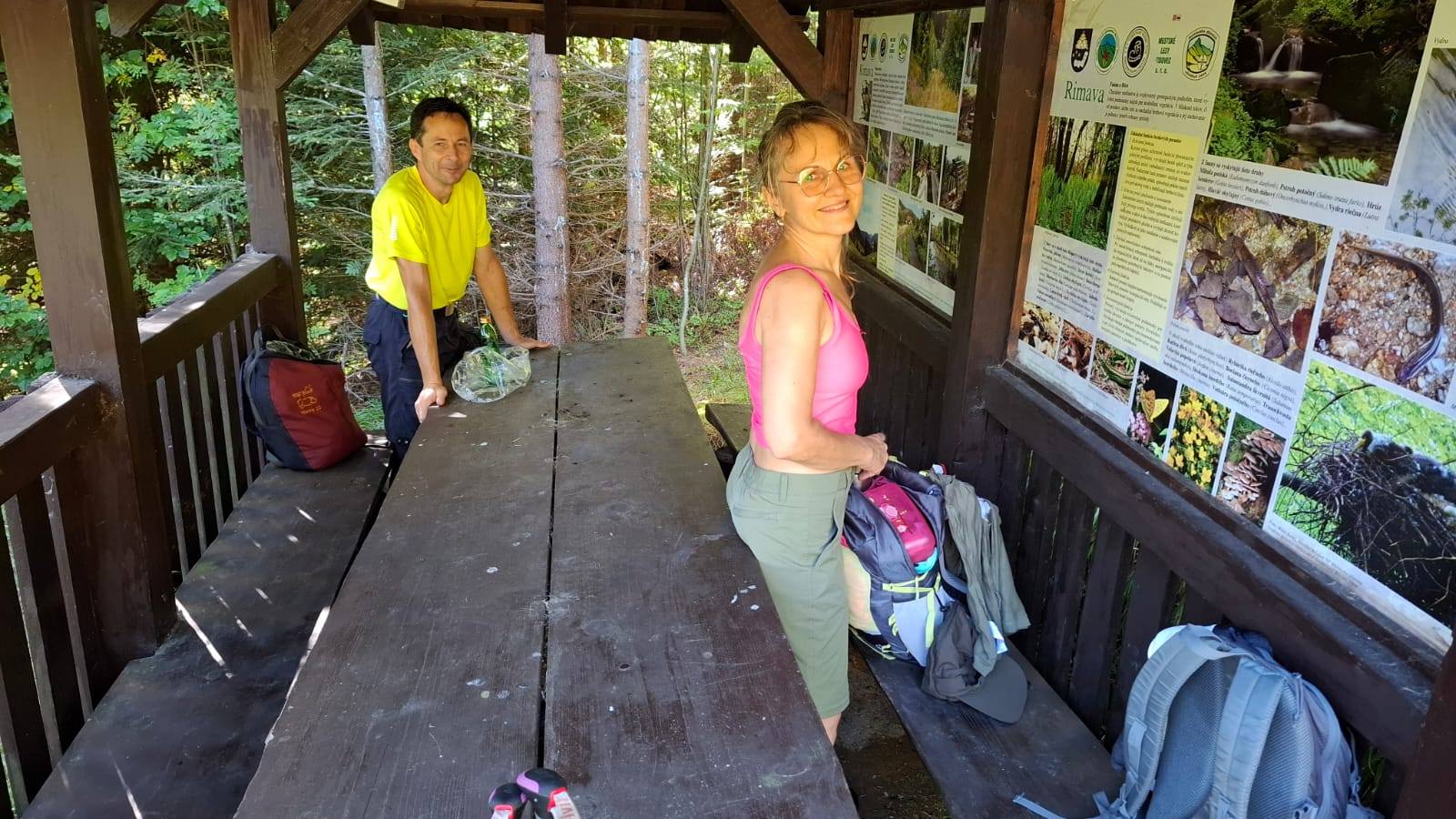 Naša skupinka si vybrala trasu okolo prameňa Rimavy, keďže poniektorí z nás tam ešte neboli. Posedeli sme v peknom altánku, vyšliapali pár metrov k samotnému prameňu, kde dvaja turisti čistili žliabok. Je chvályhodné, že na túre sa chopia turisti aj takejto užitočnej činnosti.
