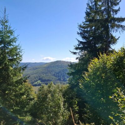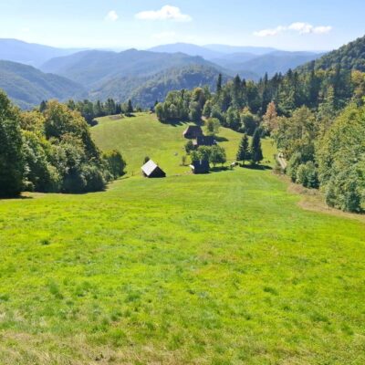 Tam, pri našej obľúbenej chalupe, sme si dali kratšiu prestávku, počas ktorej sme podebatovali s majiteľom chalupy. Pospomínal si na starého otca, ktorý pred 70 rokmi túto chalupu postavil a my sme sa pri počúvaní z gánku vyžívali v krásnych výhľadoch na celú dolinu. Ďalej sme pokračovali do sedla Burda.
