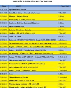 Budeme veľmi radi, ak aj tento rok bude účasť na akciách aspoň taká ako doteraz. Jedným z najzaujímavejších a najdôležitejších bodov bolo predloženie a schválenie návrhu Kalendára turistických akcií na rok 2018.