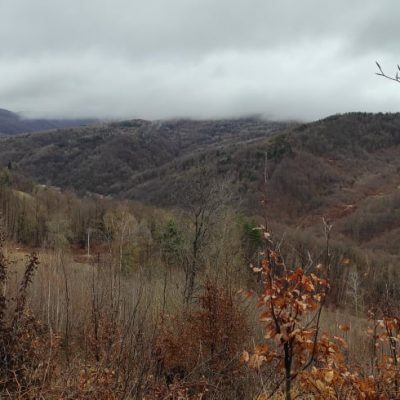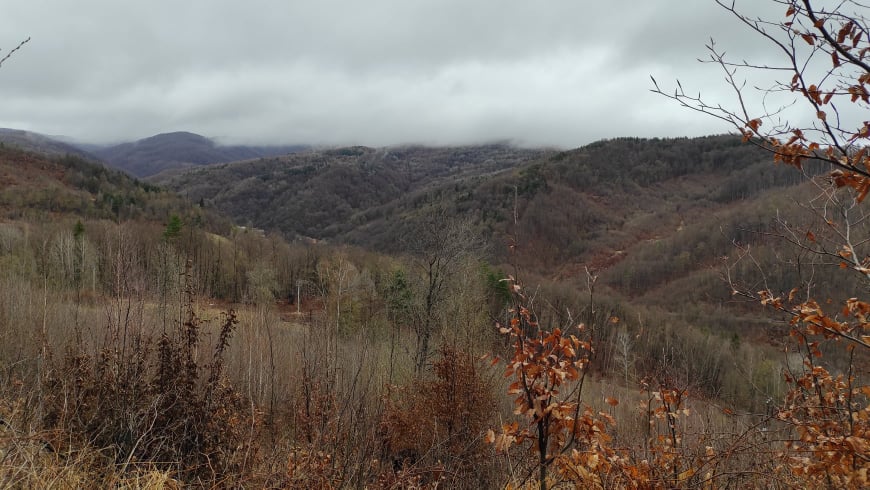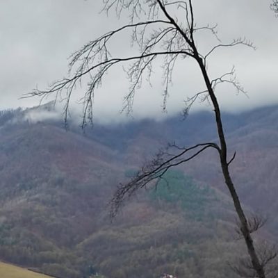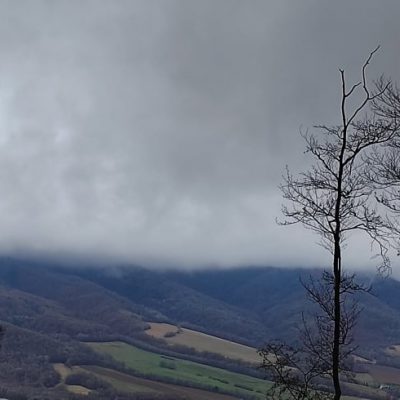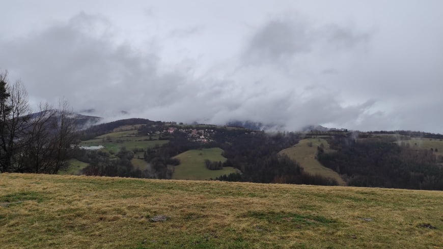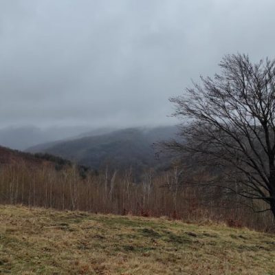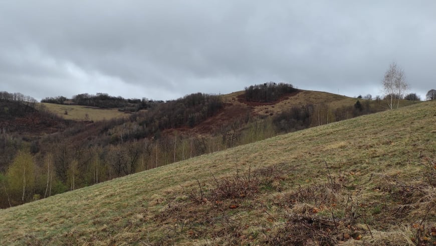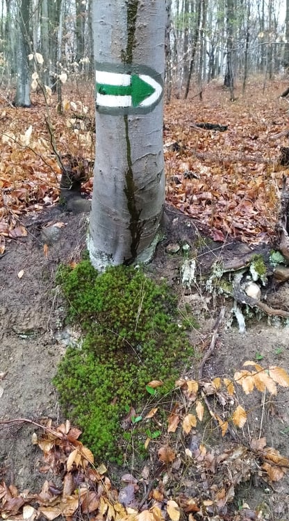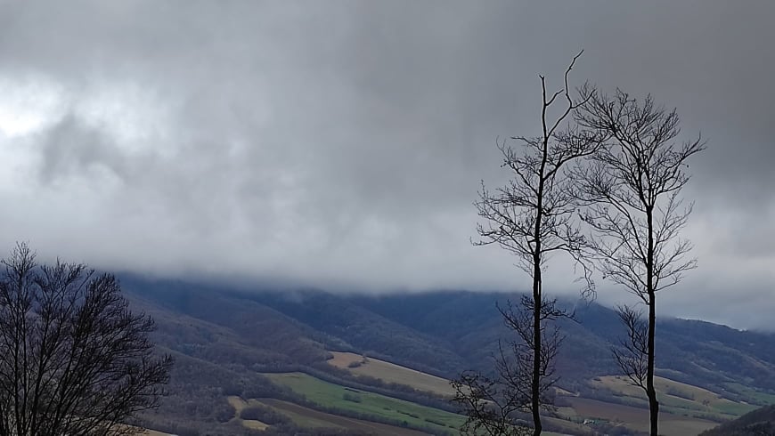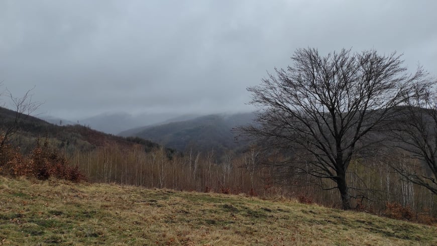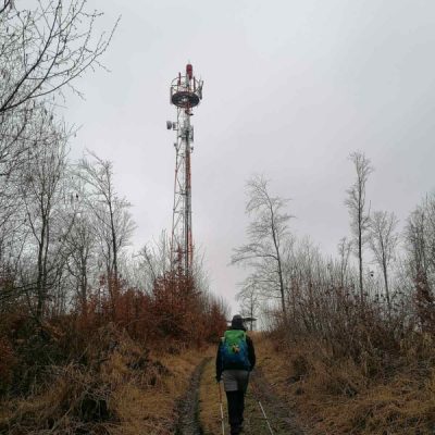 čo ma veľmi potešilo a príjemne prekvapilo. Popod Štepov vrch stúpame po zelenej na Laz, kde sa zelená križuje s červenou (Cestou Márie Széchy). Ale čo sme nechceli, už je to tu! Mraky, začínajúci dážď. Nútení sme z batohov povyberať pršiplášte (ale my sme pripravení aj na tento variant). Dážď nezabráni tomu, aby sme zapózovali pri kliešťoch a pokračujeme smerom na Polom. Dážď a vietor sa stupňuje, ale my sme už relatívne v bezpečí.