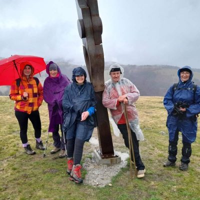 úkrytom sa nám stal altánok pri Jankovi Roškovi. Humor nás chvalabohu neopúšťa a na radosť všetkých cca po trištvrte hodine sa mraky popretŕhali a my pokračujeme v túre. Prestálo pršať, hurá! Jedna skupina vyrazila priamo na Poproč, kde bol náš cieľ, druhá skupina navštívila podľa plánu aj Ratkovskú Zdychavu a až potom Poproč.