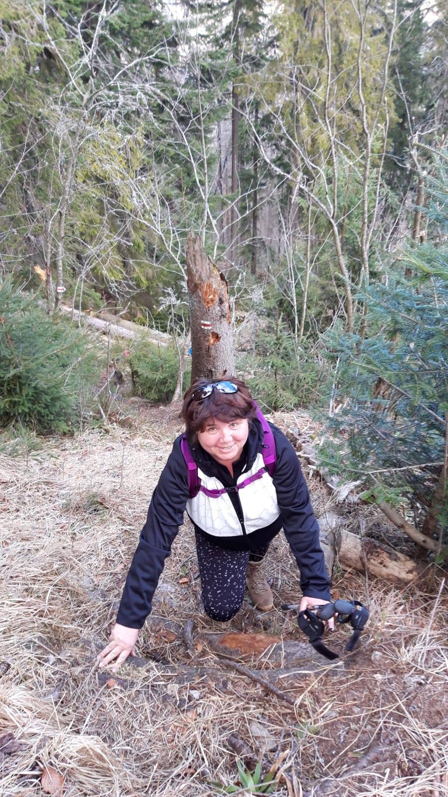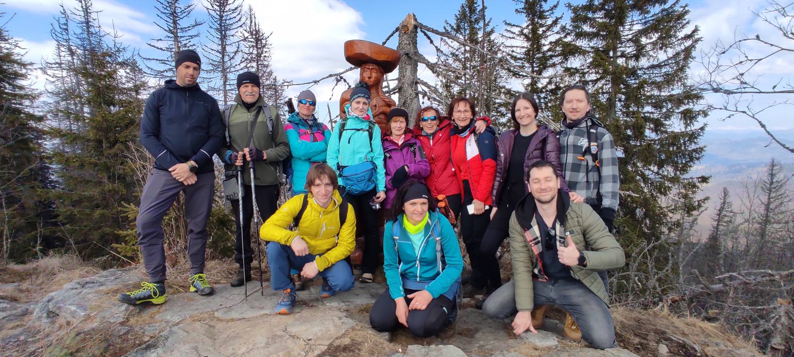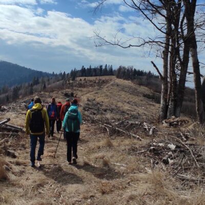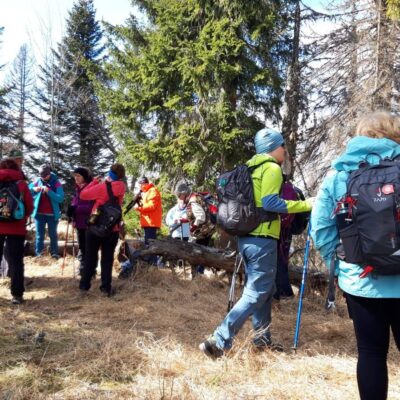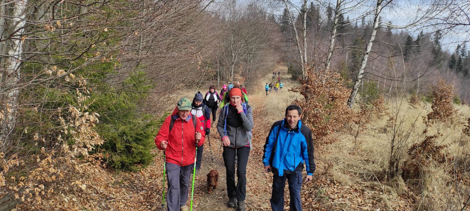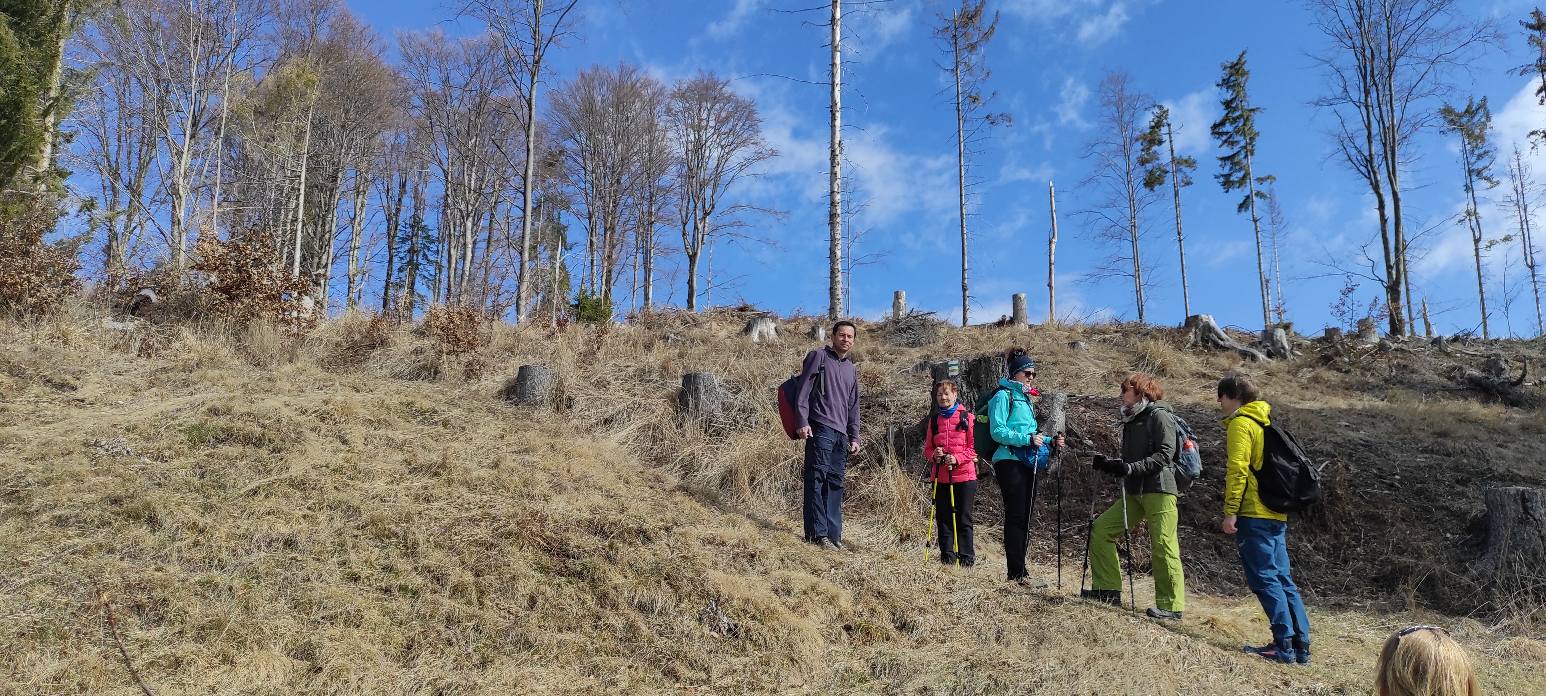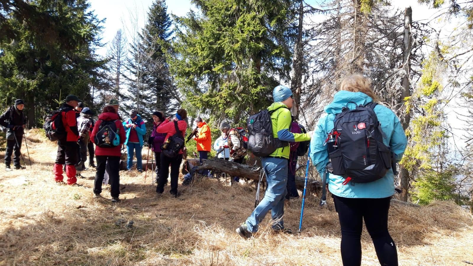 Pomaličky sa vydávame vstriec pokoriť skalné bralá Vepra, slniečko stále hreje a nálada v skupine je výborná. Niektorí účastníci si pre istotu doniesli aj turistické nesmeky, no Vepor k nám bol milosrdný a až na pár fliačikov ľadu neostalo po zimných podmienkach na hrebeni už nič. Azda len to, že sa suchá zima podpísala aj na vzhľade smrekového pralesa, ktorý pôsobil trochu smutným dojmom, namiesto toho, aby prekypoval zeleňou.
