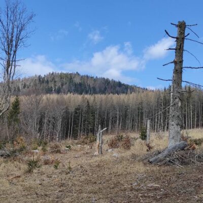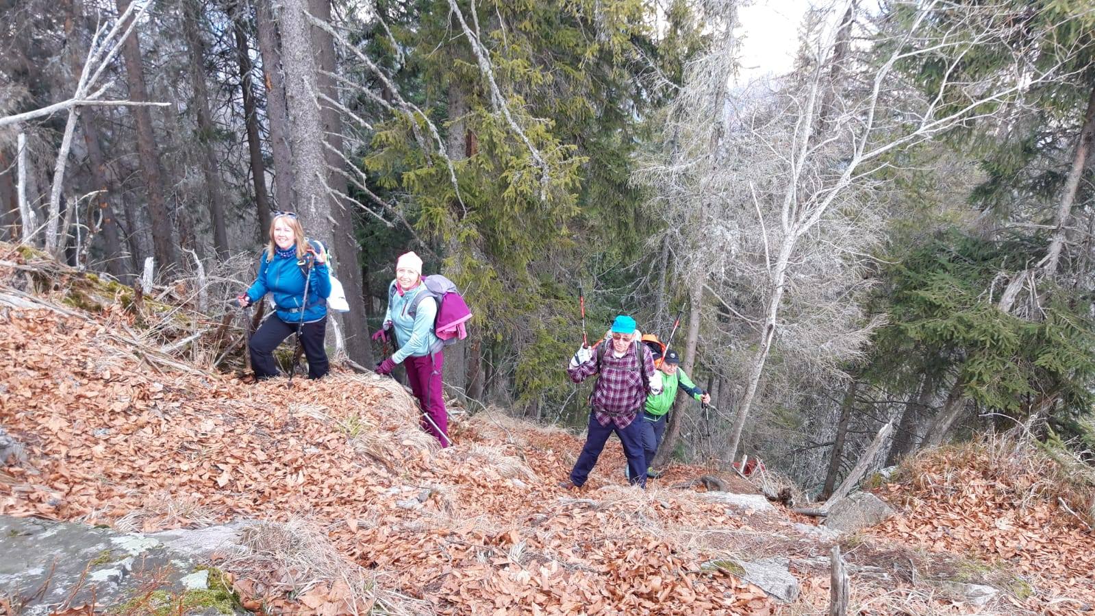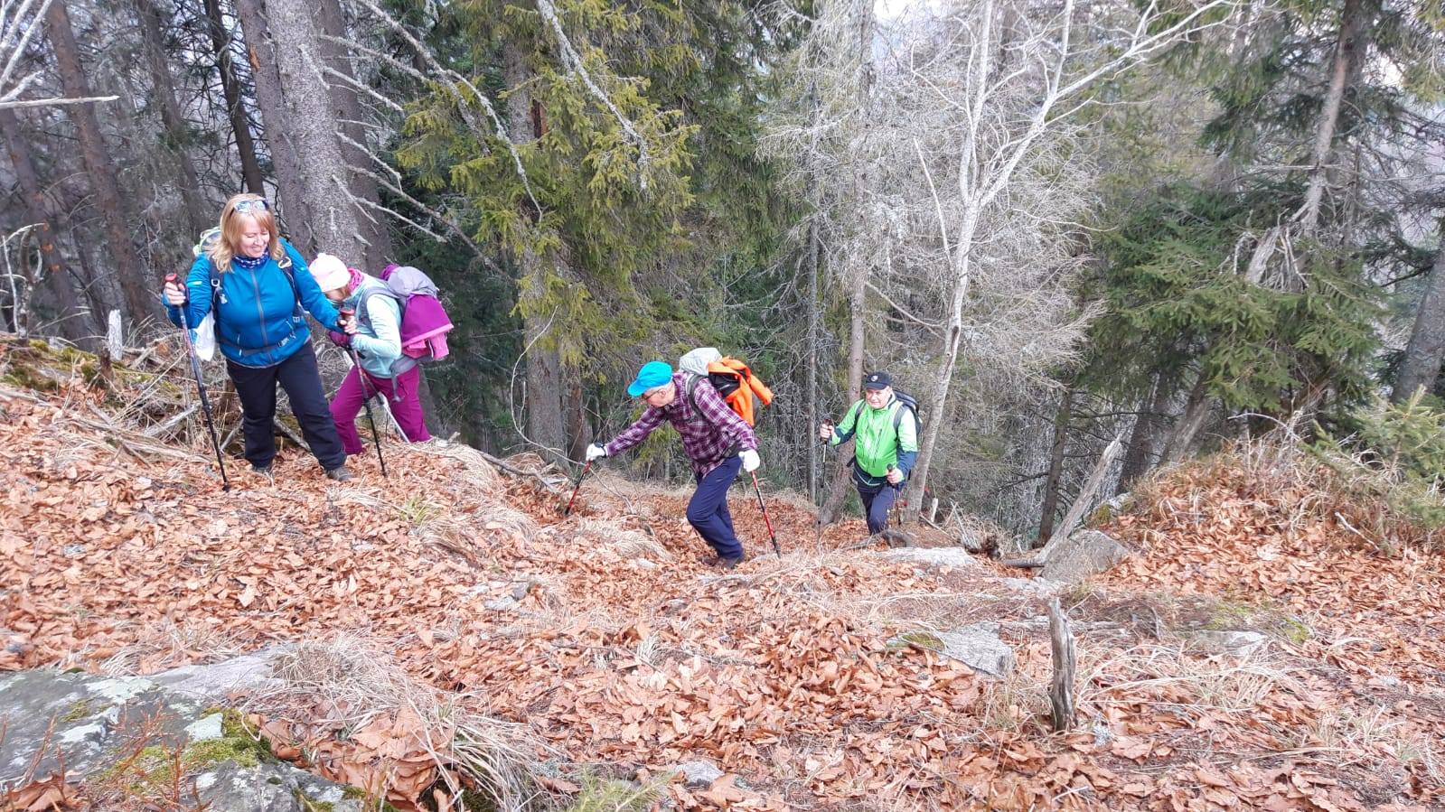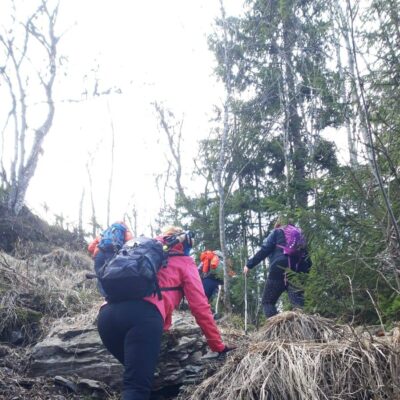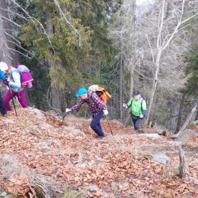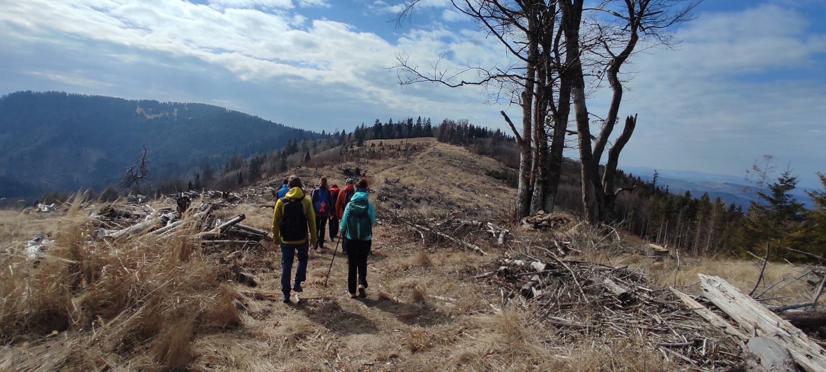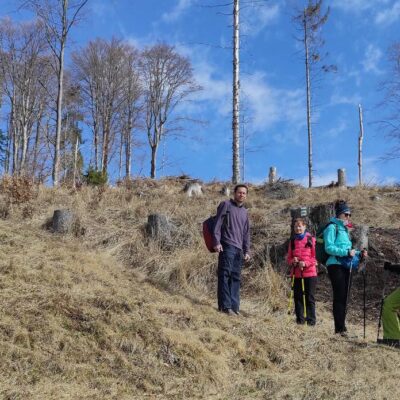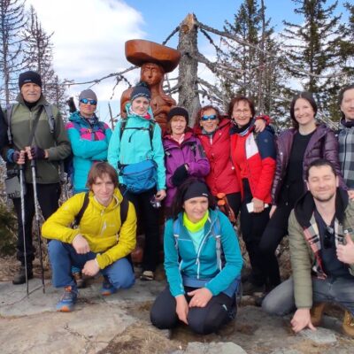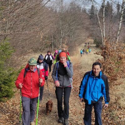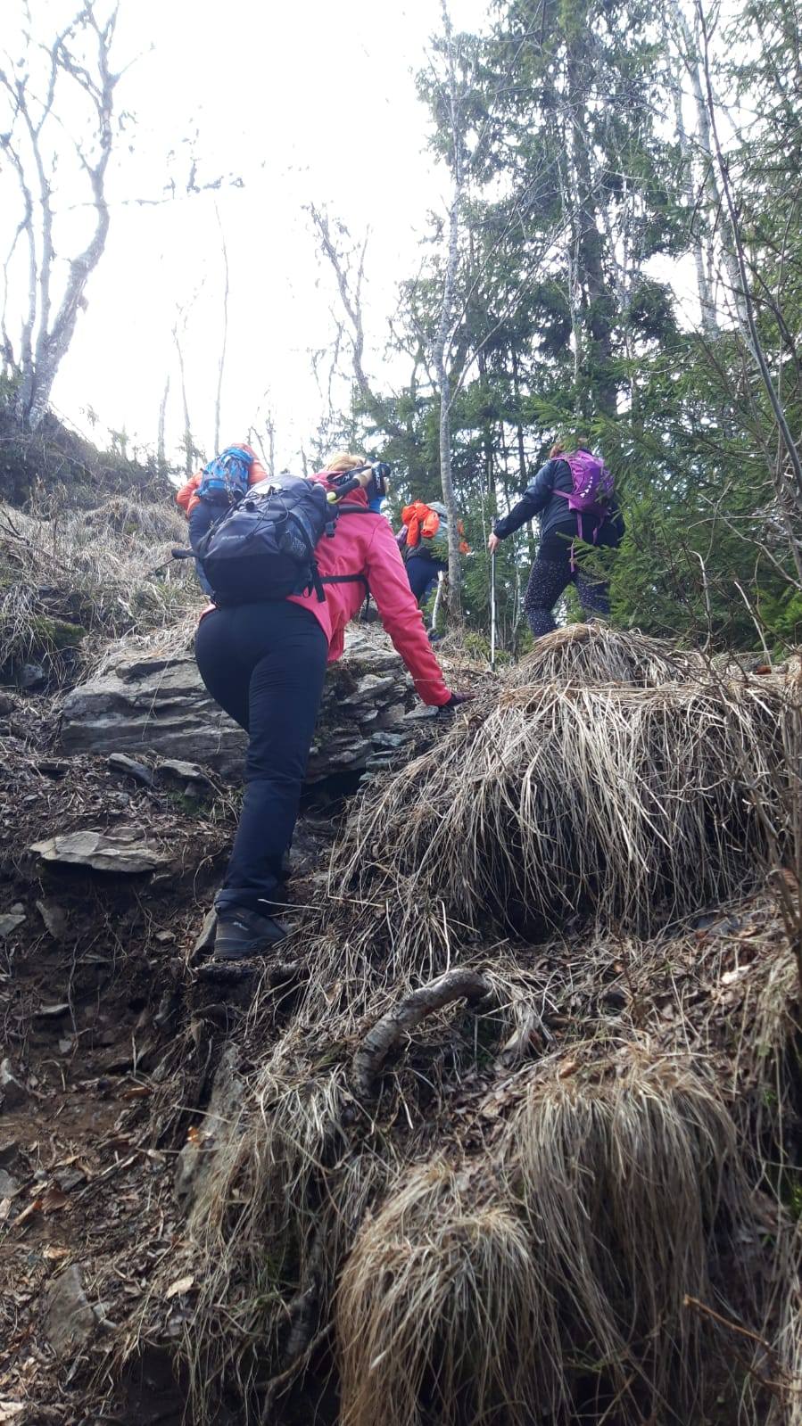 Pomaličky sa vydávame vstriec pokoriť skalné bralá Vepra, slniečko stále hreje a nálada v skupine je výborná. Niektorí účastníci si pre istotu doniesli aj turistické nesmeky, no Vepor k nám bol milosrdný a až na pár fliačikov ľadu neostalo po zimných podmienkach na hrebeni už nič. Azda len to, že sa suchá zima podpísala aj na vzhľade smrekového pralesa, ktorý pôsobil trochu smutným dojmom, namiesto toho, aby prekypoval zeleňou.
