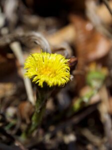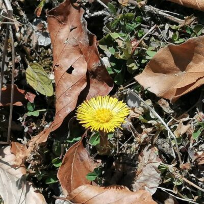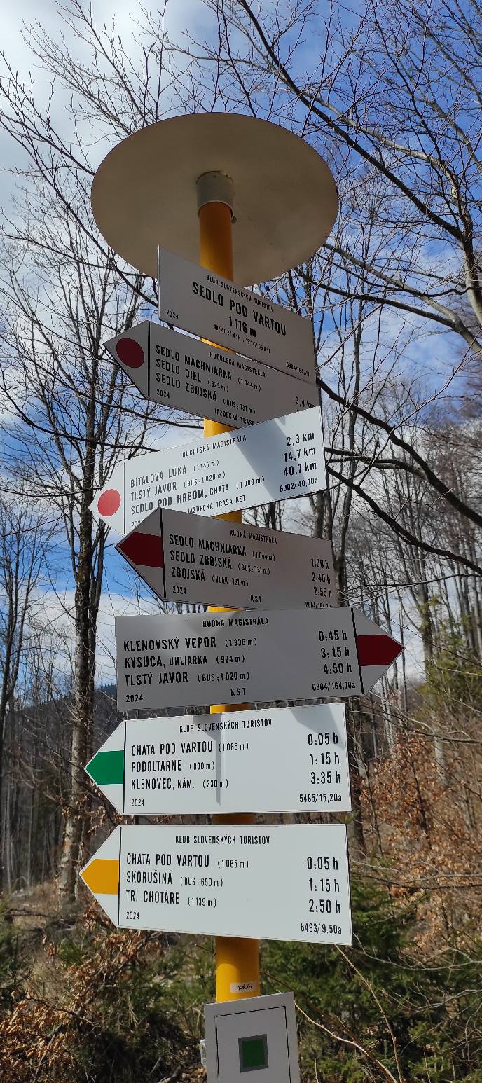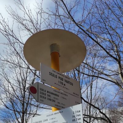 Od smerovníka Skorušiná stúpame po žltej značke asfaltovou cestou popri Veporskom potoku a užívame si ticho a chlad doliny, ktorá sa pomaly prebúdza do krásneho dňa. Všimli sme si, že cestu lemujú aj žlté hlavičky podbeľa liečivého a kde-tu sa objavil aj pomaly rozkvitajúci deväťsil biely.