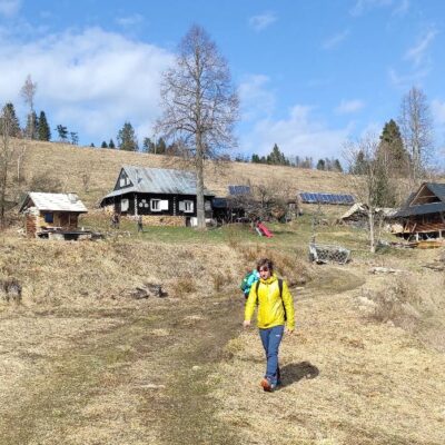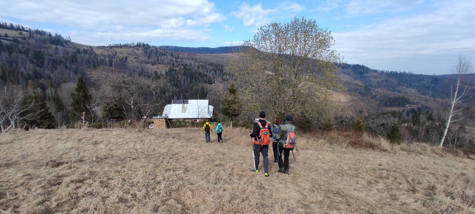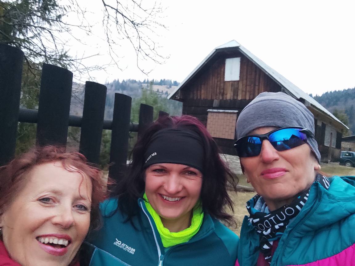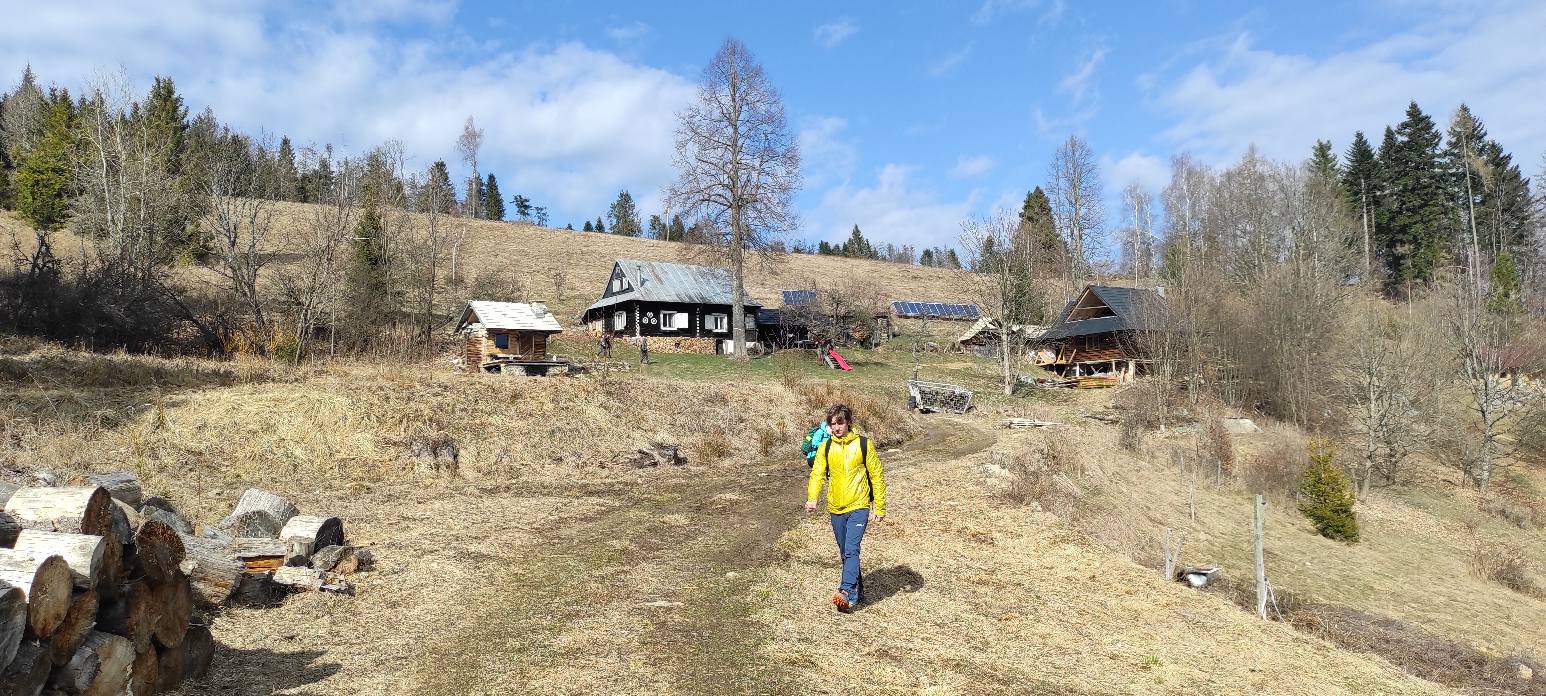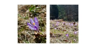 Pomaly sme sa začali približovať k útulni pod Vartou, kde sme si urobili menšiu pauzičku a odfotili sa. Okolie chát lemovali fialové koberce šafranov spišských.