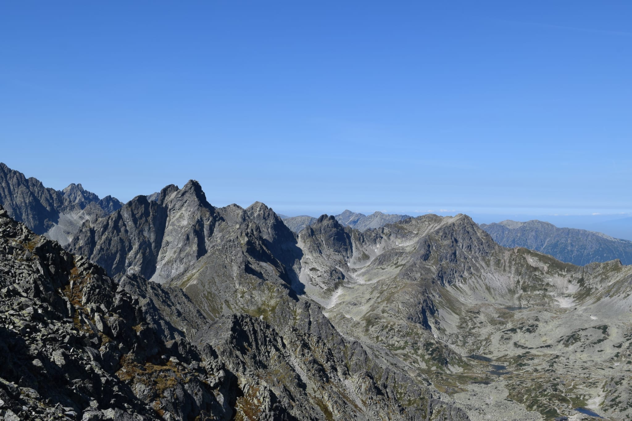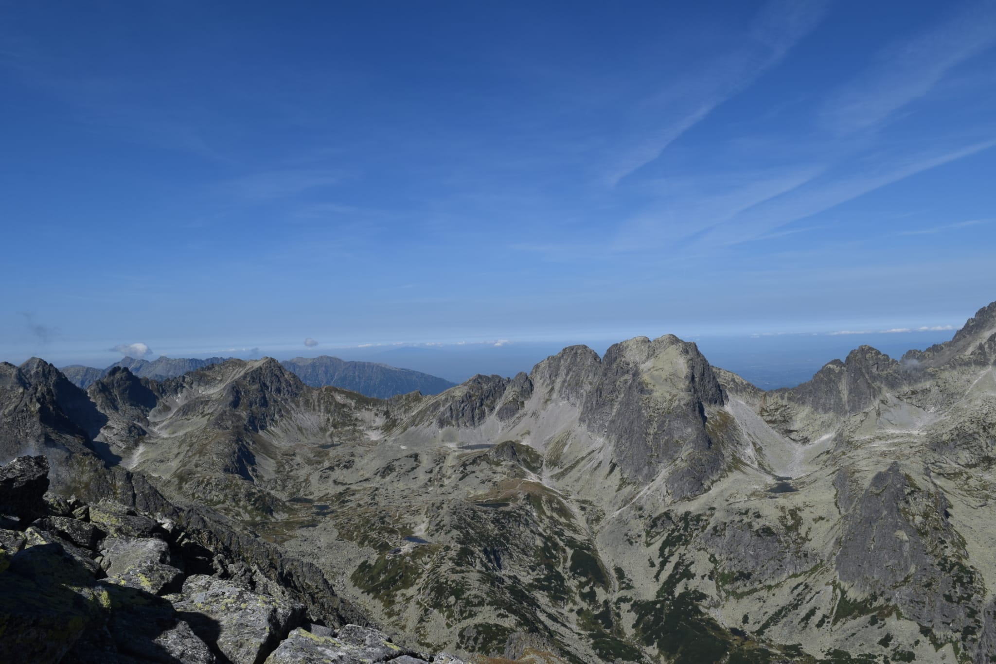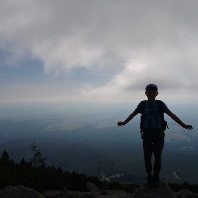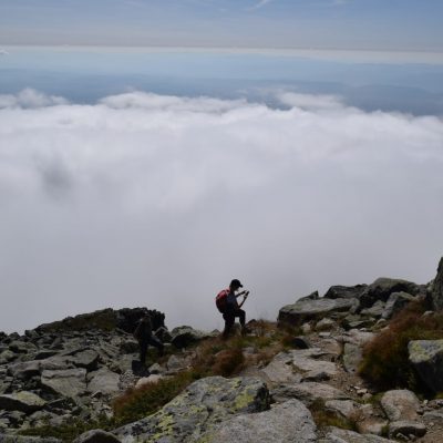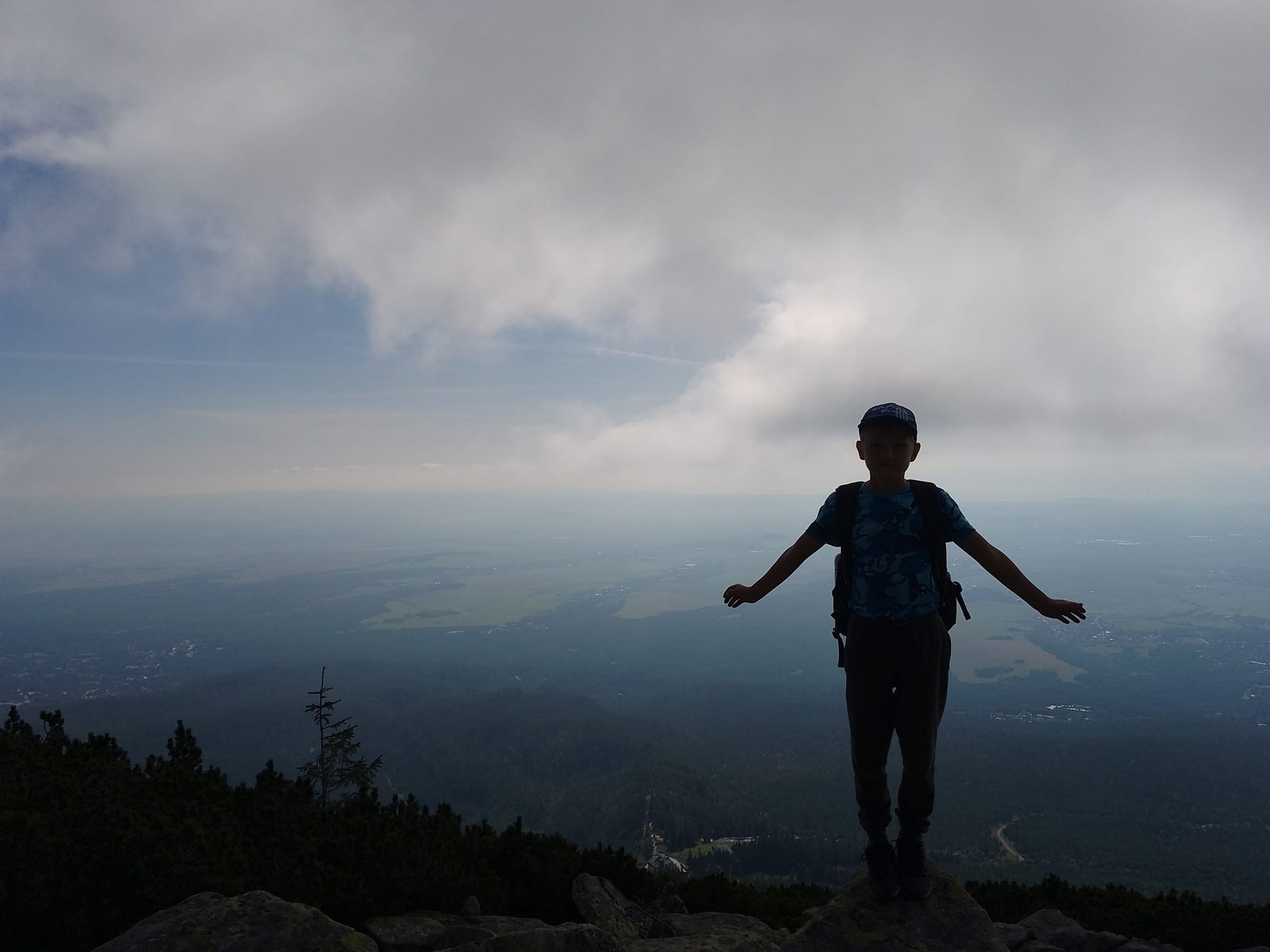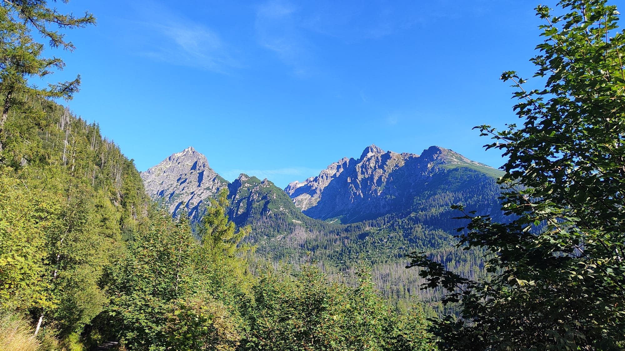 Slniečko tak ako my pomaly stúpa vyššie a vyššie a pri rázcestí pod Slavkovským štítom dávame dole vrchné vrstvy oblečenia. Ako sa mení les v kosodrevinu, nám sa začínajú odkrývať prvé výhľady, aj keď zatiaľ len do dolín.