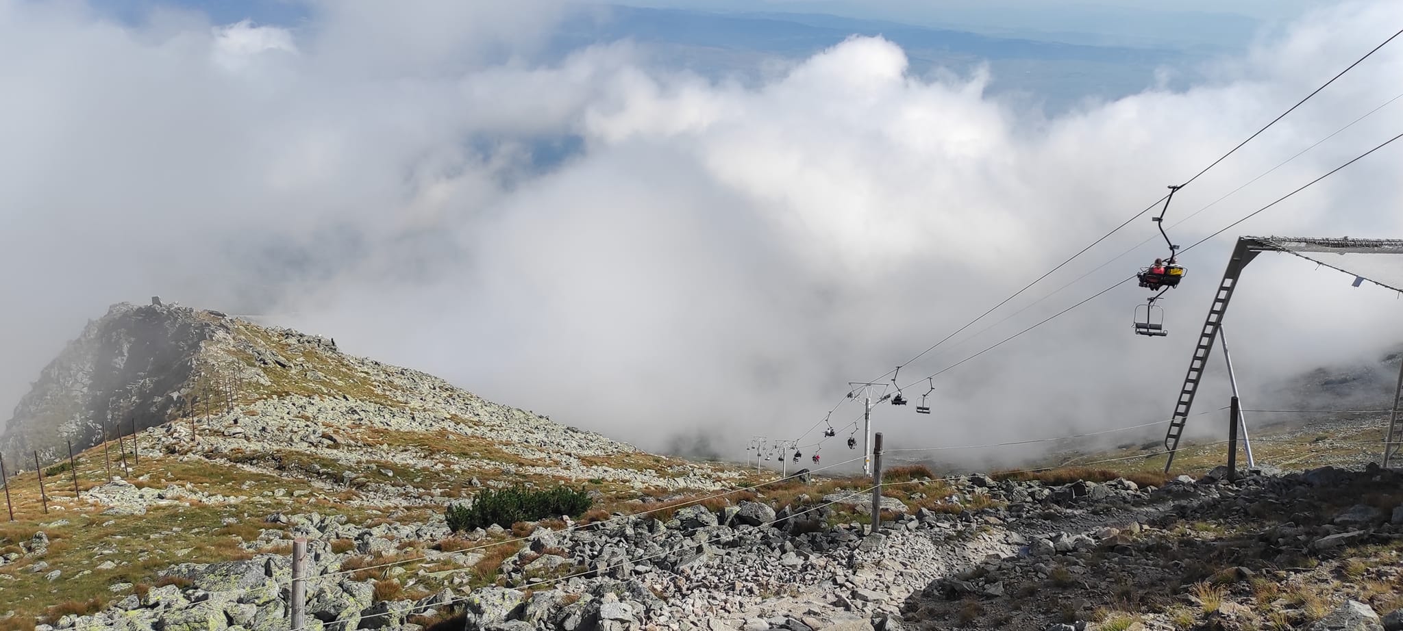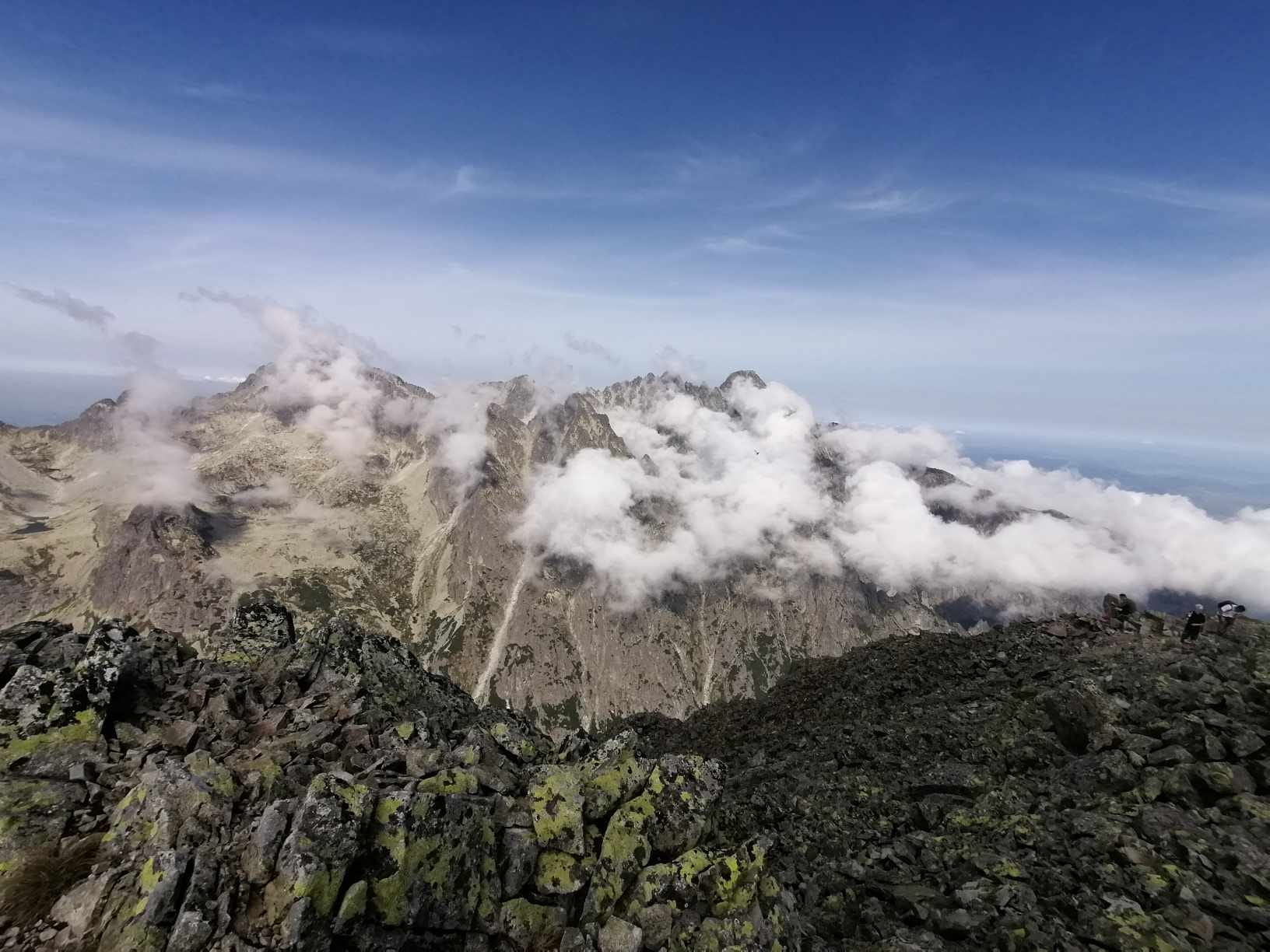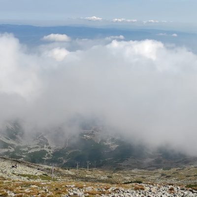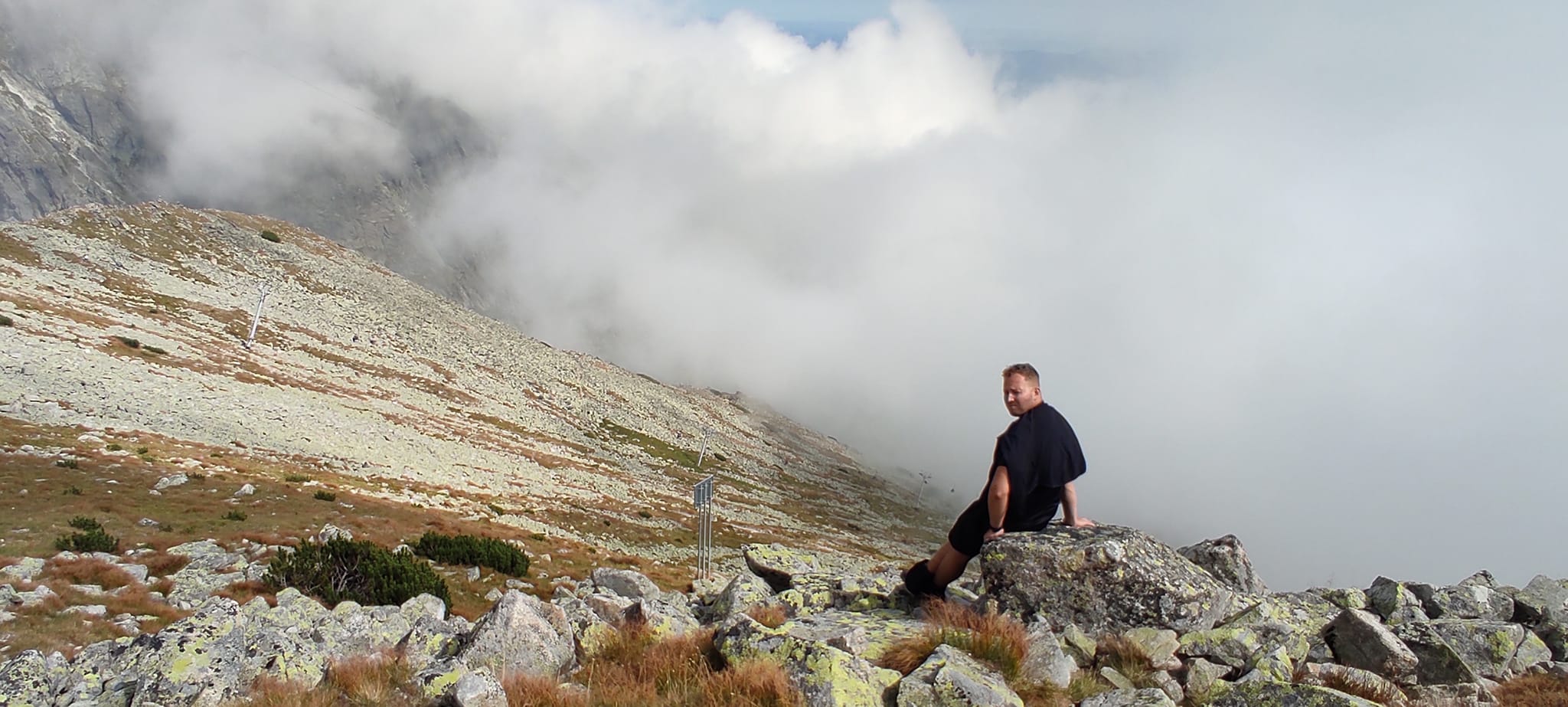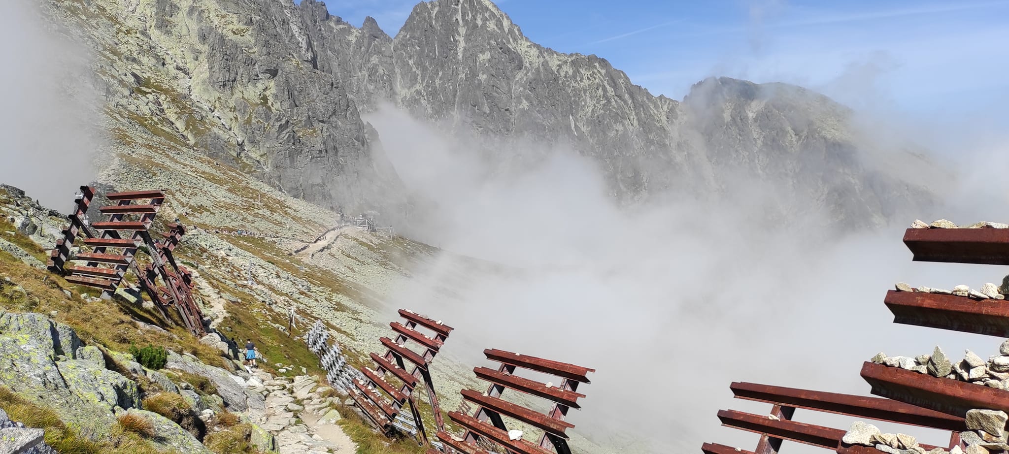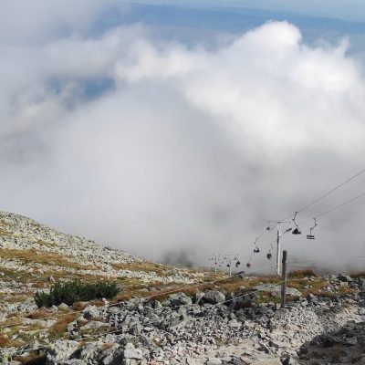Občas bolo potrebné nútene zastať a dať prednosť inej skupine turistov. Prevažne poliaci, češi, maďari. A keďže času bolo dostatok, rozhodli sa obzrieť si najstrmšiu lyžiarsku zjazdovku zhora a kochať sa pohľadmi z nadmorskej výšky 2190 m, z Lomnického sedla.