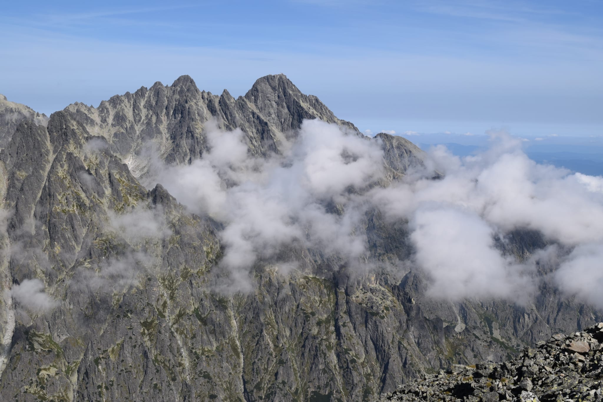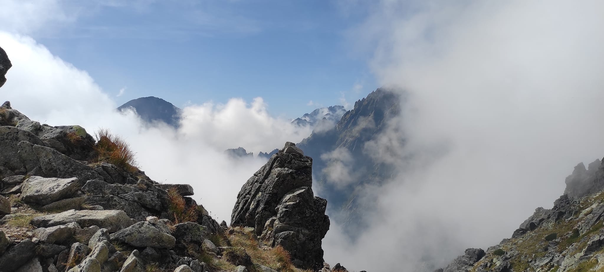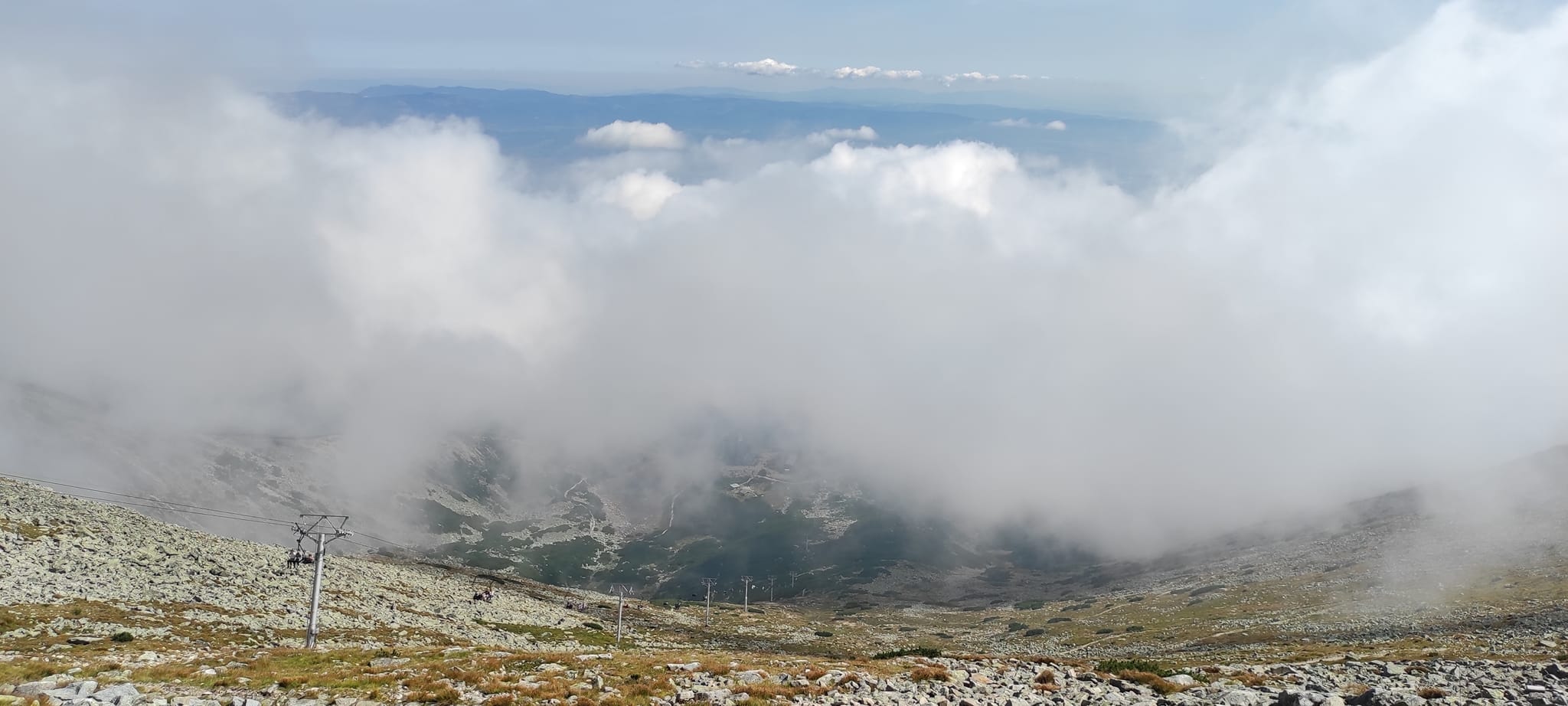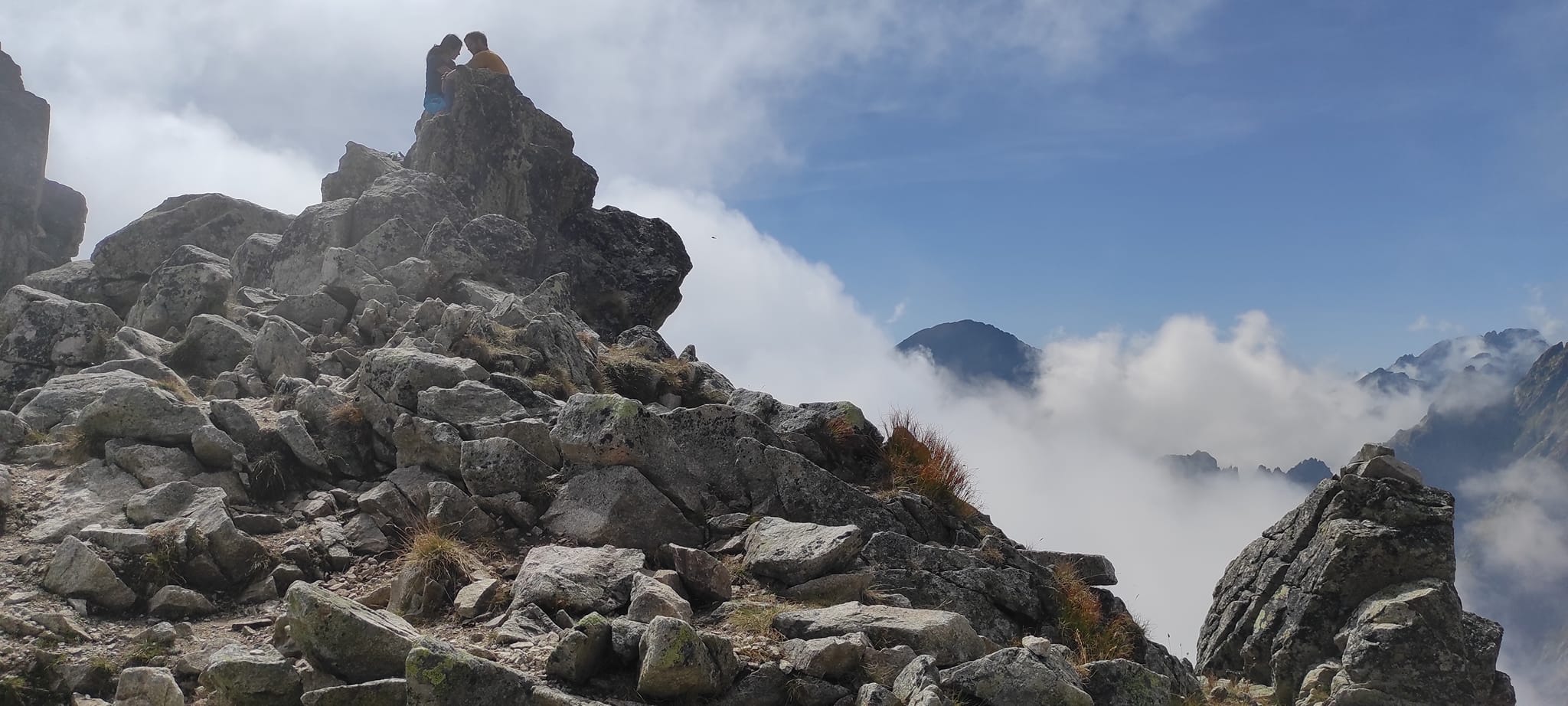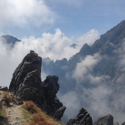 Občas bolo potrebné nútene zastať a dať prednosť inej skupine turistov. Prevažne poliaci, češi, maďari. A keďže času bolo dostatok, rozhodli sa obzrieť si najstrmšiu lyžiarsku zjazdovku zhora a kochať sa pohľadmi z nadmorskej výšky 2190 m, z Lomnického sedla.