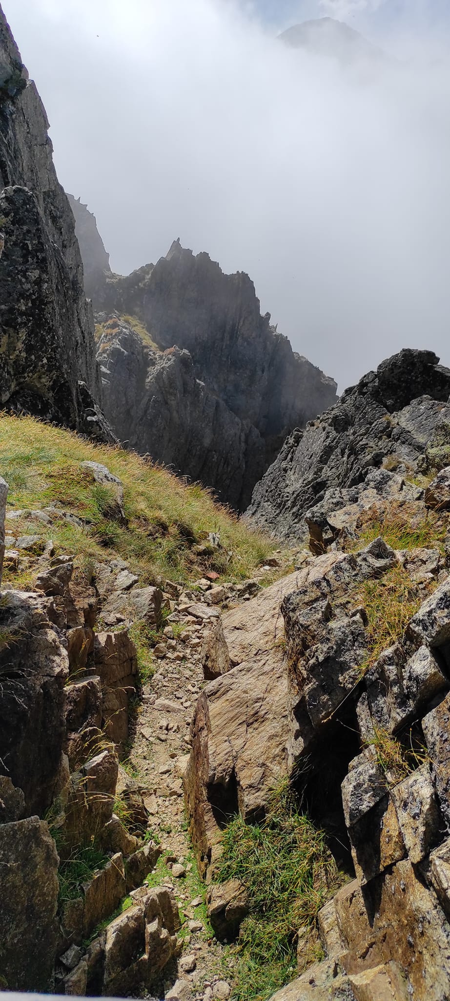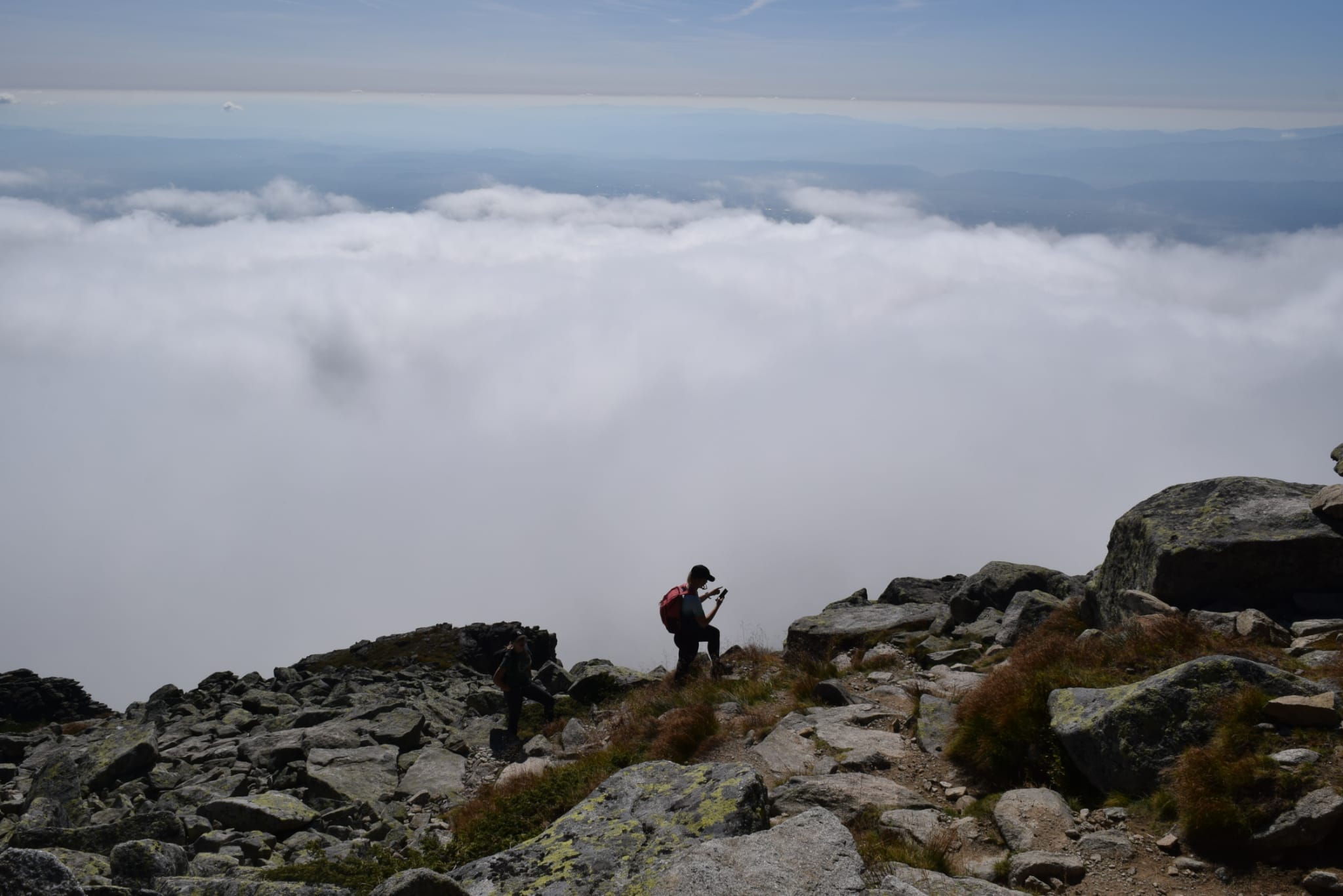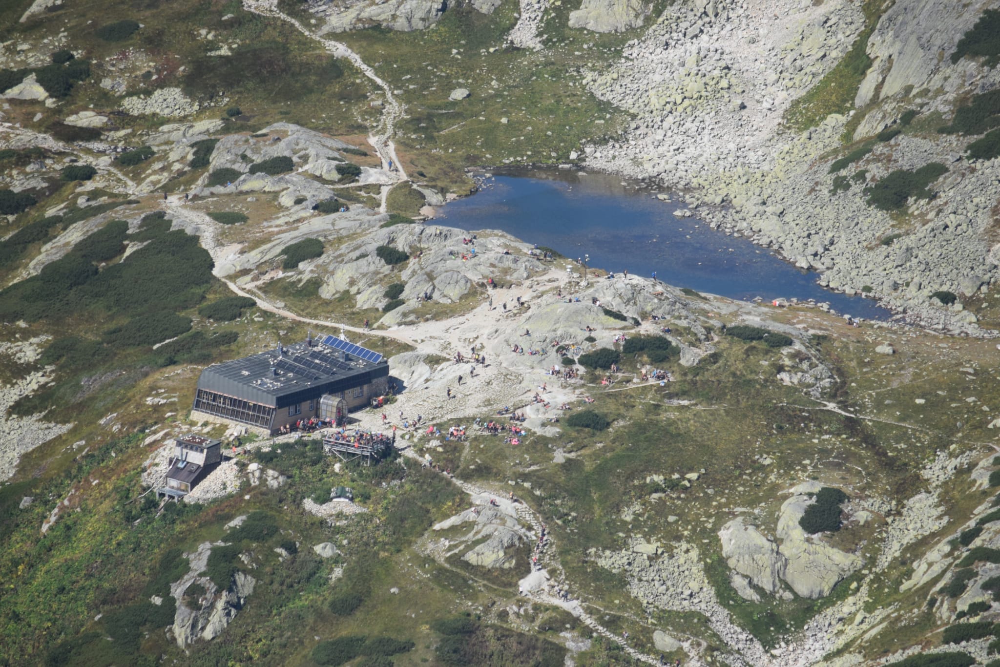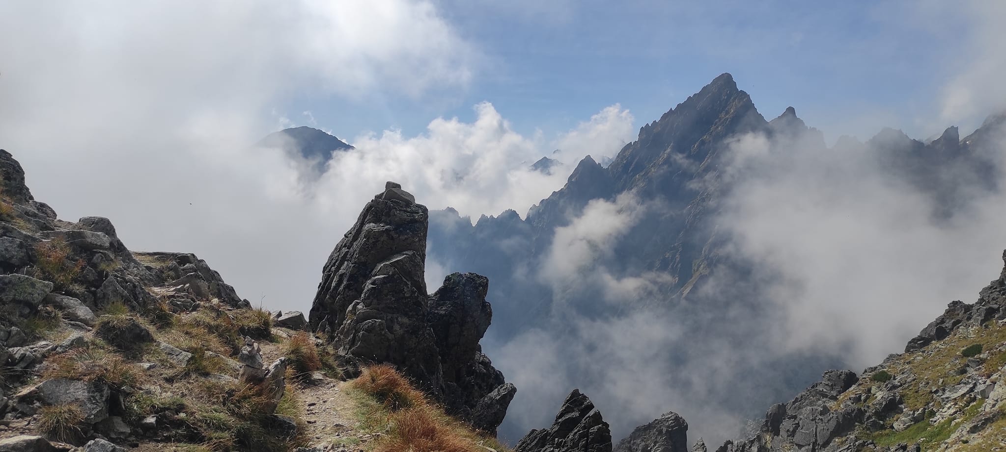 Občas bolo potrebné nútene zastať a dať prednosť inej skupine turistov. Prevažne poliaci, češi, maďari. A keďže času bolo dostatok, rozhodli sa obzrieť si najstrmšiu lyžiarsku zjazdovku zhora a kochať sa pohľadmi z nadmorskej výšky 2190 m, z Lomnického sedla.