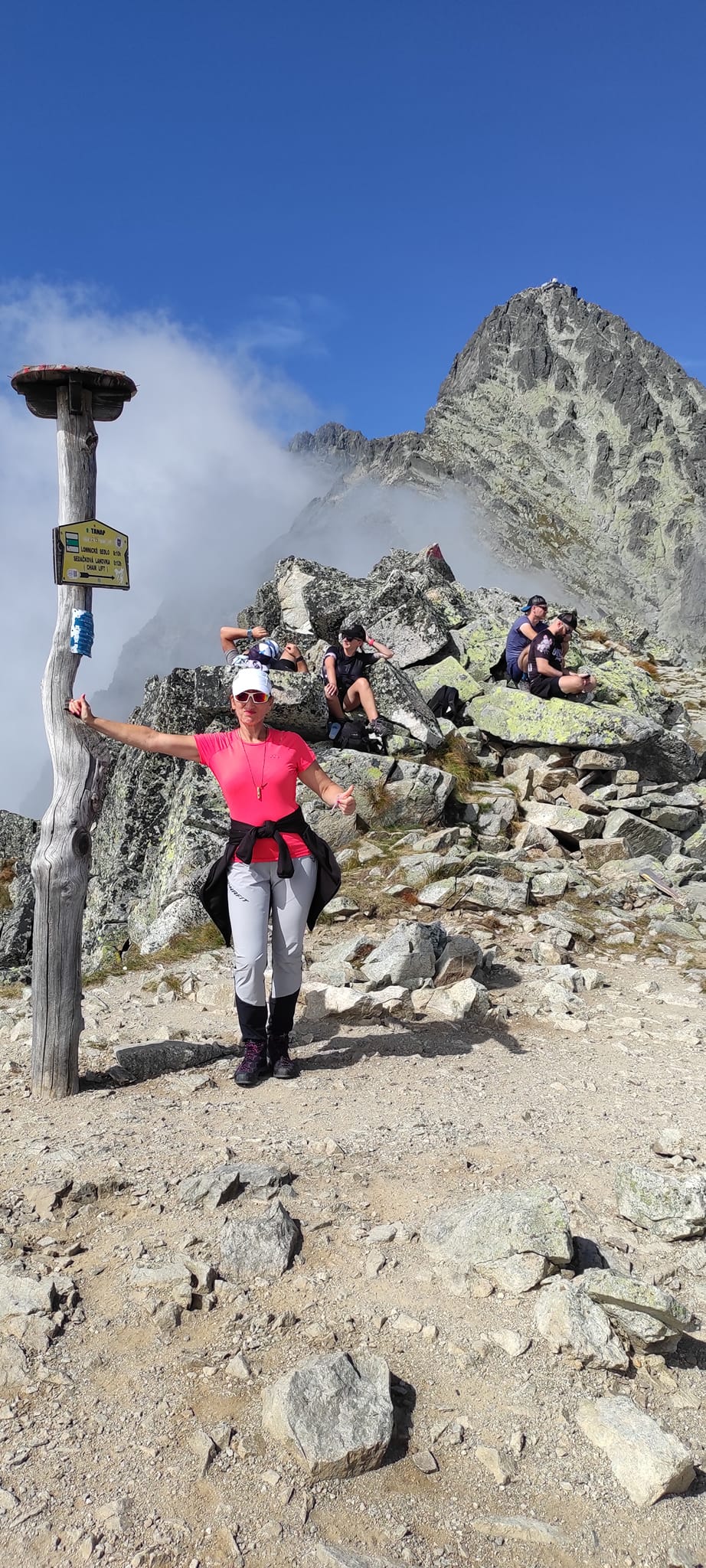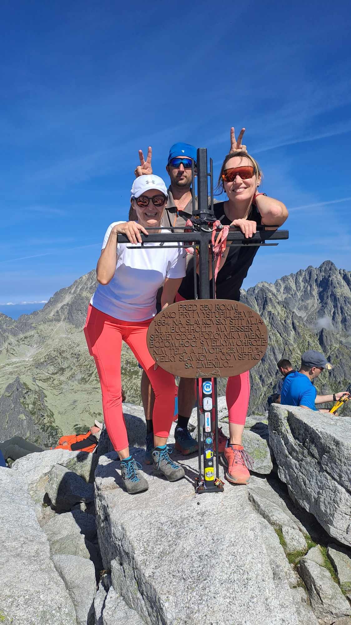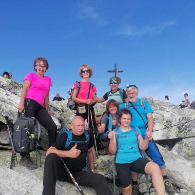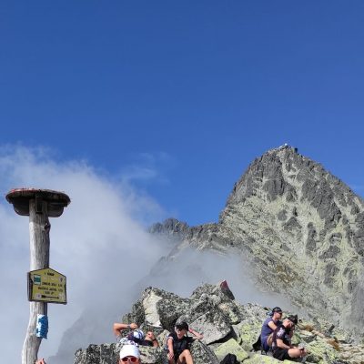 Doplníme tekutiny a poď ho ďalej. Sú takí. Čo uvažujú , či nie je lepšie sa vrátiť z kratšej cesty. Treba si dobre zvážiť na čo má človek síl, lebo dôležitejšie je prísť  domov v poriadku a bez zranení. Po niekoľkých hodinách máme pred sebou cieľ. Slavkovský štít sme zdolali, aj keď len z polovice, lebo po odpočinku, občerstvení a výmene zážitkov nás čaká dlhá cesta nadol. O niečo rýchlejšie, ale viac unavení, míňame miesta, ktoré sú nám už známe. Po pár hodinách sme opäť v Smokovci. Tu sa stretávame s druhou skupinou, ktorá sa rozhodla pre prechod južnými svahmi Vysokých Tatier – tatranskou magistrálou.