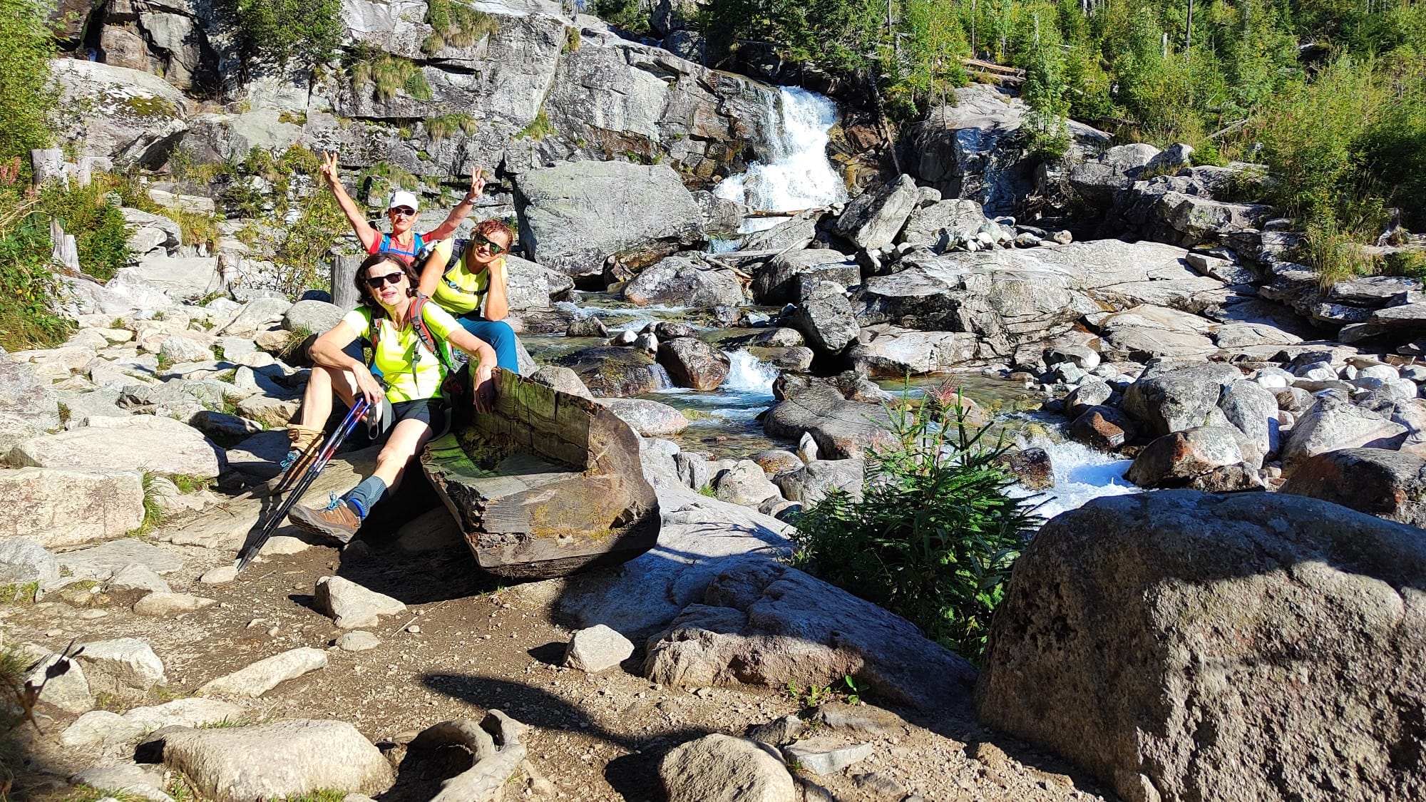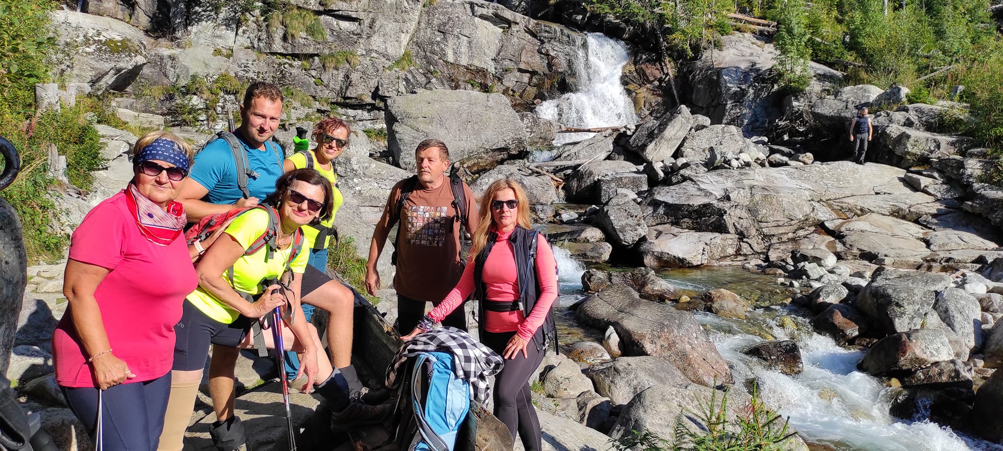 Nedalo sa nenavštíviť Studenovodské vodopády, Zámkovského chatu v rekonštrukcii, kde už za rána bolo turistov a turistov.   Aj druhá skupinka si slnečnú sobotu užívala plnými dúškami. Celou cestou na Skalnaté pleso sa im nad hlavami vznášali vo vzduchu paraglajdisti.