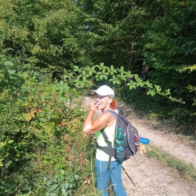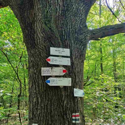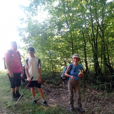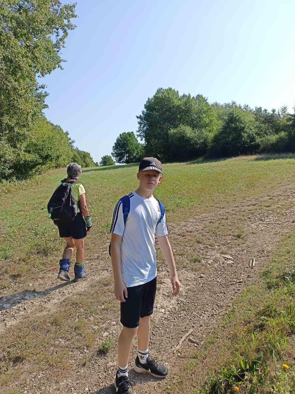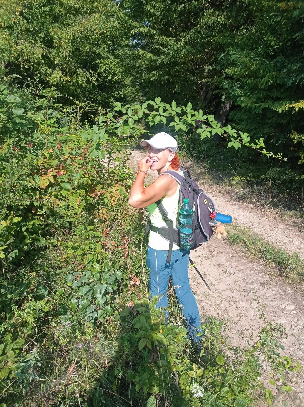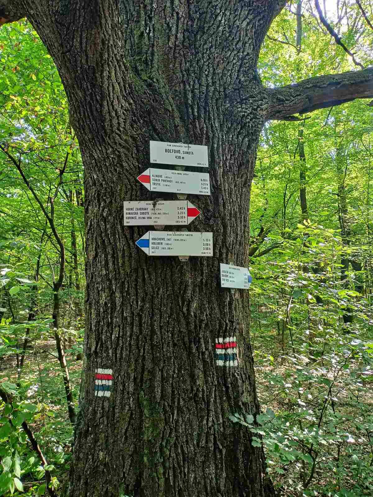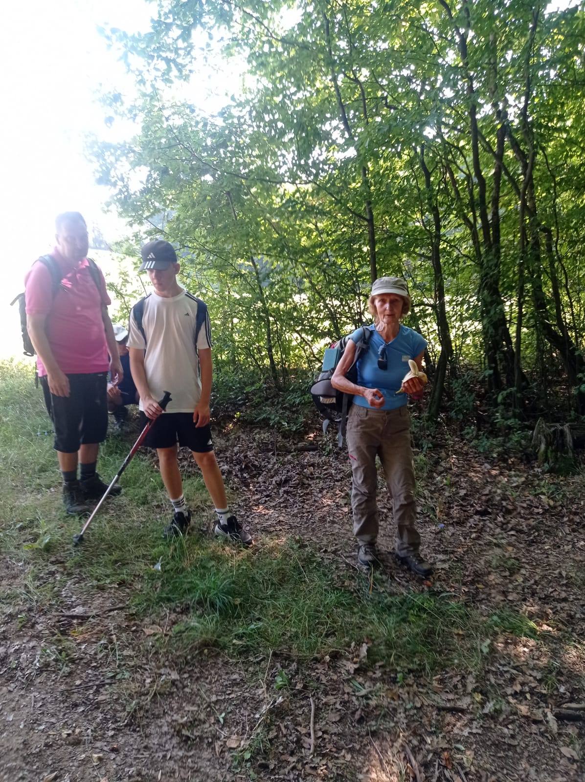 Na Boľfove, pri majestátnom buku slúžiacom aj ako smerovník, sme pooddychovali, pitný režim poctivo dodržali a vyrazili ďalej. S pribúdajúcimi kilometrami pribúdali aj úseky, kde nás už neochránil tieň stromov a veru pribúdali aj stupne na teplomery. Prechádzali sme okolo kríkov obsypaných nádhernými černicami, ktoré sa veľkosťou vyrovnali aj tým záhradným.