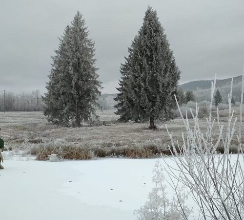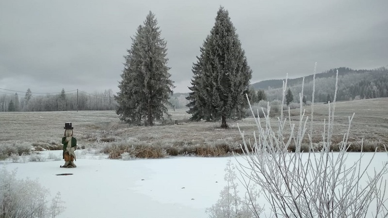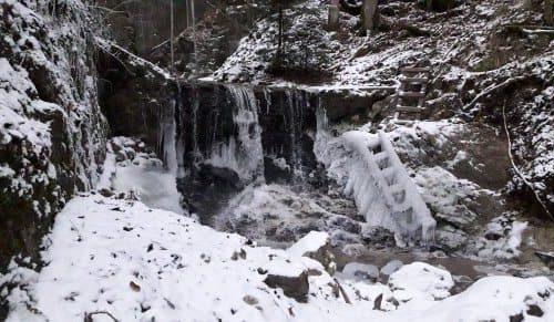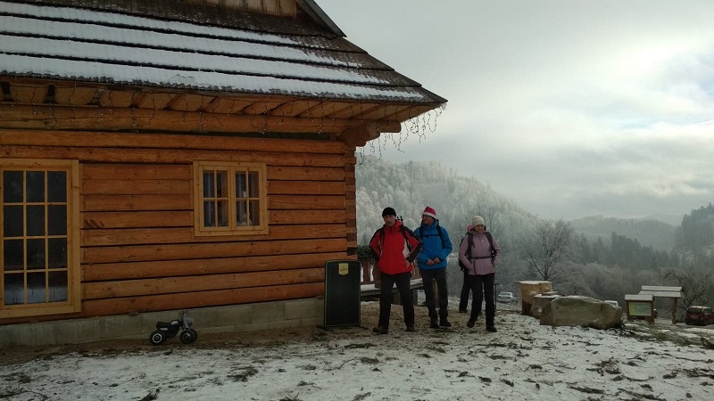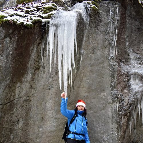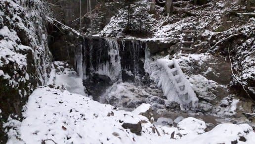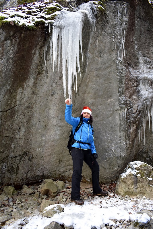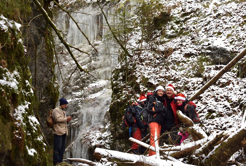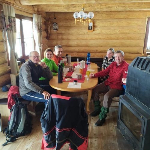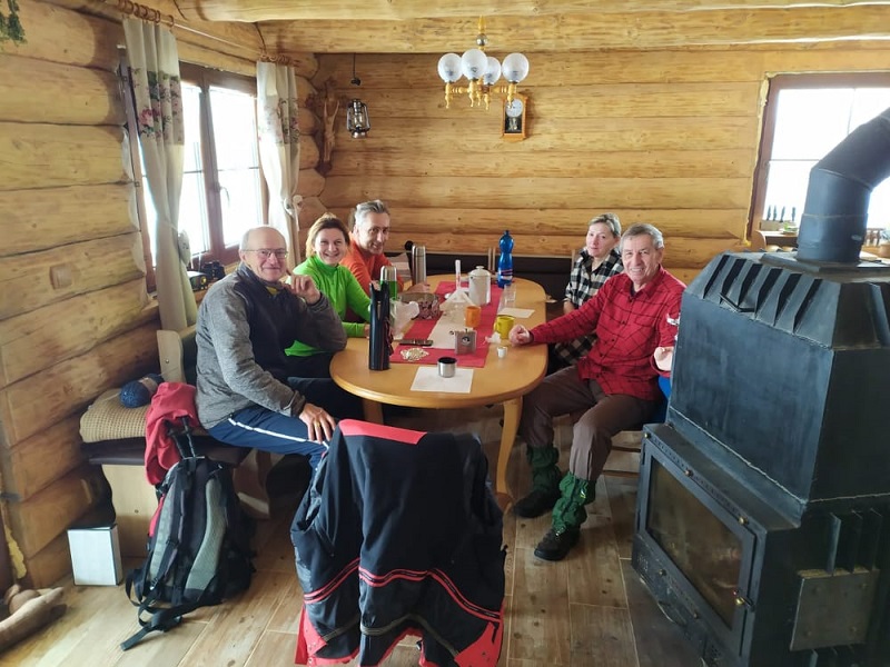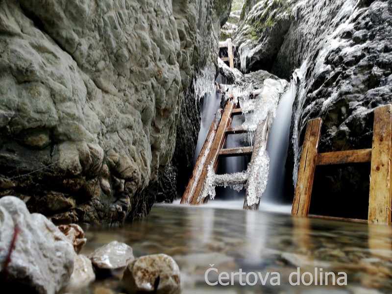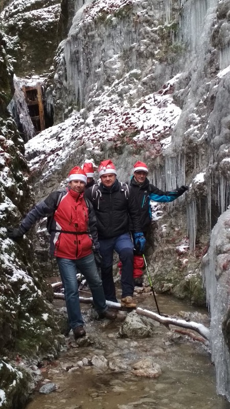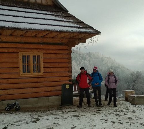Netrvá dlho a zisťujeme, že vodná prekážka nás núti zmeniť trasu (ak nechceme byť po kolená vo vode). Väčšina z nás sme tak na Zbojská pokračovali po trati, štyria odvážlivci to predsa len nevzdali a pokračovali v prechode Čertovou dolinou. A tak nečudo, že podaktorým aj do topánok natieklo. Zážitkom bolo to ľadové kráľovstvo vôkol nás. Cencúle, námraza, no nádhera. Okolo obeda sa postupne stretávame na salaši Zbojská. V tomto istom termíne práve prebiehala na Zbojskách prehliadka zabíjačkových špecialít a tak, kto mal chuť a hlad, mohol sa zúčastniť aj tejto akcie. My sme nepohrdli miestnymi špecialitami salaša.