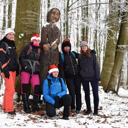 Je sobotné ráno, snehu zatiaľ poskromne, ale aspoň mrazivo a krásne bielo. Napriek tomu, že aj tento rok sme sa rozhodli prejsť „Chodník Jakuba Surovca“ tak ako vlani, Čertovou dolinou prešli len poniektorí z nás. Ani tentokrát sa to nezaobišlo bez zastavenia pri rozhľadni. Ej, boli už aj také zimy, že poniektorí sa tu v snehu váľali. Okrem spoločného fotenia na vlakovej zastávke, na Remetisku prichádza ďalšie. Najskôr „Mikulášky“ a čertice, až potom prichádzajú na rad „Mikulášovia“. Cesta horou ubehla pomerne rýchlo. Ani sa nenazdáme a sme v ústí Čertovej doliny.