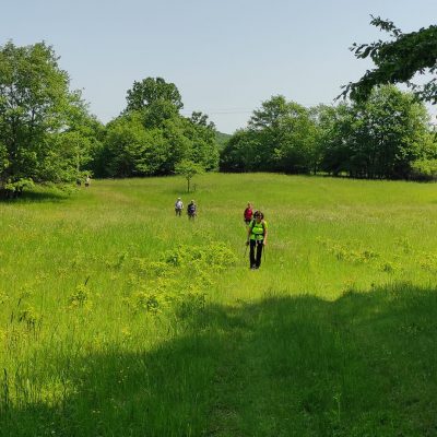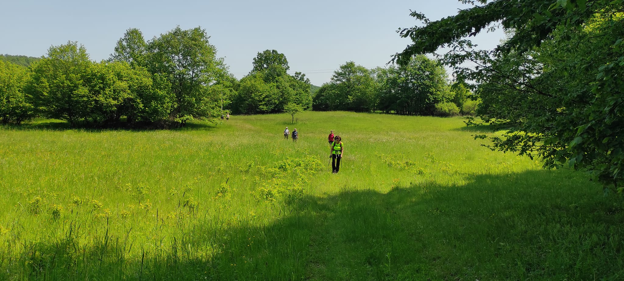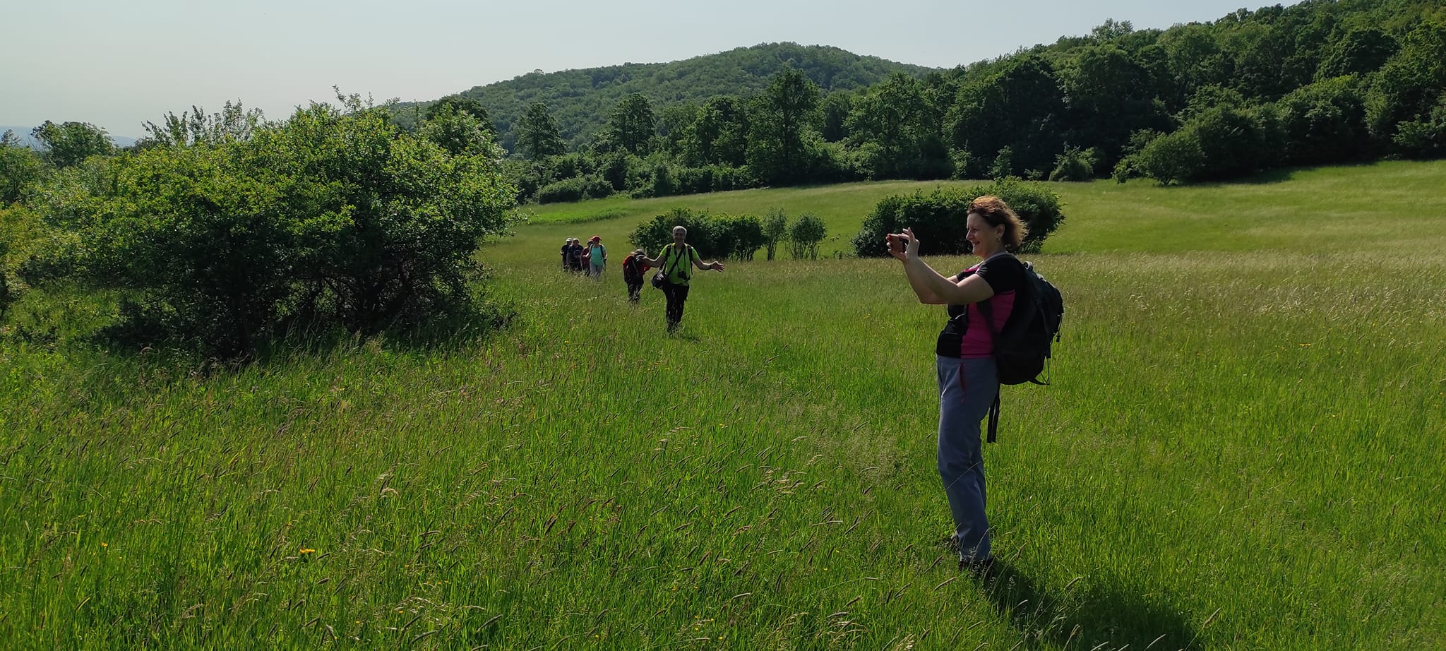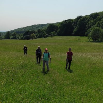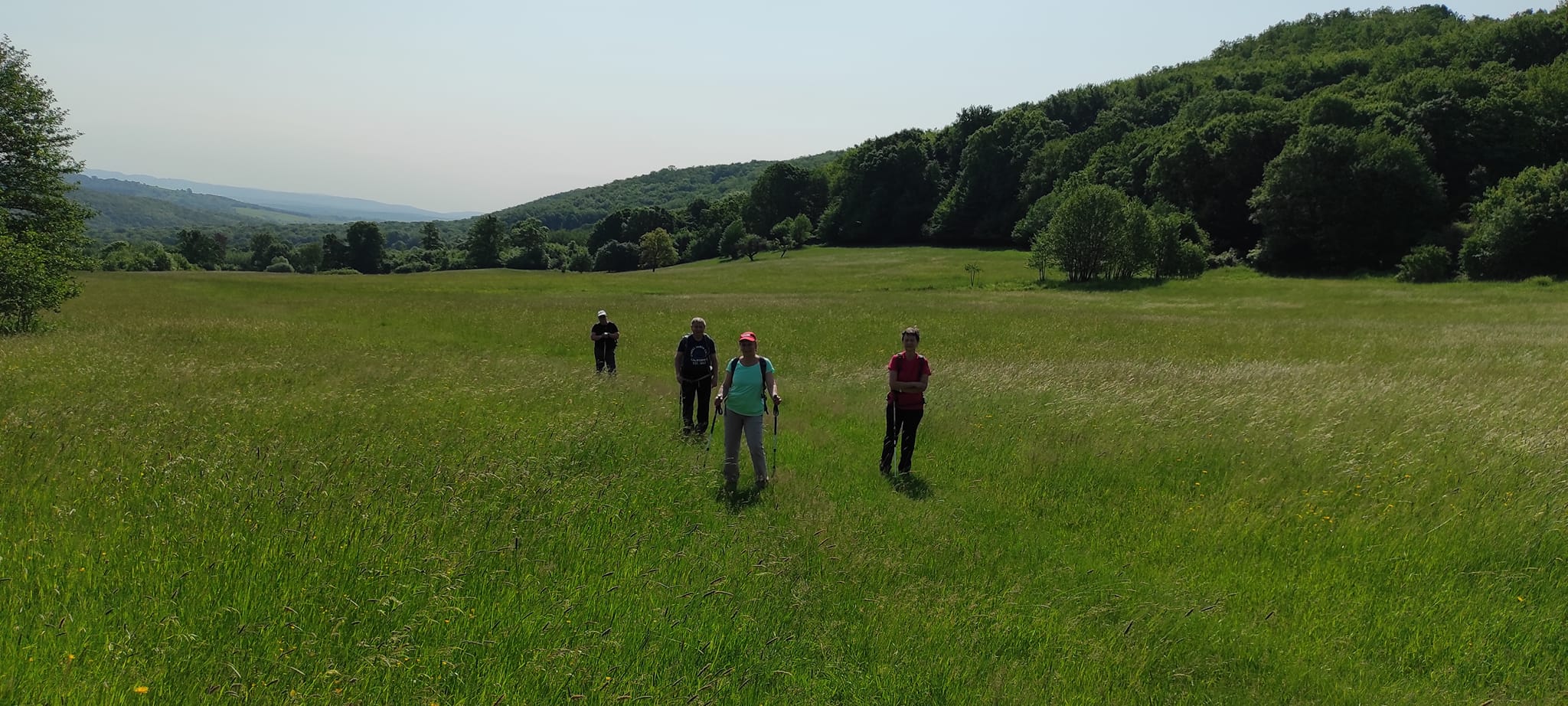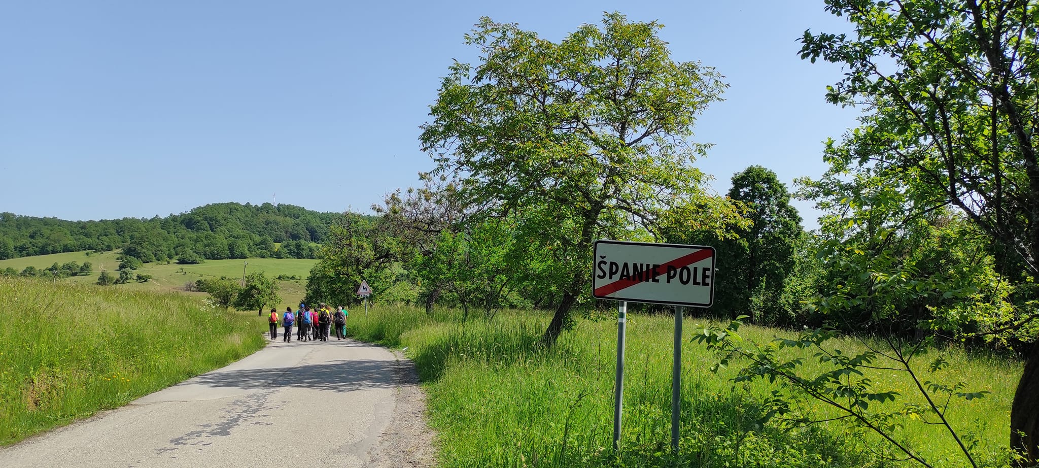 pred sebou nenáročnú, ale dlhú trasu a po krátkej obhliadke kostolíkov, katolíckeho a reformovaného, ktorými nás doprevádzala pani starostka, začíname kráčať po zelenej značke smer Španie pole.