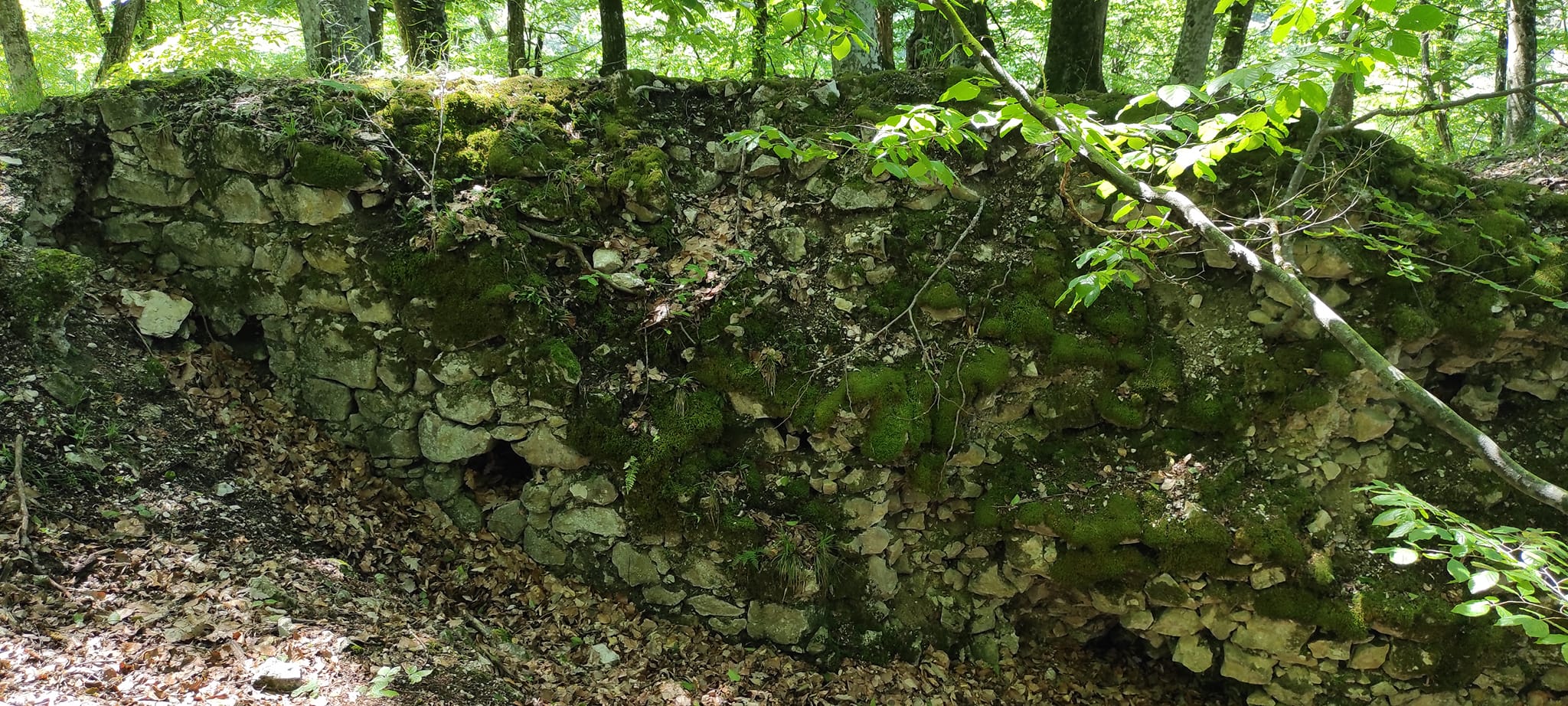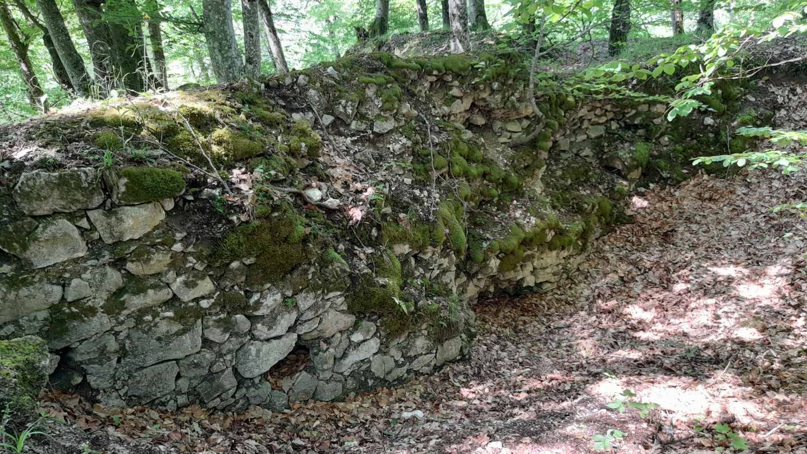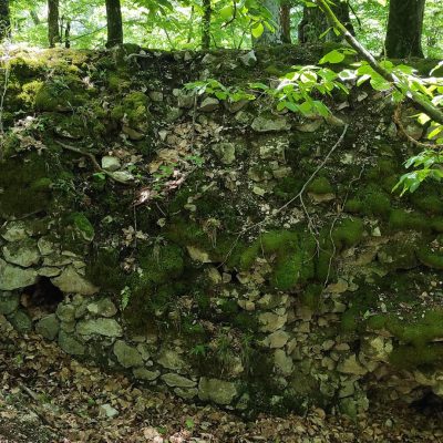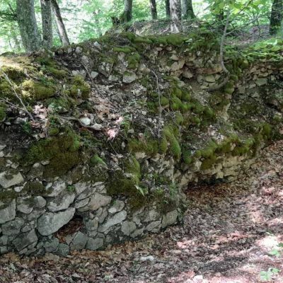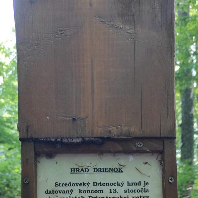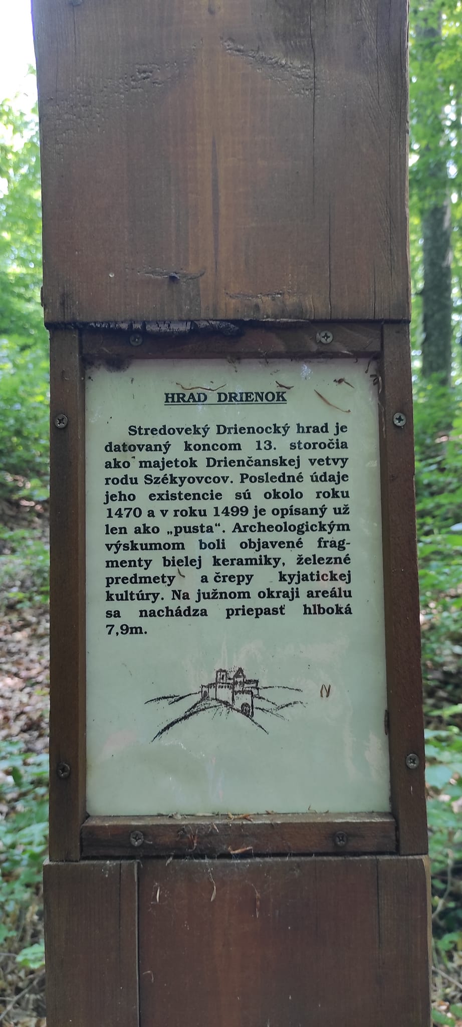 Približne v polovici trasy prichádzame k zrúcanine hradu Drienok ako majetok Drienčanskej vetvy rodu Székyovcov ( z dokumentov hrad vznikol v 13. a zanikol v 15. storočí). Žiaľ, ostali po ňom iba zvyšky základov na južnom svahu vrchu Rúbaň (479 m n. m.) nad potokom Drienok, už len ako „pusta“.