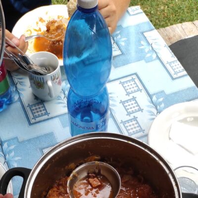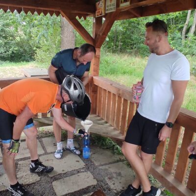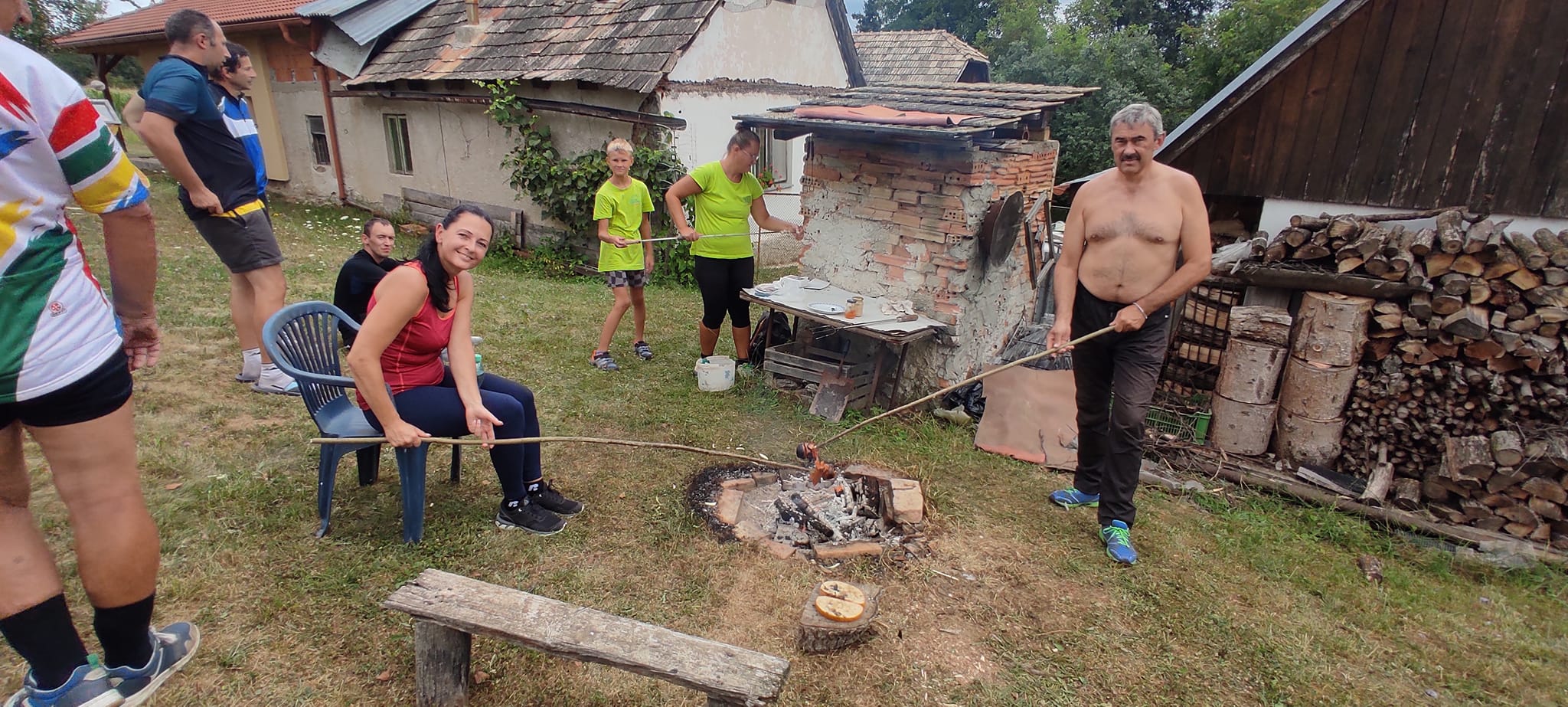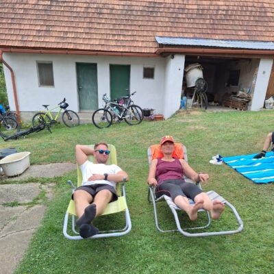 Na pozvanie nášho kamaráta Adriana Turoňa sme absolvovali príjemné posedenie v Maštinci. Odbočenie z cyklotrasy asi 1 km. Domáci nám pripravili občerstvenie – výbornú kapustnicu, možnosť opekania, kávu, maštinskú… .
