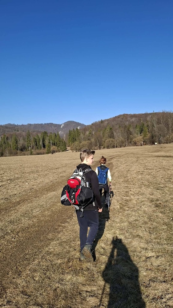Občerstvili sme sa a pokračovali ďalej modrou smer Jasenina. Objavili sme krásne výhľadové miestečko, kde sa nám zjavili mohutné skalné bralá Káštera , Hradovej a Voniacej. V diaľke sa zaleskla aj strecha chaty na Tŕstí.