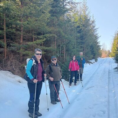 7. 3. 2026 sa 32 turistov za krásneho, bezoblačného a ozaj jarného počasie vybralo na sedlo Zbojská vláčikom. Odtiaľ sa púšťame po červenej značke cez sedlo Diel do sedla Bánovo.