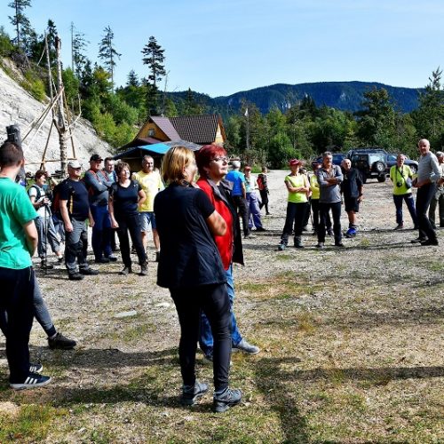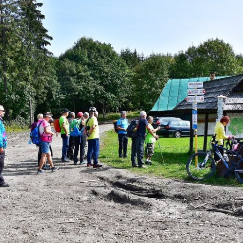 Za krásneho slnečného počasia sa stretávame členovia troch klubov (Hnúšťa, Rimavská Sobota, Tisovec) na Zbojskách, odkiaľ vyrážame po červenej do sedla Burda – horská chata Burda.