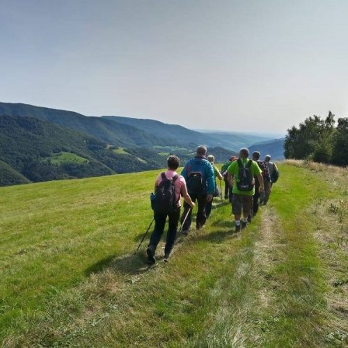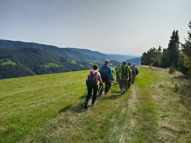 Niektorí naši členovia sa vracajú domov vláčikom zo Zbojsk. Poniektorí sme sa rozhodli pre peší návrat až do Tisovca, mimo značenia, cez Kľak a Kačkavu. A urobili sme dobre. Sem-tam krátke zastavenie, nádherné výhľady.