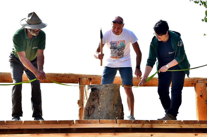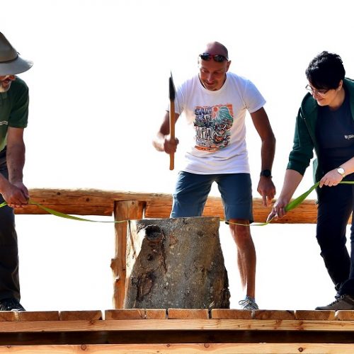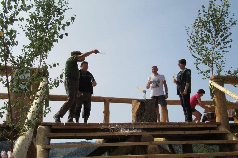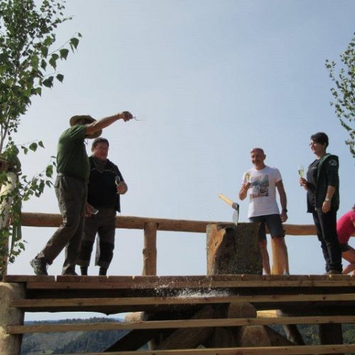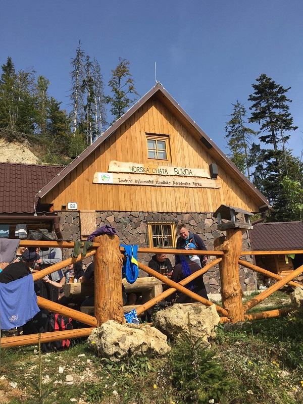 Medzi nami je aj niekoľko cyklistov. Aj keď tohoročný ročník je následkom corony trochu iný ako inokedy, nám to na skvelej atmosfére neuberá. Z pozvánky nám už bolo jasné, že v ten istý deň bude na Burde slávnostné otvorenie „turistickej vyhliadkovej terasy“, ktorého sme sa stali súčasťou. Po krátkom príhovore a preťatí pásky sa vyhliadková terasa zapľňa turistami. Občerstvenie tentokrát len z vlastných zásob, no pivko je na chate výborné.