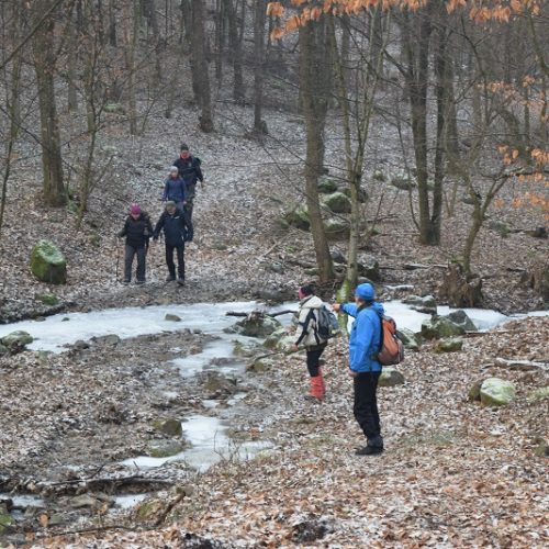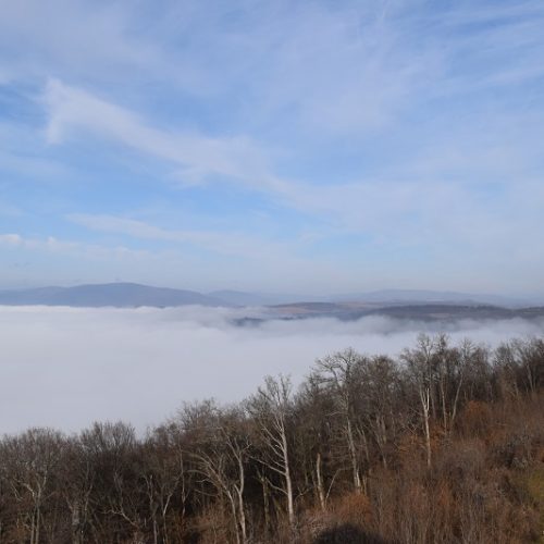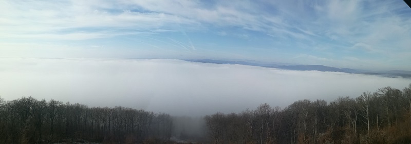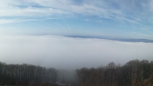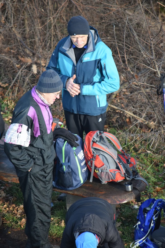 Vzhľadom na ročné obdobie snehu takmer nikde. Pri rozhľadni sme sa stretli turisti z oboch trás. Krátke občerstvenie, výstup na rozhľadňu, spoločné foto takmer štyridsiatky turistov. Hmla stúpa a keďže v Nižnom Skálniku nás čaká ďalšie párkové občerstvenie s teplým čajom, pridáme do kroku a čochvíľa máme túru za sebou.
