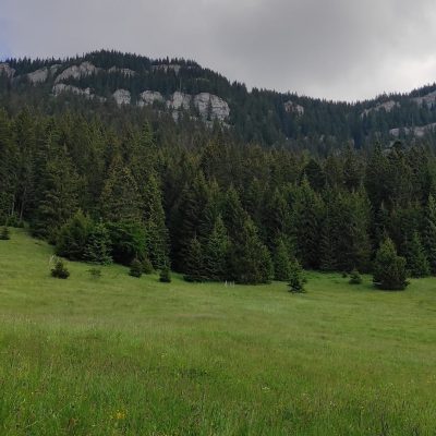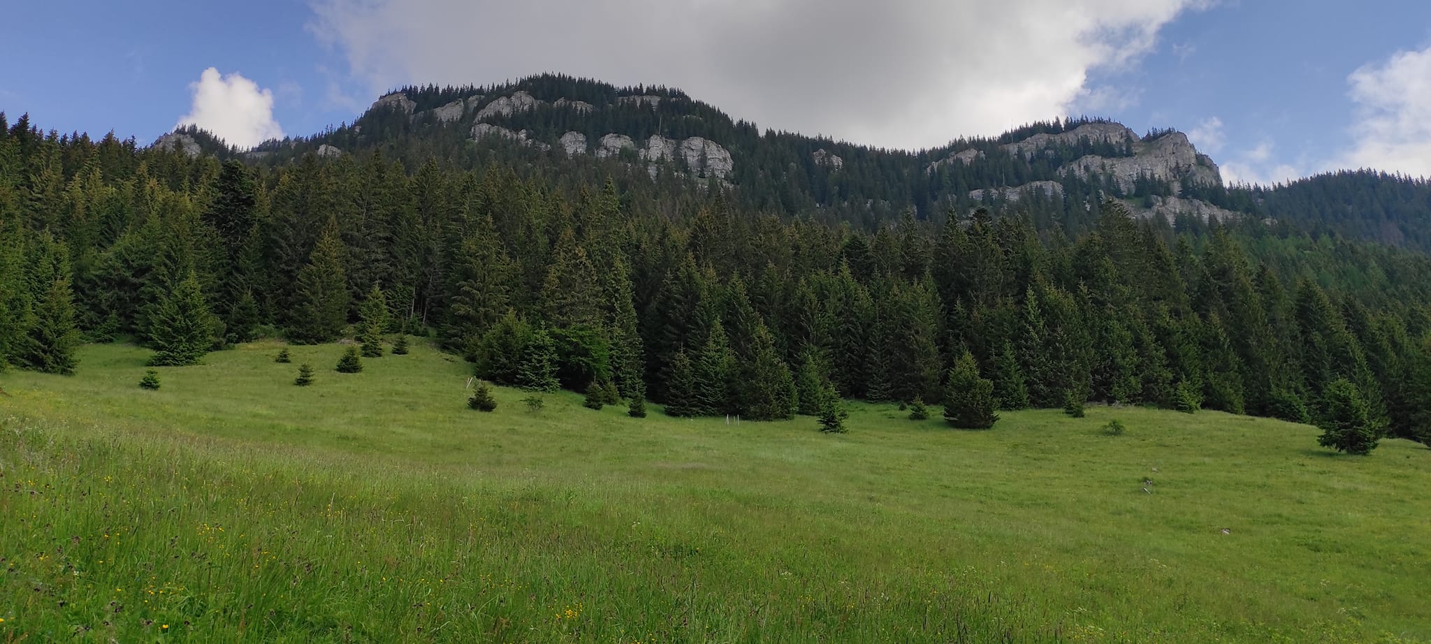 na príjemnejší terén lesnej cestičky a o čosi neskôr na ozajstný chodník. Potôčik sa s nami hrá na schovávačku v príjemnom lesíku. Čochvíľa nás chodník vyviedol na prvú nádhernú lúku obkolesenú hustou smrečinou a mohutným dolomiticko -vápencovým masívom Ohnišťa. Národná prírodná rezervácia Ohnište má vo vrcholových partiách ráz mierne zvlnenej krasovej plošiny.