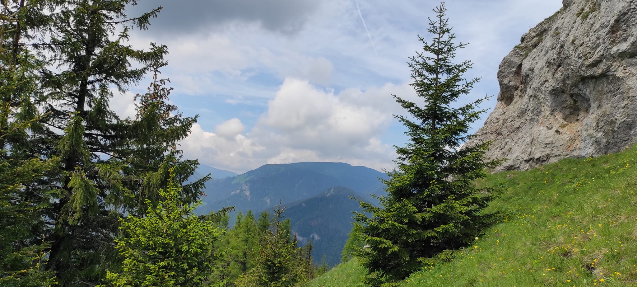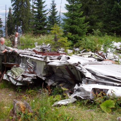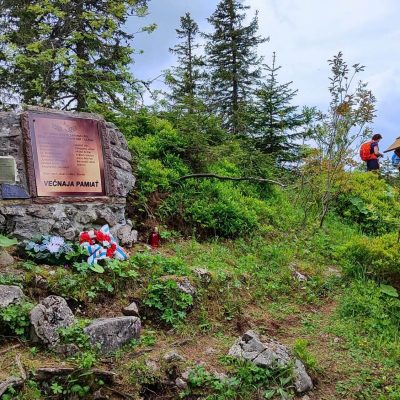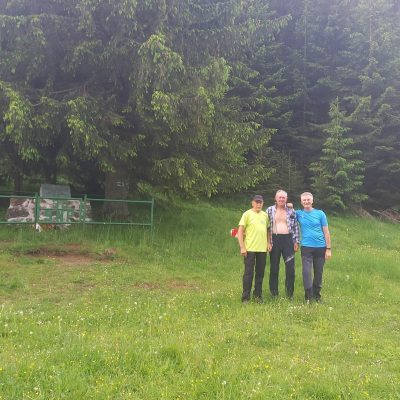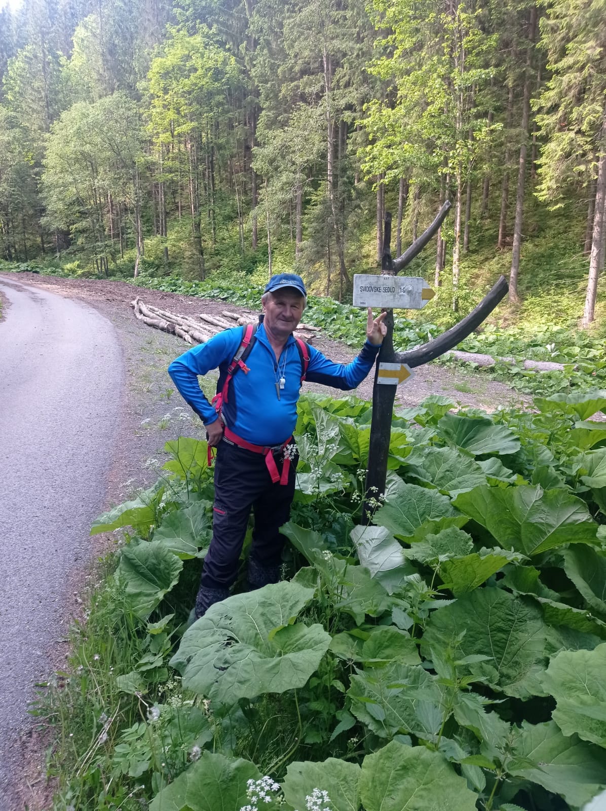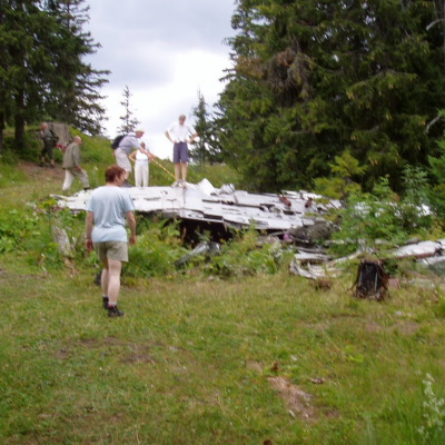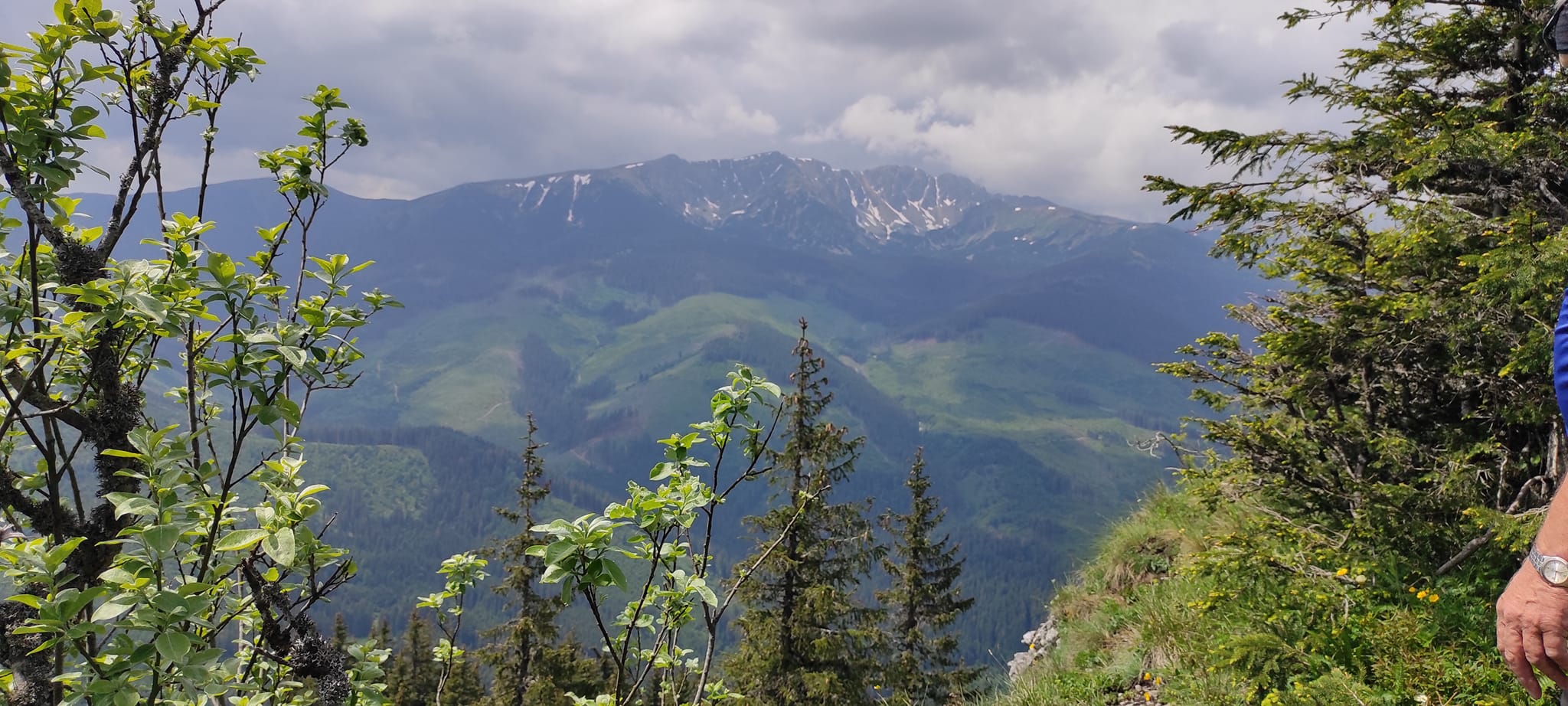 z našich batôžkov a spoločnom foto poberáme sa ďalej – na Slemä. Cestička je príjemná, stúpanie strieda klesanie, lúky zase riedky lesík na brale. Michalovské sedlo oddeľuje masív Ohnišťa od masívu Slemä. Z vrcholu Slemä krátka odbočka nás dovedie k ďalšiemu pamätníku SNP a troske zostreleného lietadla s neďalekou vyhliadkou. Popozeráme, pofotíme a ideme ďalej.