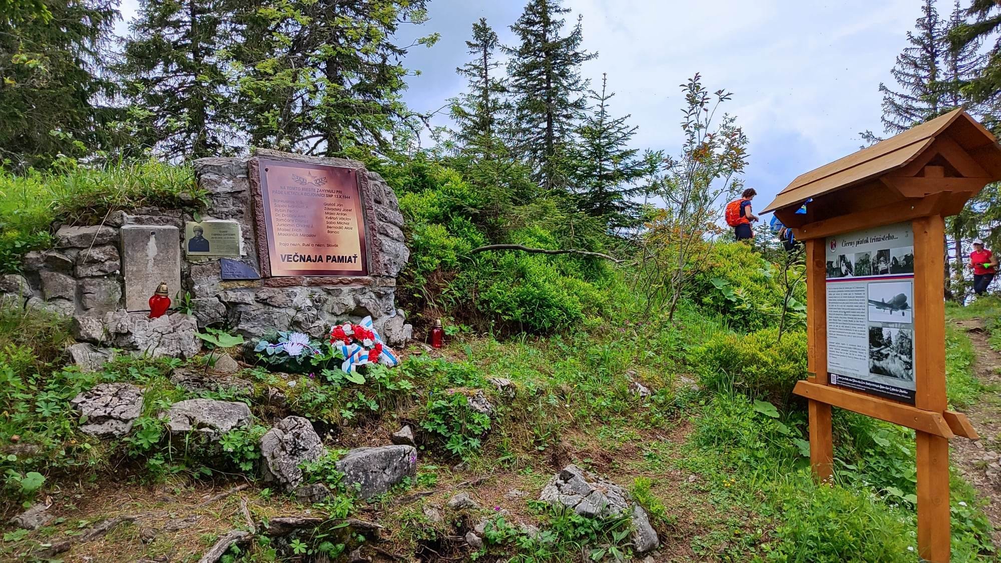 1133 metrov nad morom. Otvárajú sa nám prvé výhľady na Ďumbierske Tatry. Rozložité sedlo postupne zarastá smrekmi, pribudol altánok, pamätník SNP – upravený k tridsiatemu výročiu SNP je stále na svojom mieste.