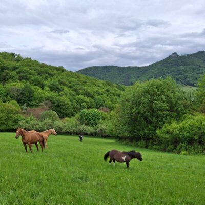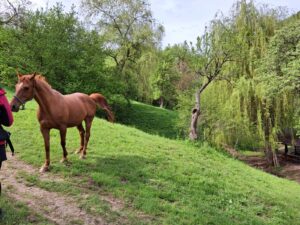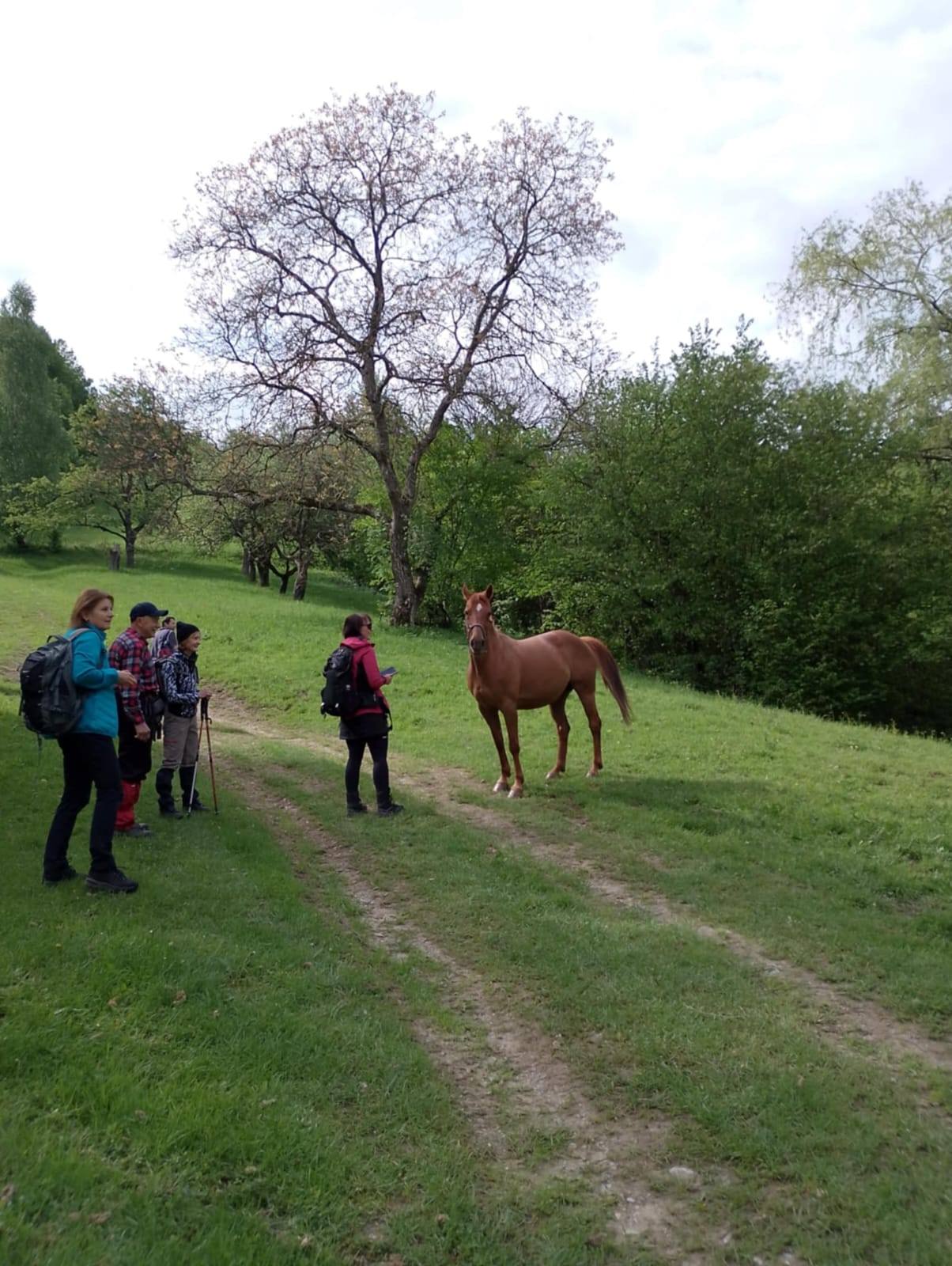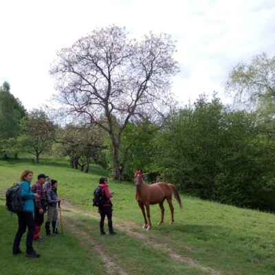 Naše kroky sledoval jarný spevavý drobizg. Niektorých sme spoznali podľa spevu a niektorých sme aj zahliadli. Na chvíľku sa k nám pridali aj statnejší štvornohí obdivovatelia, akoby nás chceli posmeliť v stúpaní do kopčeka s necelým 100 m stúpaním.