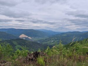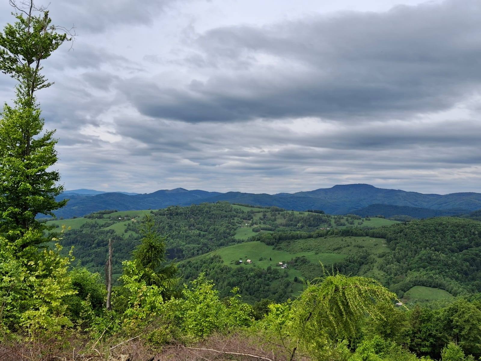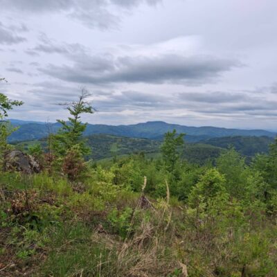 To druhé stúpanie býva odmenené úžasnými výhľadmi na okolité kopčeky, vrchy, aj celé pohoria. Tieto výhľady, po polome spred pár rôčkov, nám postupne zarastajú obnovujúcou sa vegetáciou.