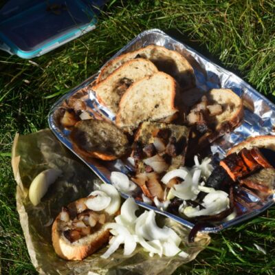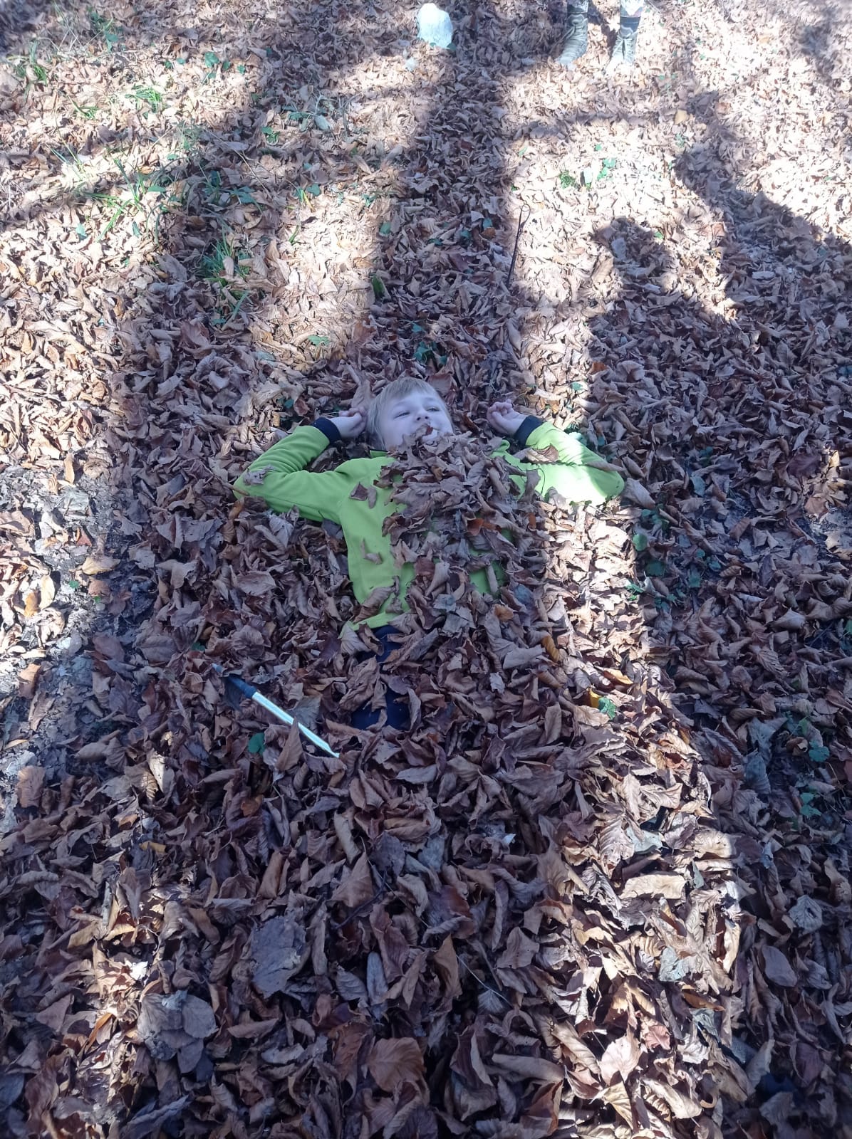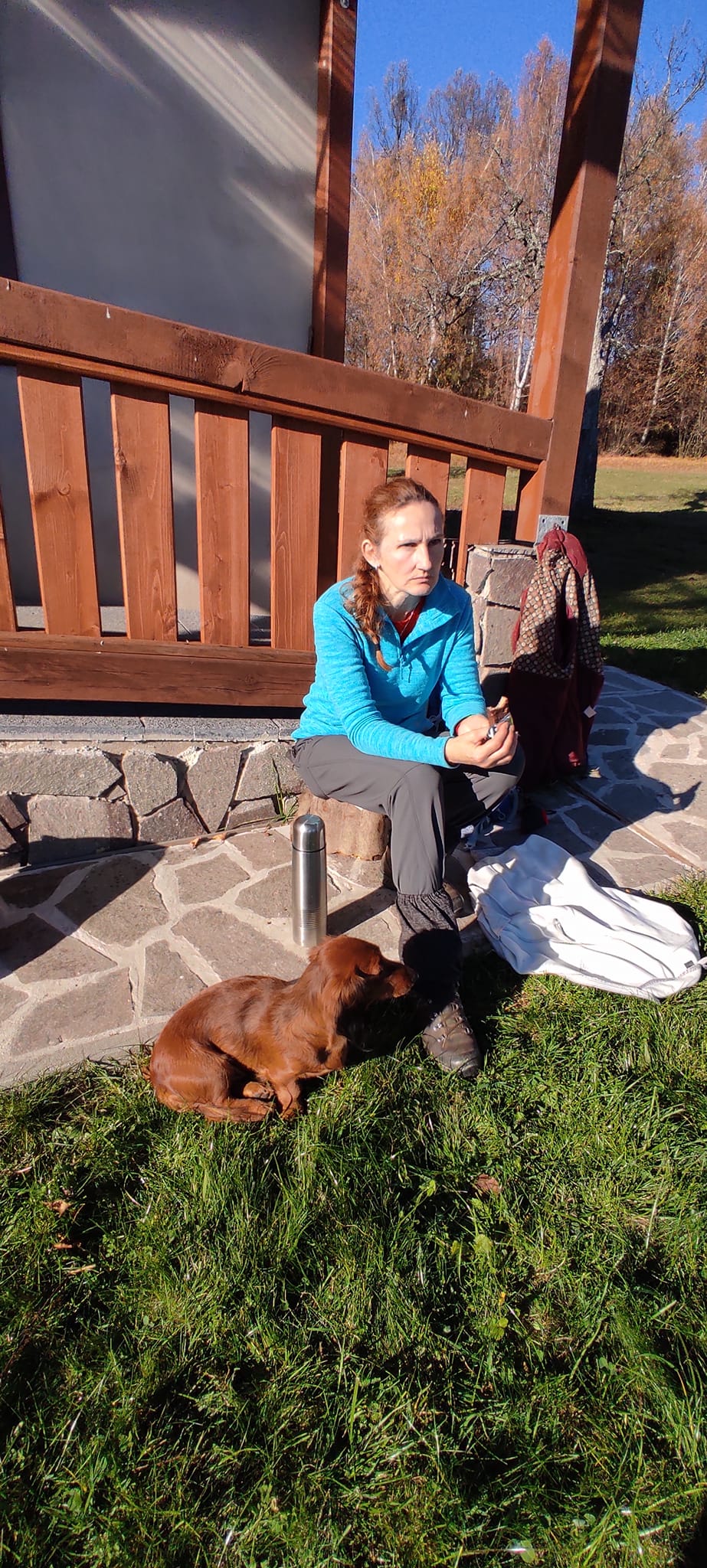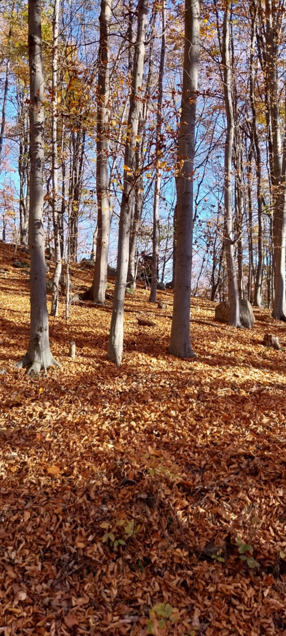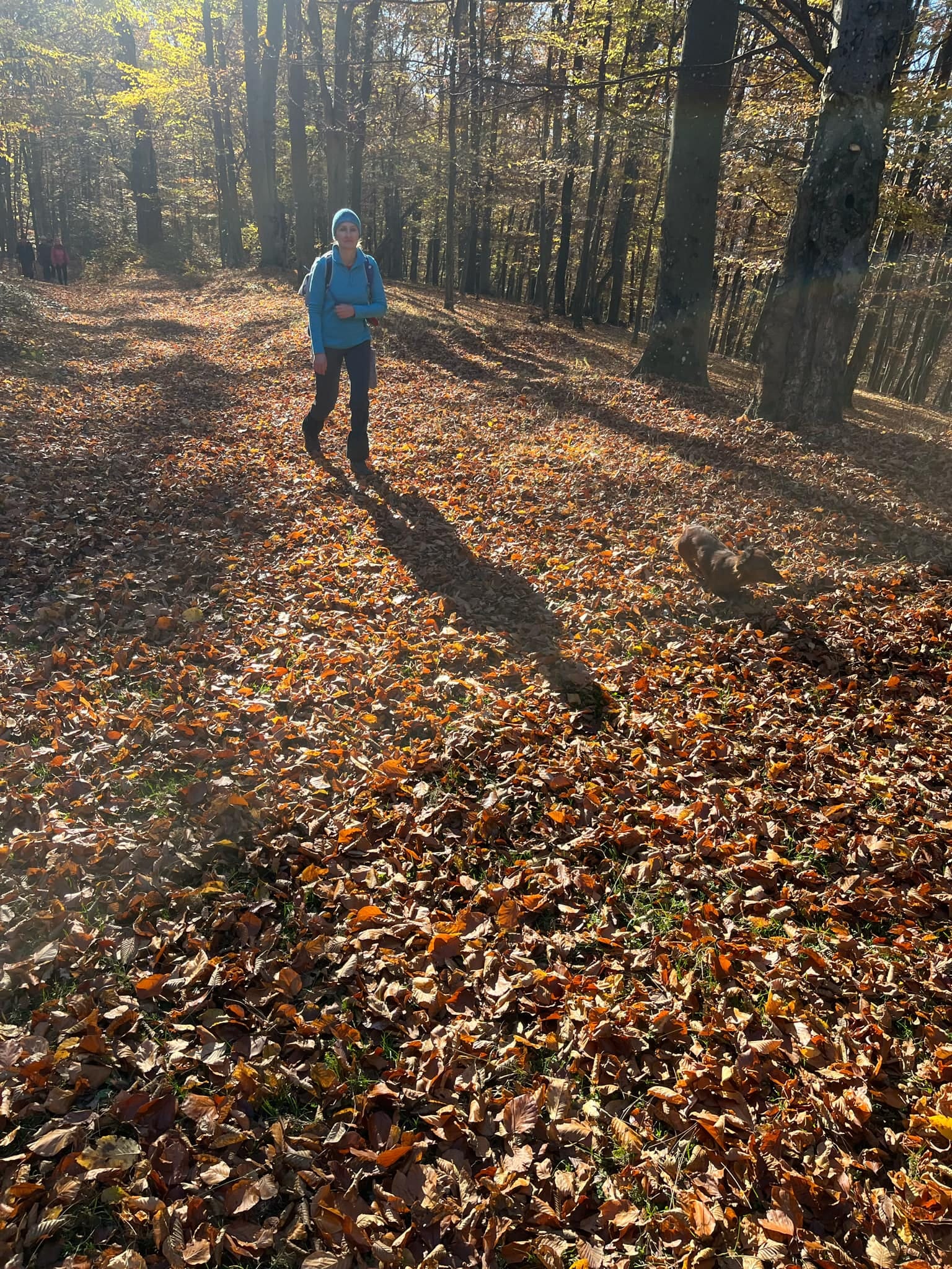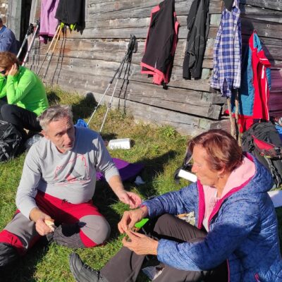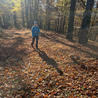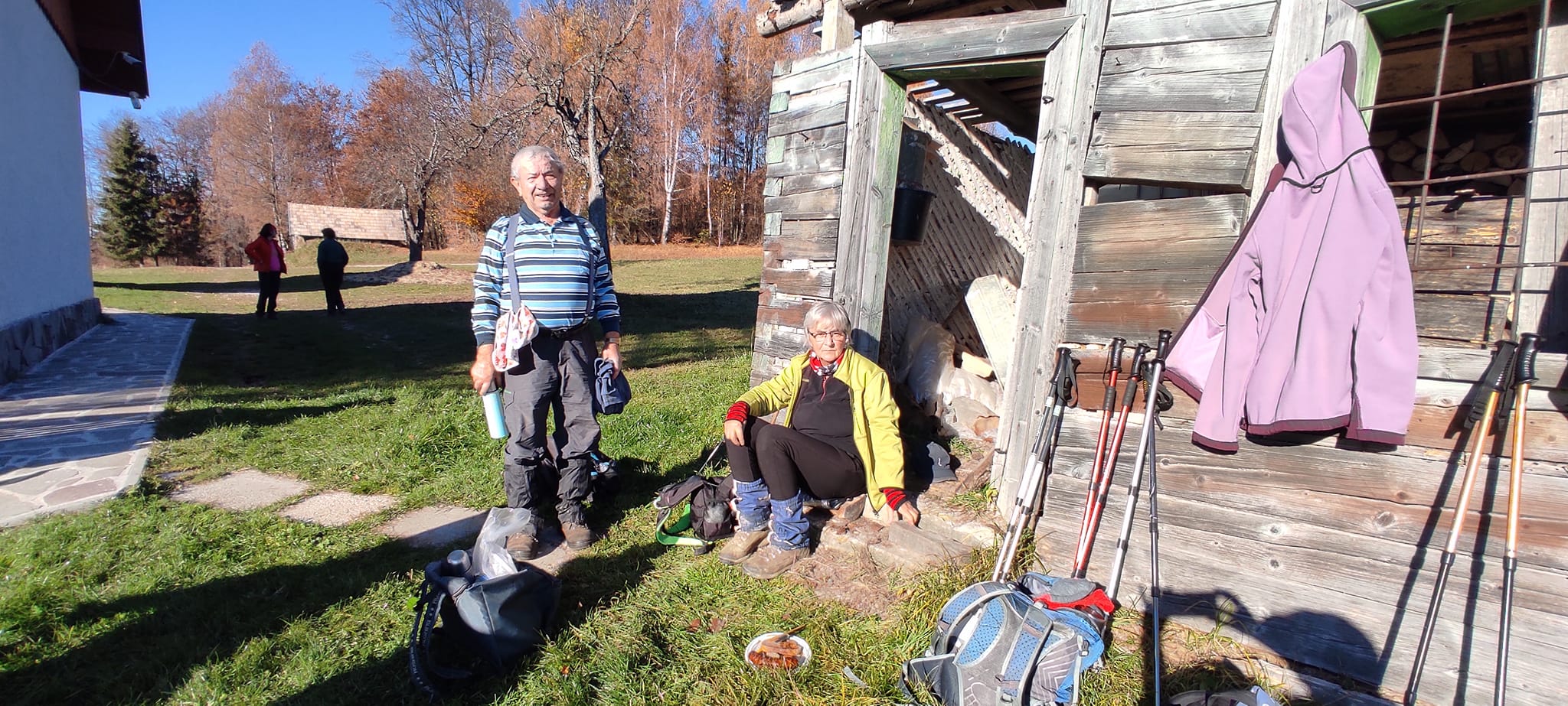 Postupne zo seba zhadzujeme vrstvu za vrstvou. Lístie šuchoce. Nálada je výborná. Humor nechýba, vtipkári sa nezaprú. Pri horárni na Sinci nás čaká pripravené ohnisko na opekanie.