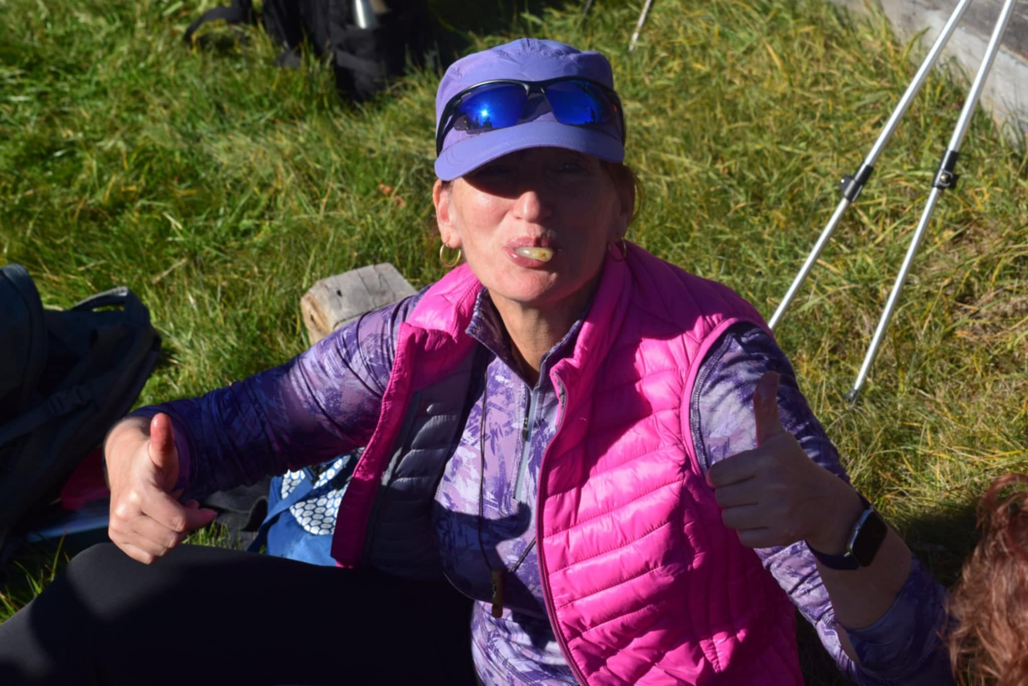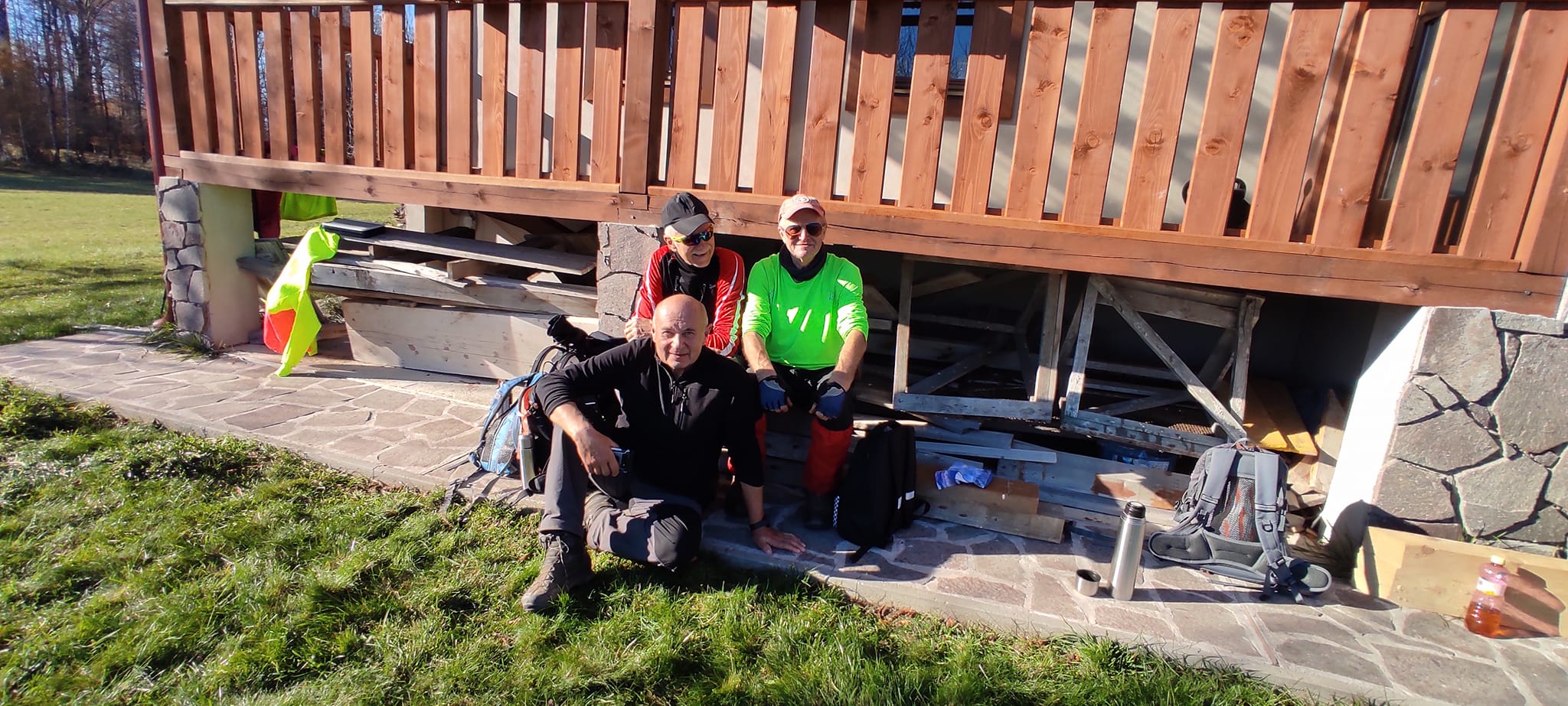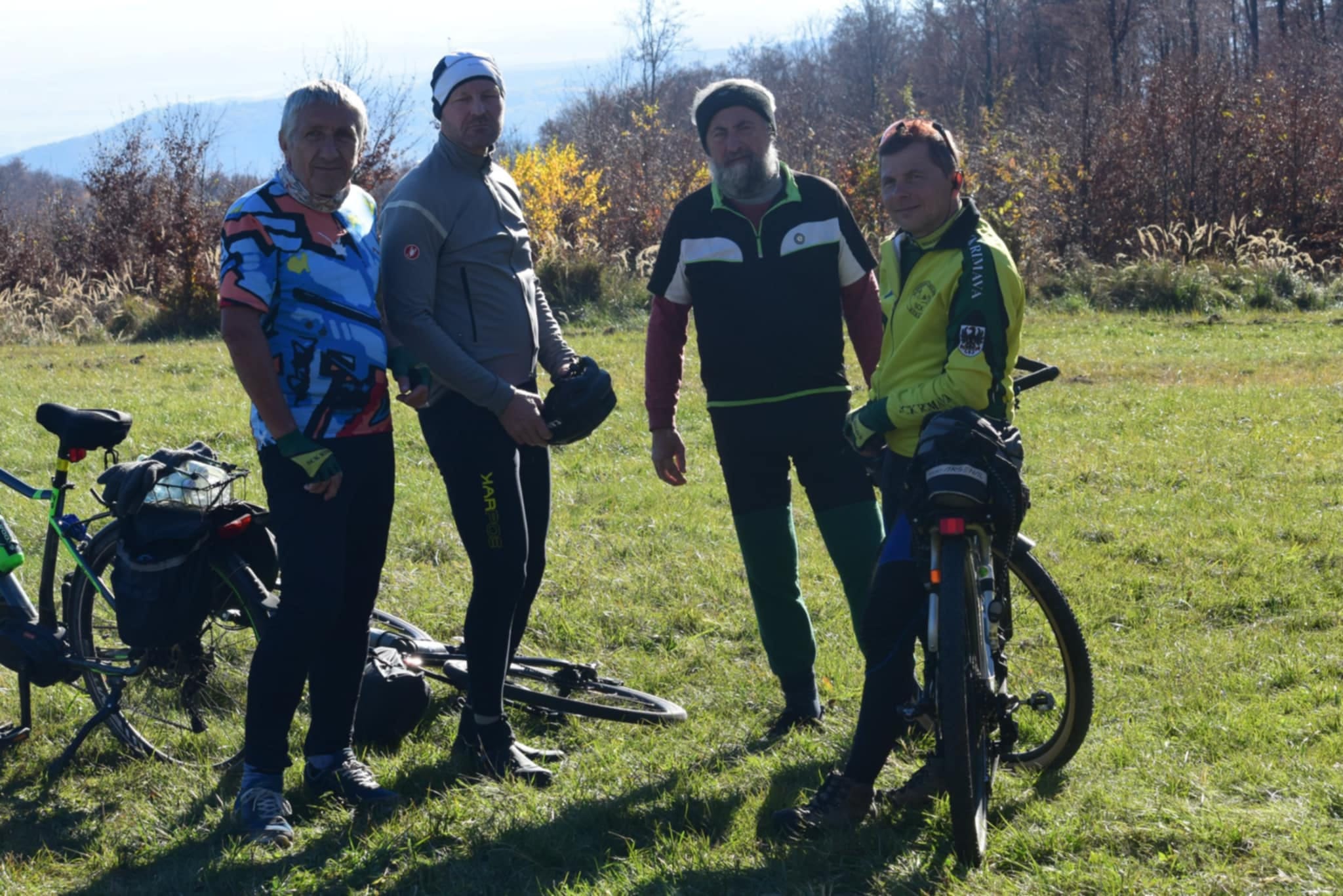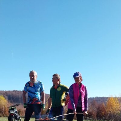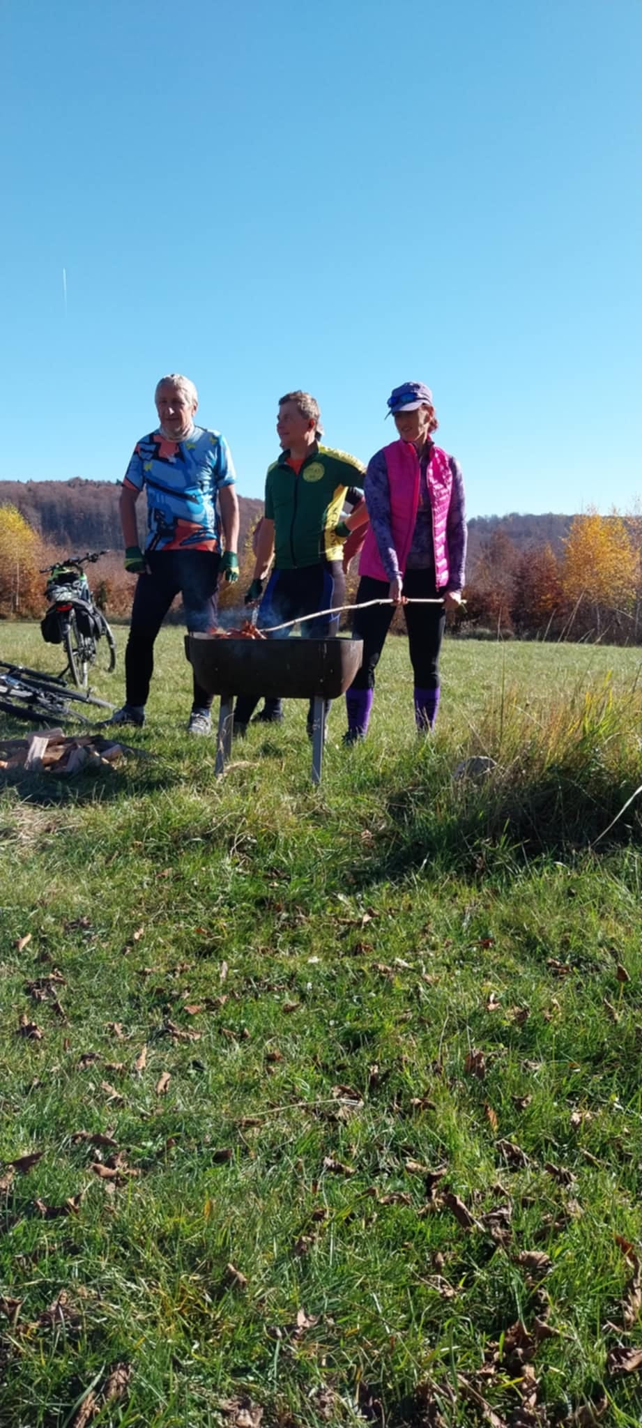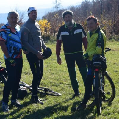 Čochvíľa je obed, obsah batohov treba preriediť. Zrazu ktosi vykríkne: „Aha, cyklisti idú!“ Peťo, Petiké, Karol aj Štefan prišli podporiť účasť pešiakov na bikoch.