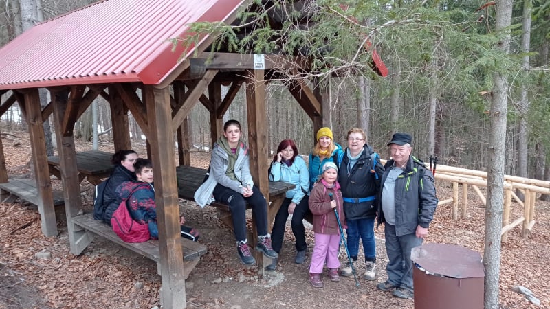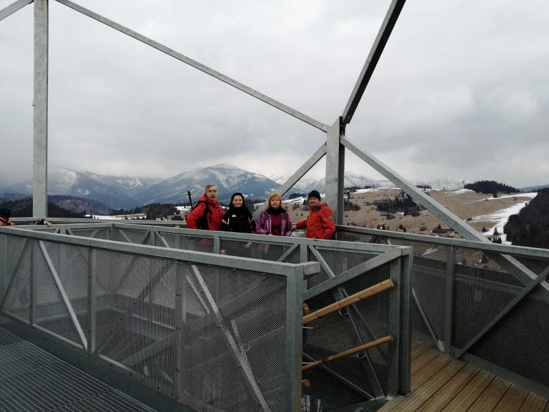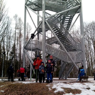 Pri rozhľadni sme sa stretli všetci. Pokochali sme sa výhľadmi na naše horstvá, Nízke Tatry – Ďumbier, Chopok, na opačnej strane