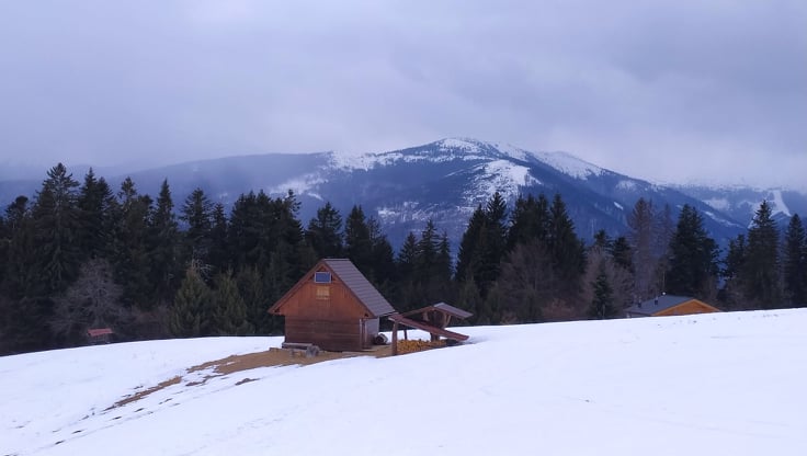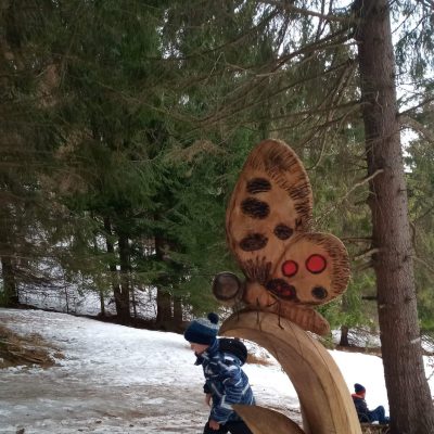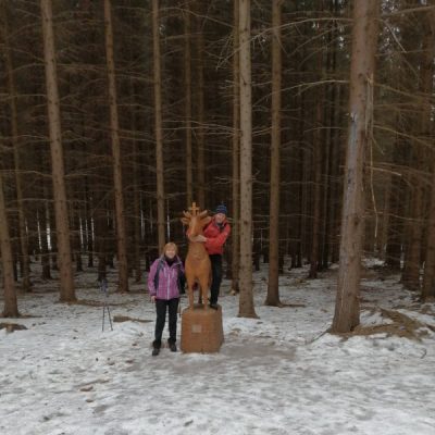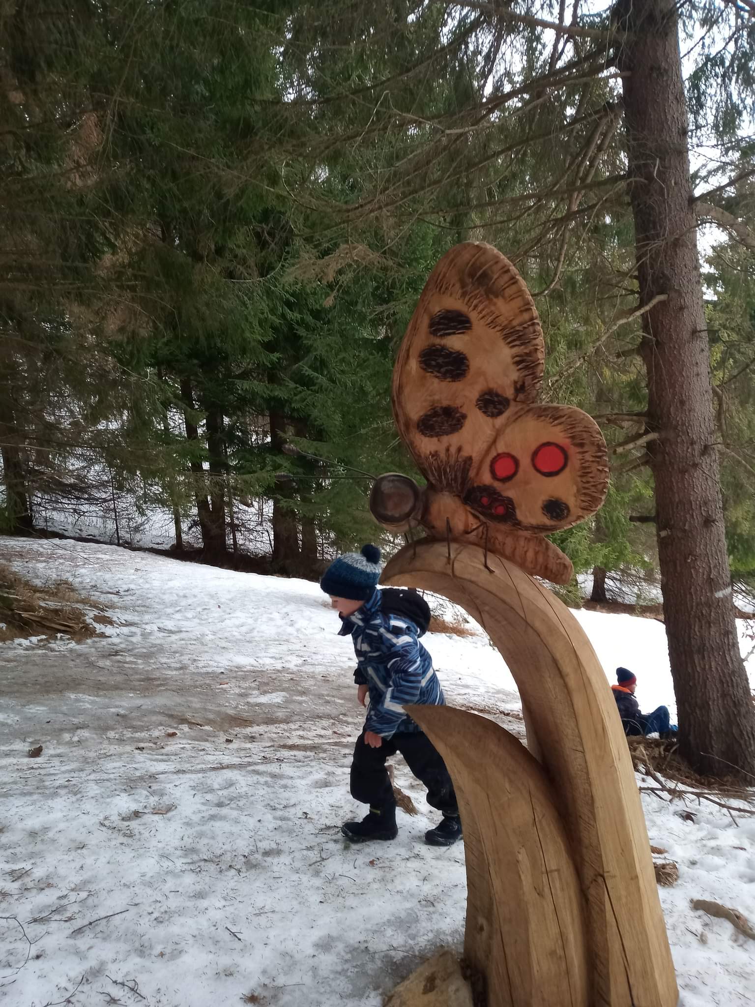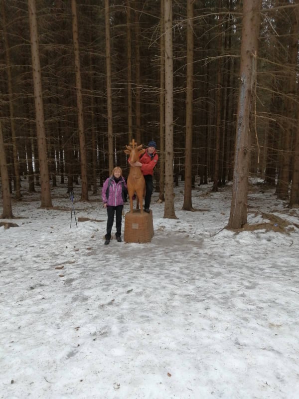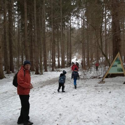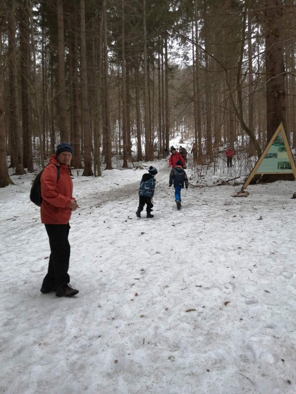 Chvatimech a ako inak, aj náš majestátny Klenovský Vepor v celej svojej kráse. Ako ďalej? Časovo sme to mali tak, tak. Dedečkova chata alebo Brezno. Zvíťazila Dedečkova, ideme, stíhame. Cesta dole kopcom samý ľad. Musíme ju obchádzať po snehu. Len za nami sa ozval nejaký výskot a rachot. To nám naši malí turisti ukázali, ako to treba zliezť. Jeden na chrbáte a druhý na bruchu sa šmýkali dolu cestou až im rebrá hrkotali. Bez ujmy na zdraví sa na konci postavili a bežali ďalej. Nebežali len oni, ale aj pár srniek, ktoré sme vyplašili a tiež si iste pomysleli, „ach tí turisti, nedajú si pokoj a nám pokoj nedoprajú“.