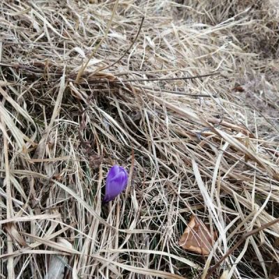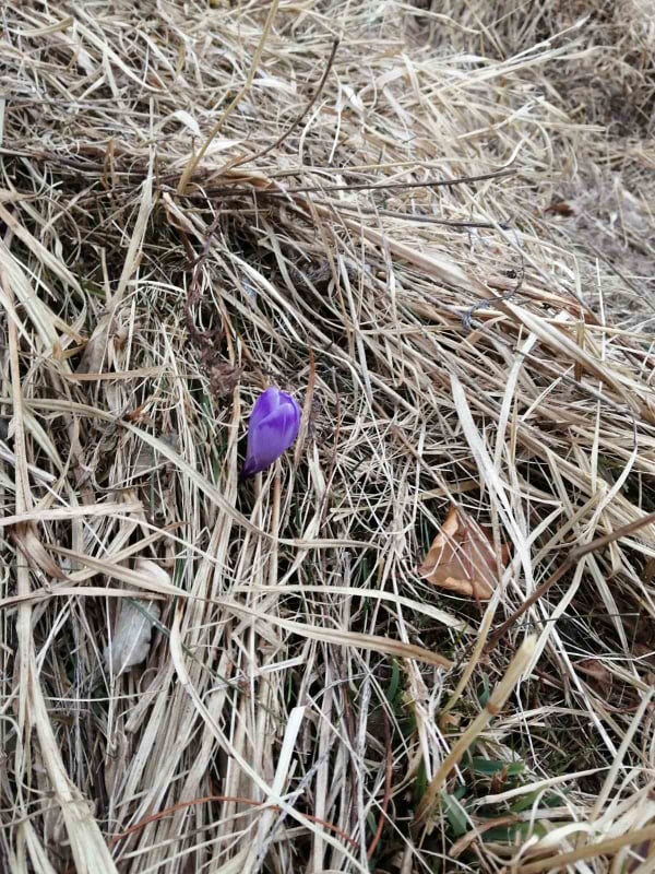 Blížiacu sa jar nám pripomenuli prvé jarné kvietky vykúkajúce zo suchej trávy.