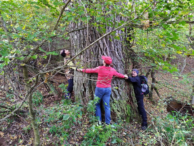 Dnes sme sa vybrali priamo do jej náruče. Túru začíname na kraji Krásnohorskej Dlhej Lúky a svižné stúpanie na planinu čoskoro zahrieva nás všetkých. Prvý oddych je po necelej hodinke, na prvej križovatke turistických chodníkov, na Škridľovom košiari. Nenachádzame tu ani škridle, ani pozostatky bývalého košiara, tak dáme aspoň spoločné foto na pamiatku. Od Škridľového košiara nás sprevádzajú mohutné duby, ktoré toho dosť pamätajú. Až štyria sme sa museli pochytať za ruky, aby sme mohli obopnúť rukami kmeň jedného z nich.