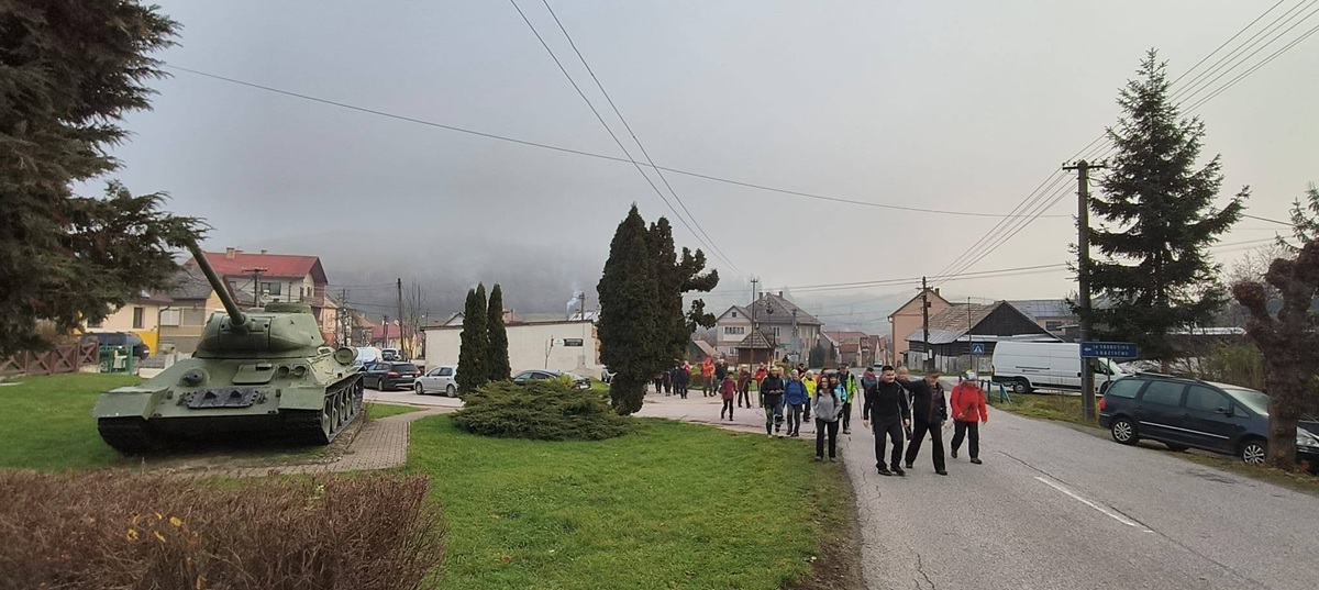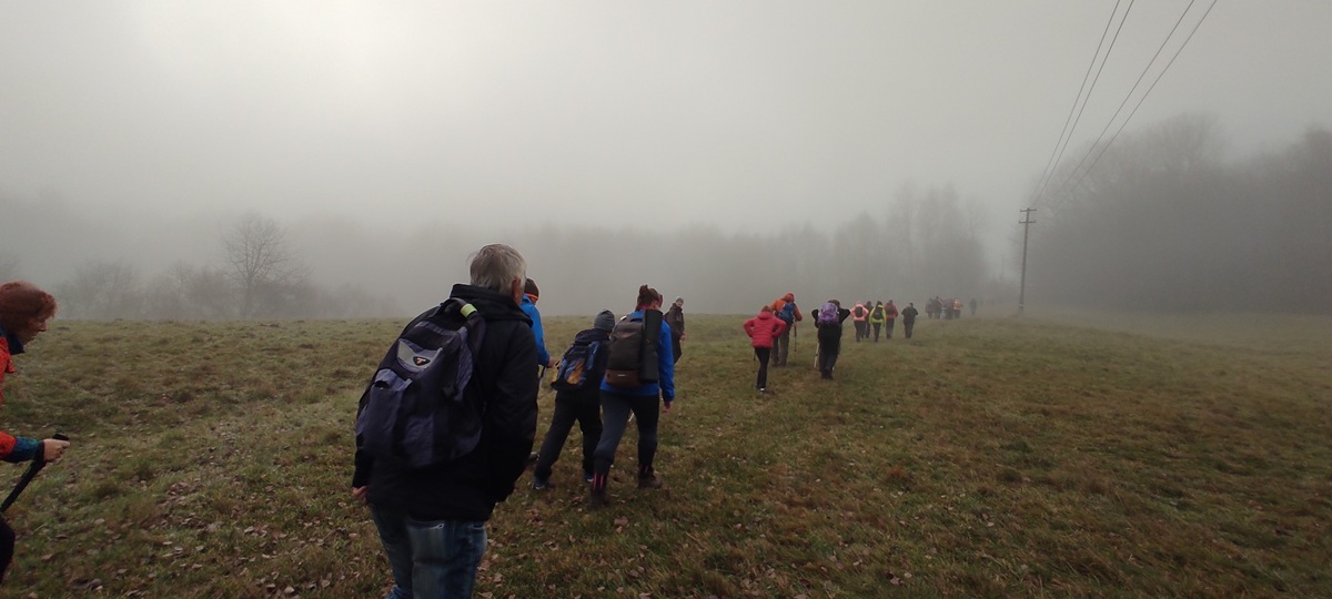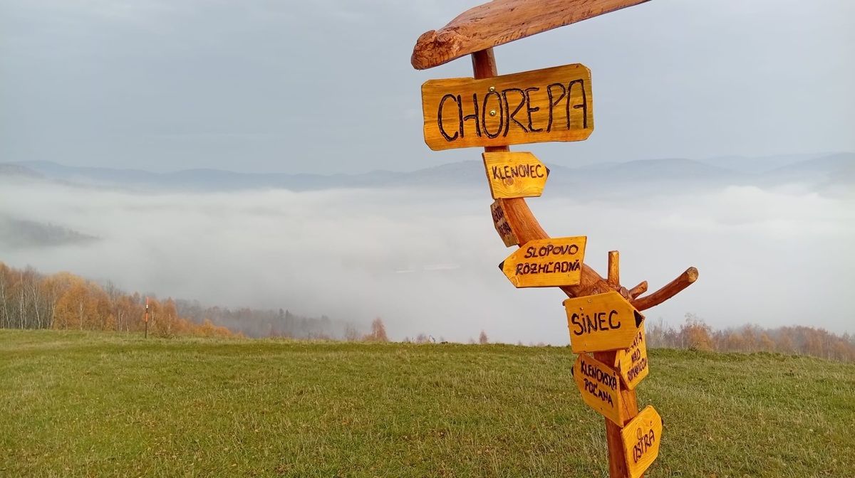 Od “tanku” sa nás cestou smer Kokava vybralo 59 turistov a turistiek z rôznych klubov a miest. Naviac pravdaže z Hnúšte, no boli tu aj skupiny z Tisovca, z Rimavskej Soboty a Kalinova. A ešte niekoľko jednotlivcov z ďalších miest. Za posledným domom na konci Klenovca sme odbočili doľava a čakal nás nie práve najľahší výstup na Chorepu. S tým asi väčšina z nás rátala, ale s čím možno nerátal nik bola hmla, ktorá nám kazila pohľad do výšok. Akoby to bola obrátená inverzia – v dolinách pekne, na horách hmla. Našťastie obavy z celodenného zahmleného pochodu na Sinec sa nenaplnili.