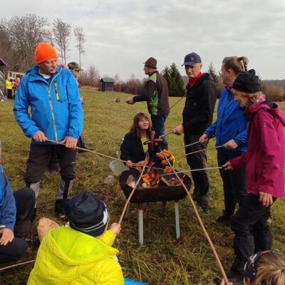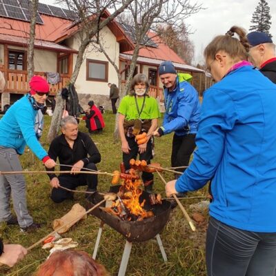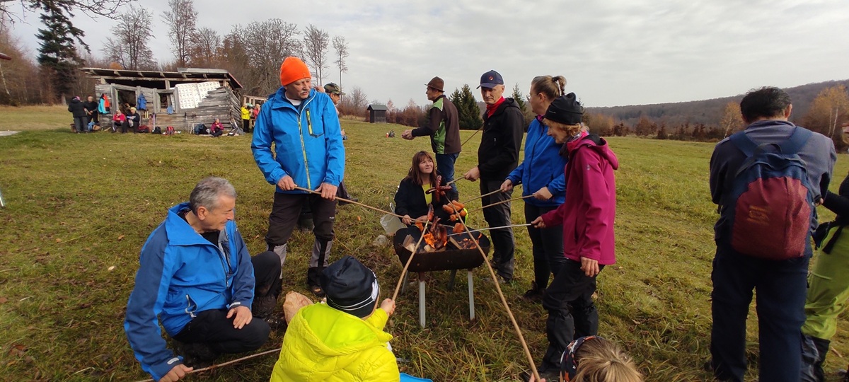 Smerovník nás informuje, že sme v nadmorskej výške 830 metrov a teda od samotného najvyššieho bodu nás delí 87 metrov. Ale viac ako tieto informácie nás už po niekoľkohodinovom putovaní zaujímalo, či ohník na tradičnú opekačku na Sinci už horí. A veru horel, vďaka peknému počasiu a prvým najrýchlejším turistom, ktorí ho založili. Väčšina z nás sa pri ňom vystriedala a či už opečenou slaninkou, klobáskou alebo obvyklým obloženým chlebíkom sme urobili zadosť aj našim hladným žalúdkom.