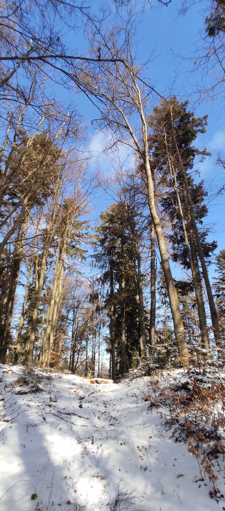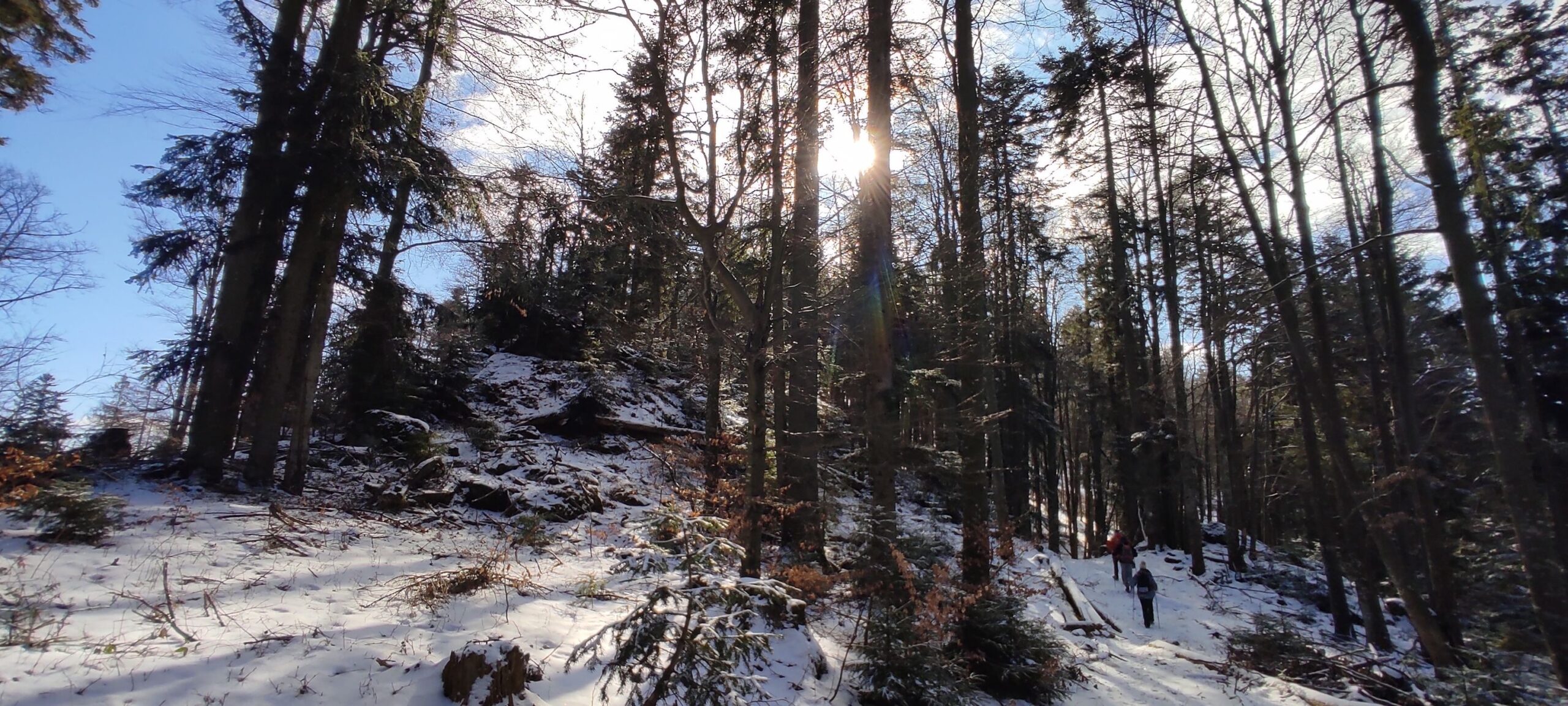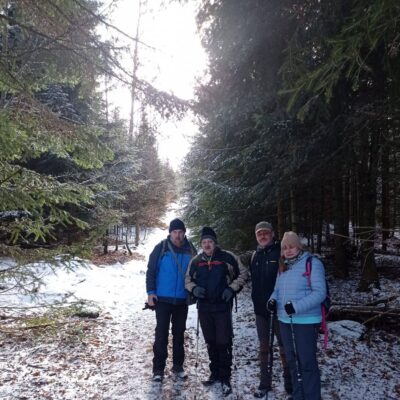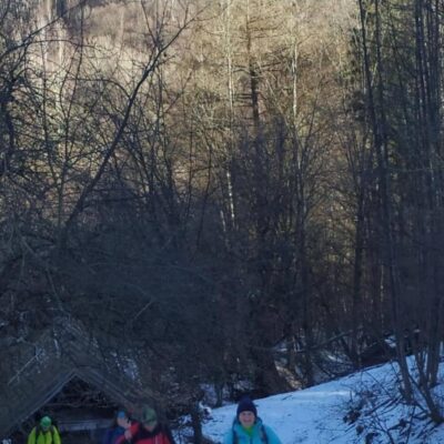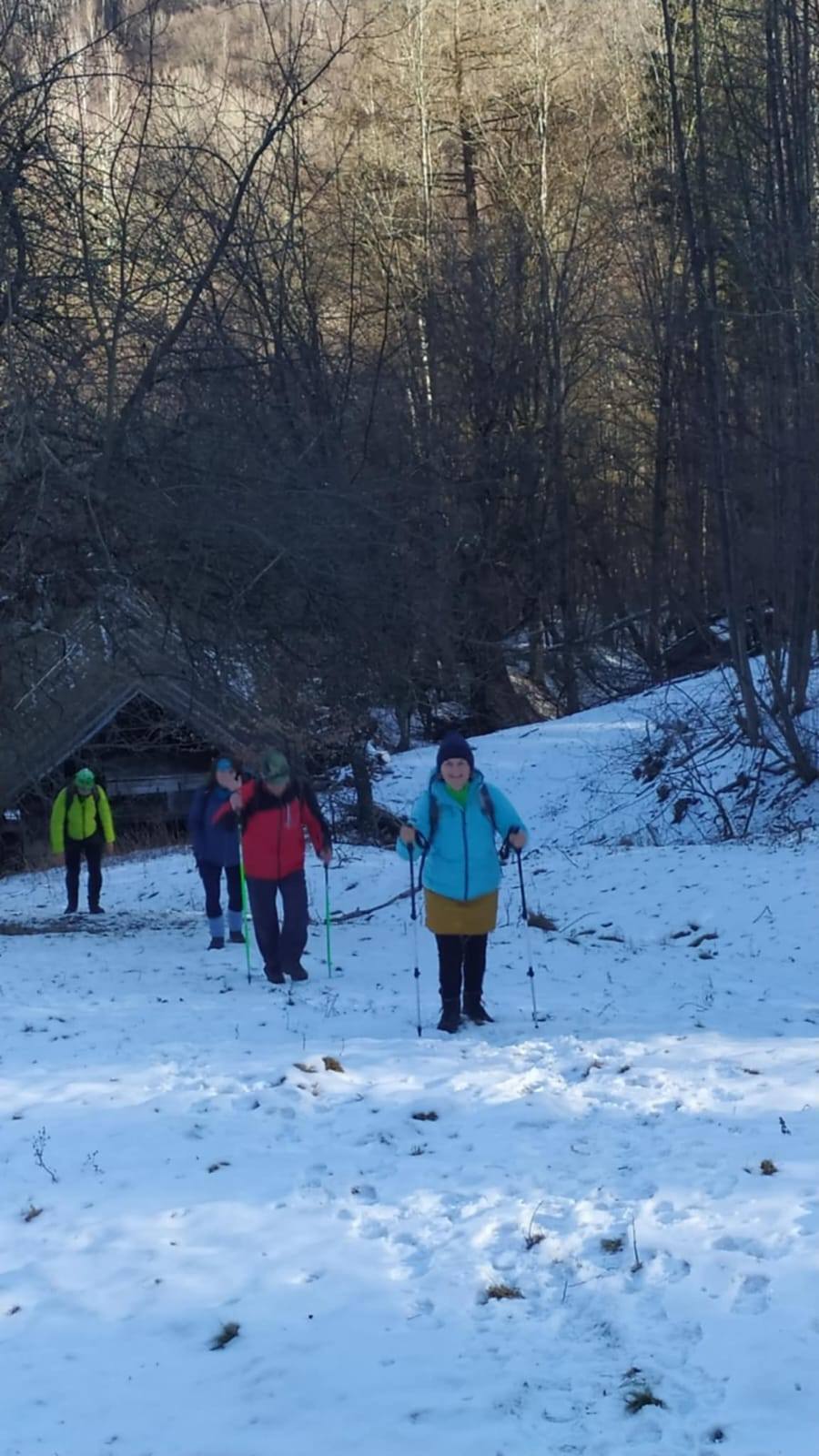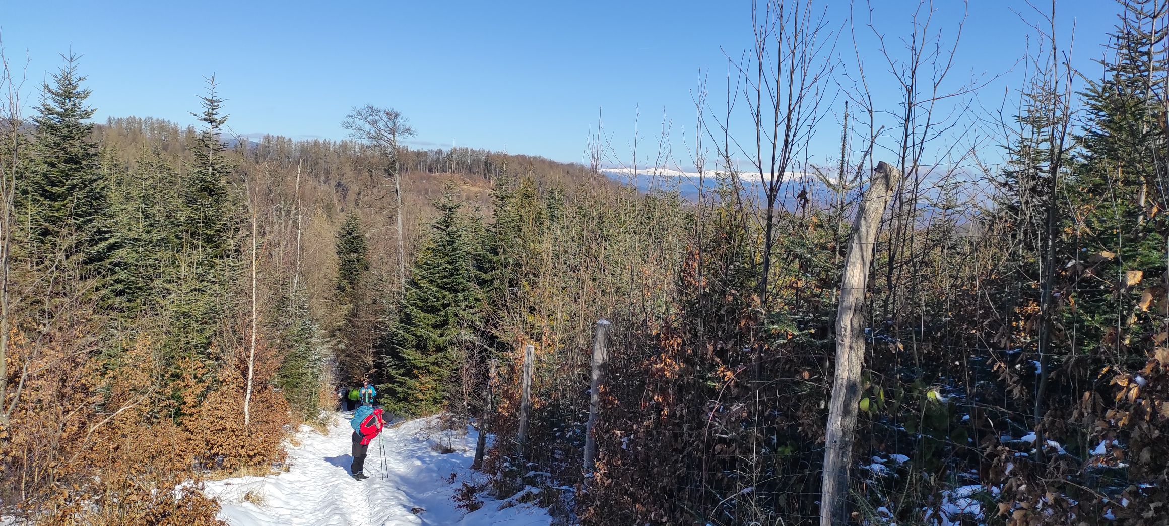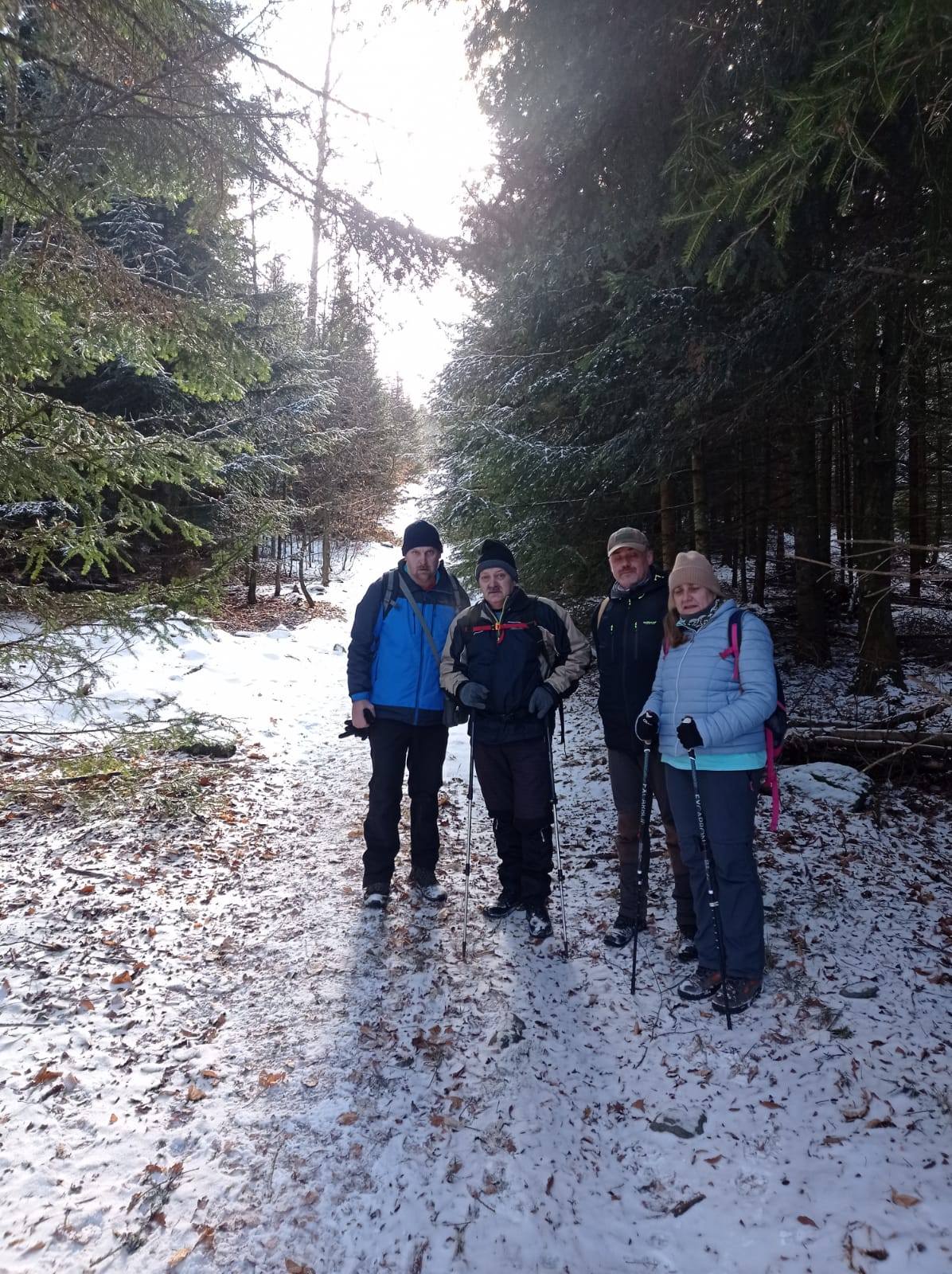 My sme si  mohli vyskúšať terén, ktorým kedysi chodievali naši predkovia za prácou do tisovskej doliny. Snehu je ako na celom Slovensku – v lese nič a na chodníku akurát na šmýkanie.