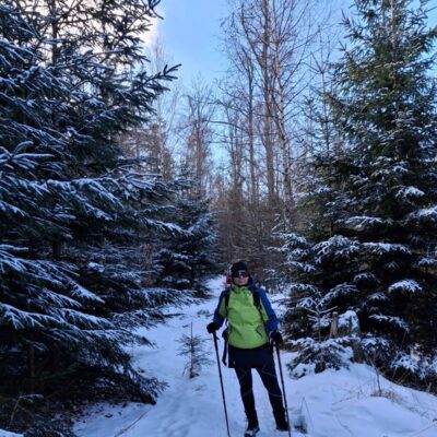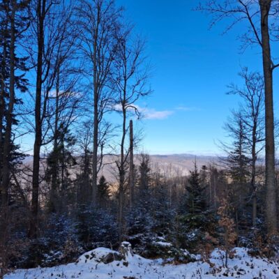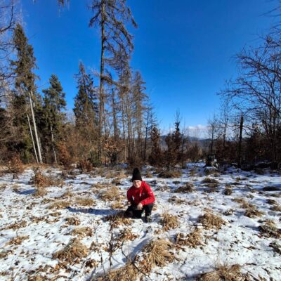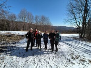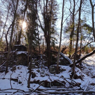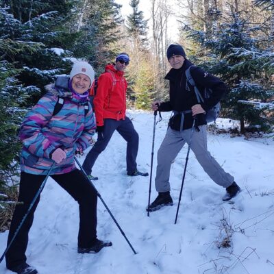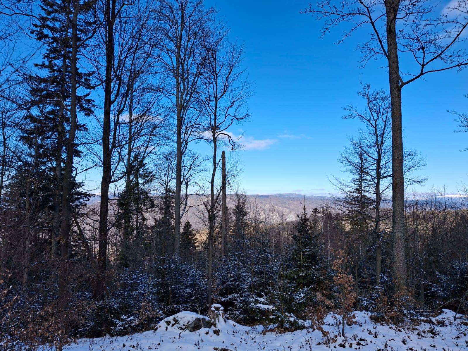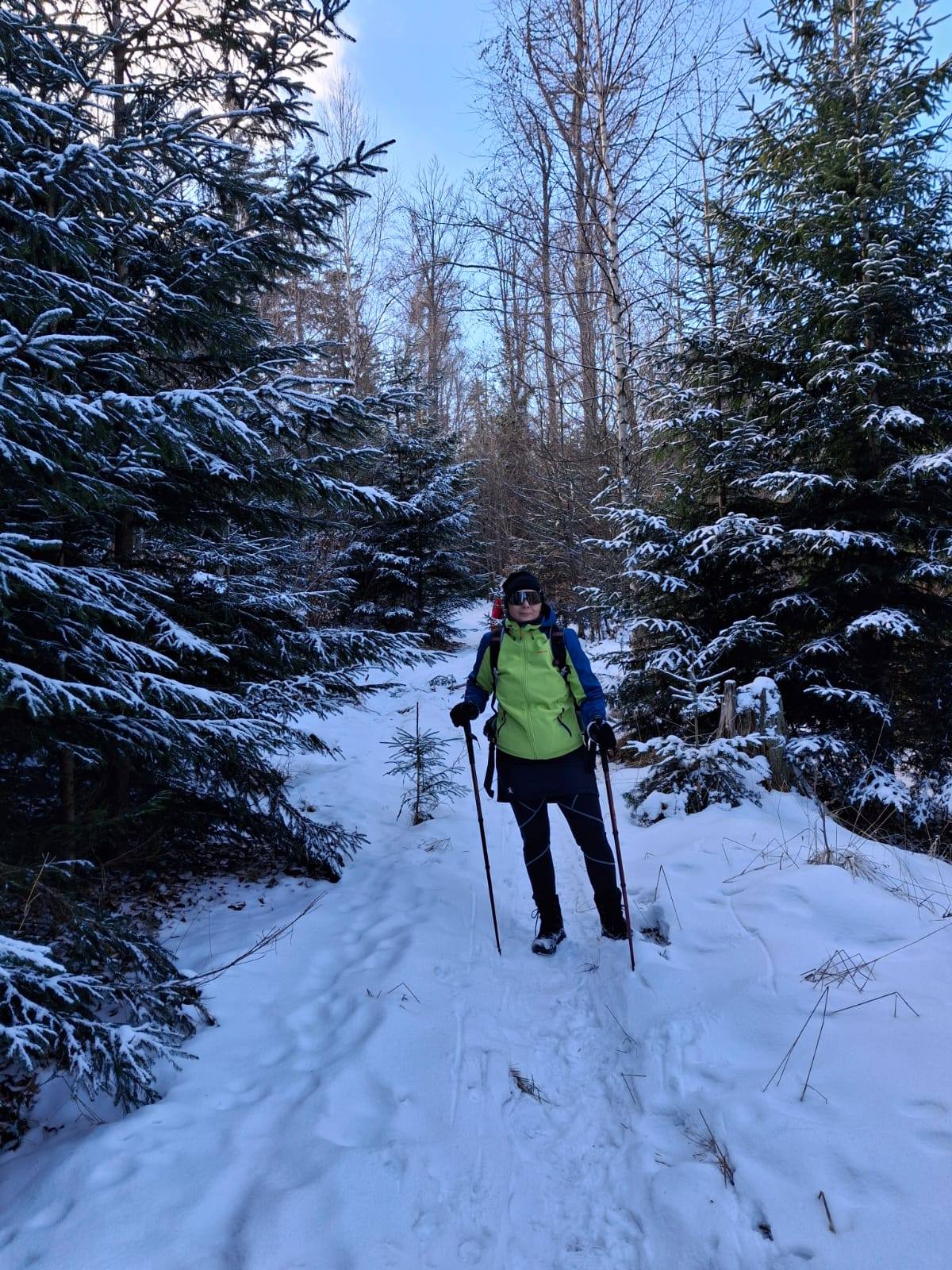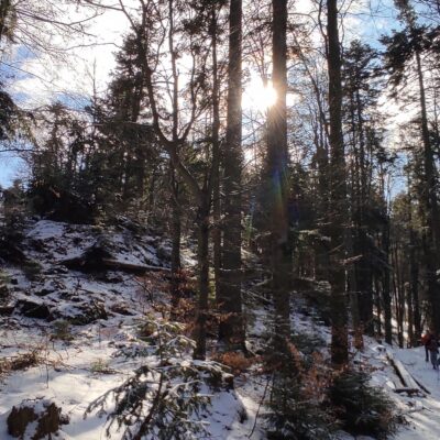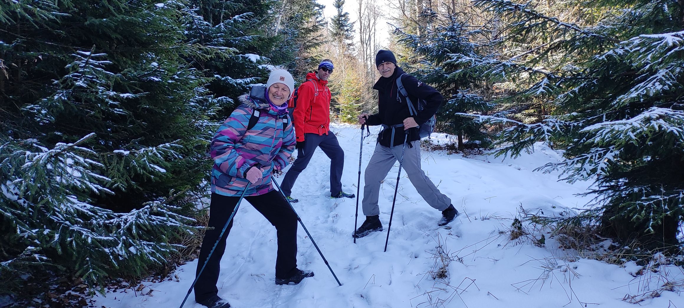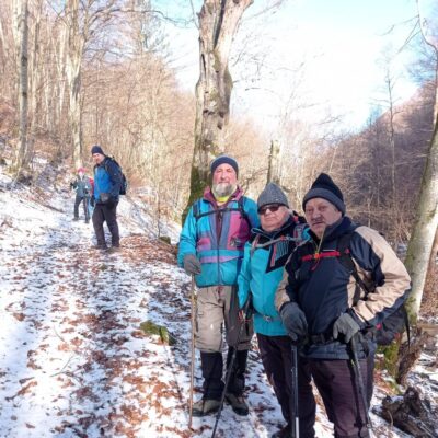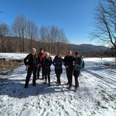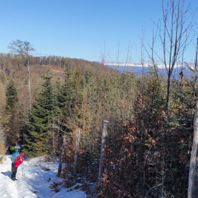 My sme si  mohli vyskúšať terén, ktorým kedysi chodievali naši predkovia za prácou do tisovskej doliny. Snehu je ako na celom Slovensku – v lese nič a na chodníku akurát na šmýkanie.
